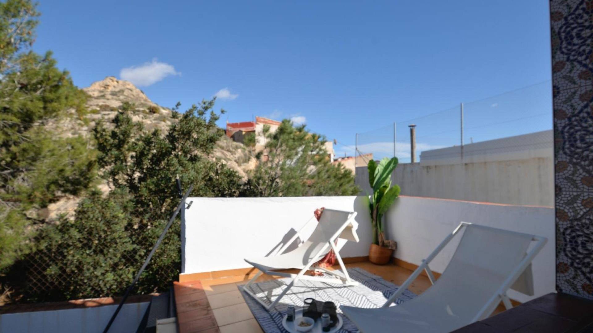 Nos complace presentar esta espaciosa casa adosada en el pueblo de Sax con terraza en la azotea, energía solar y una plaza de garaje excepcional.