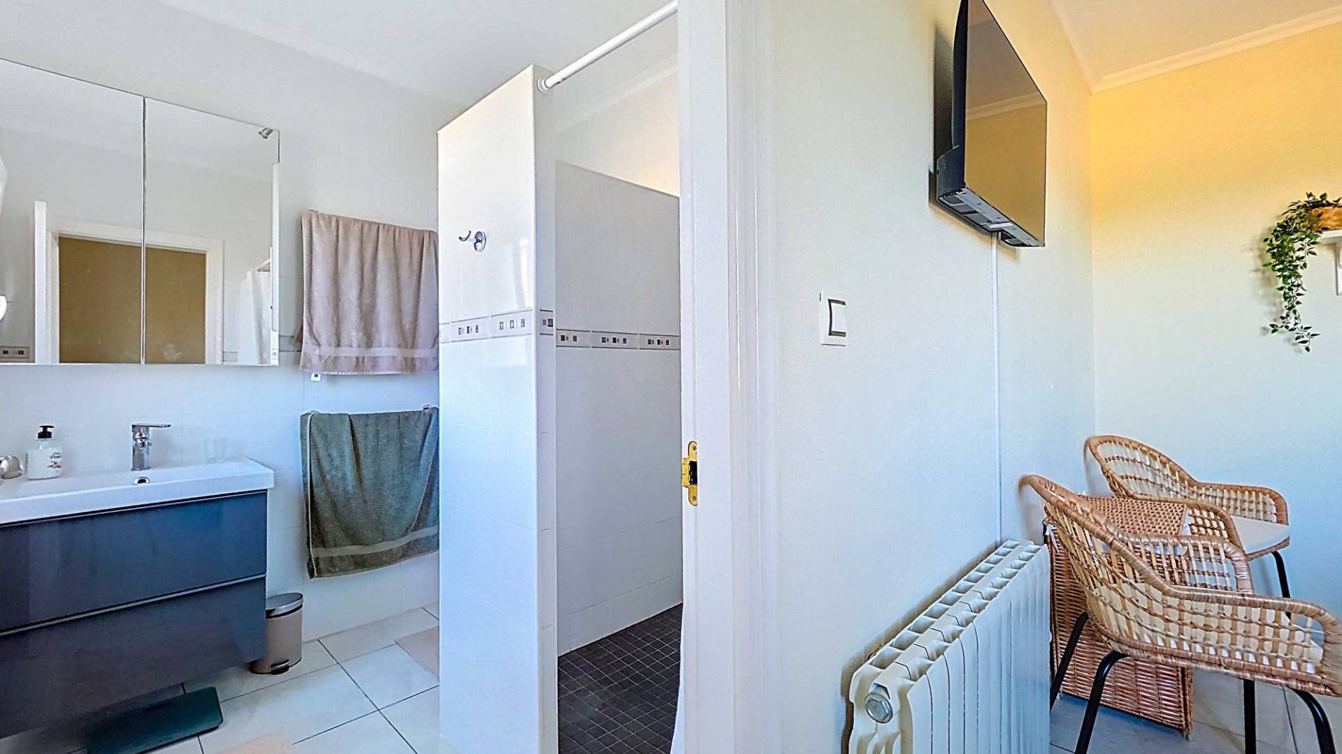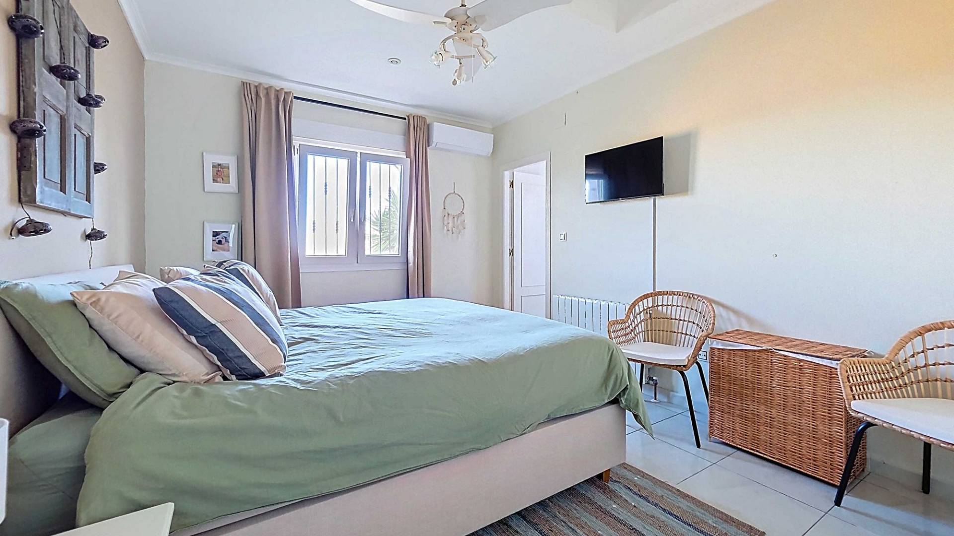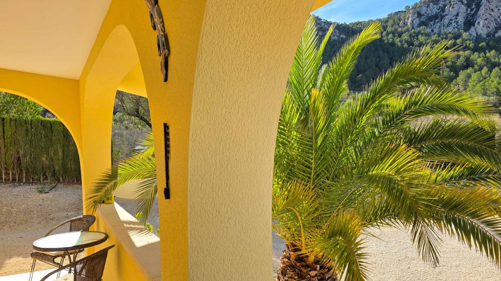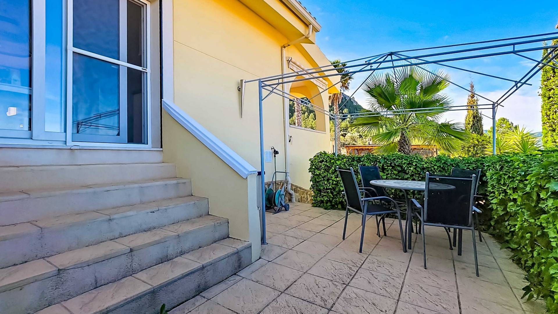 Villa La Zarza Una auténtica villa lista para entrar a vivir, con posiblemente la mejor vista al valle de La Zarza. Disfruta de la puesta de sol desde la terraza o junto a la piscina con una copa de vino local, rodeado de montañas y con total privacidad. Esta vivienda está en venta en exclusiva, lo que significa que todos los documentos han sido revisados previamente y que todo está en orden o se puede regularizar. Terreno Tras el portón eléctrico se encuentra la amplia parcela totalmente vallada. El jardín de bajo mantenimiento está bien cuidado e incluye varios olivos y almendros con riego automático. En el jardín hay un trastero independiente de obra (2,5 x 5 metros). La zona exterior cuenta con una piscina de 8 x 4 metros y una pérgola instalada recientemente que ofrece una zona de sombra ideal en los días calurosos. La villa La villa está impecable y lista para vivir de inmediato. Los muebles pueden adquirirse aparte, lo que permite instalarse sin demora o utilizarla como vivienda vacacional. Dispone de un salón amplio y luminoso que conecta con el comedor y una cocina bien equipada con electrodomésticos de primeras marcas. Hay tres dormitorios, siendo el principal con baño en suite. Además hay un segundo baño independiente. El salón tiene acceso a una amplia terraza cubierta con vistas panorámicas a la piscina, mientras que el comedor junto a la cocina da paso a otra terraza con vistas abiertas al valle. Instalaciones La villa cuenta con una estufa de pellets en el salón, calefacción central de gas con radiadores en todas las estancias y suelo radiante eléctrico. En el salón y el dormitorio principal se ha instalado recientemente aire acondicionado (frío/calor) con control por aplicación. Dispone de fosa séptica, conexión eléctrica y depósito de agua. Un panel solar proporciona agua caliente. Las ventanas de PVC son oscilobatientes con persianas y mosquiteras. Hay espacio de almacenamiento adicional bajo parte de la casa y sobre el dormitorio principal (acceso por trampilla). Ubicación La villa está rodeada de la hermosa naturaleza verde del valle de La Zarza, a solo 20 minutos en coche de Pinoso y Abanilla. Es una zona rural con pinares, viñedos y campos de almendros y olivos. La villa está en un entorno tranquilo, pero con otras villas en los alrededores. En Pinoso y Abanilla encontrarás todos los servicios diarios como supermercados, colegios, centro médico, instalaciones deportivas y numerosos restaurantes. La zona ofrece muchas rutas para caminar, hacer senderismo y ciclismo. El clima es plenamente mediterráneo. Tanto los aeropuertos de Alicante como de Murcia y las playas están a menos de una hora. Ponte en contacto para una visita y siente tú mismo las vistas espectaculares.