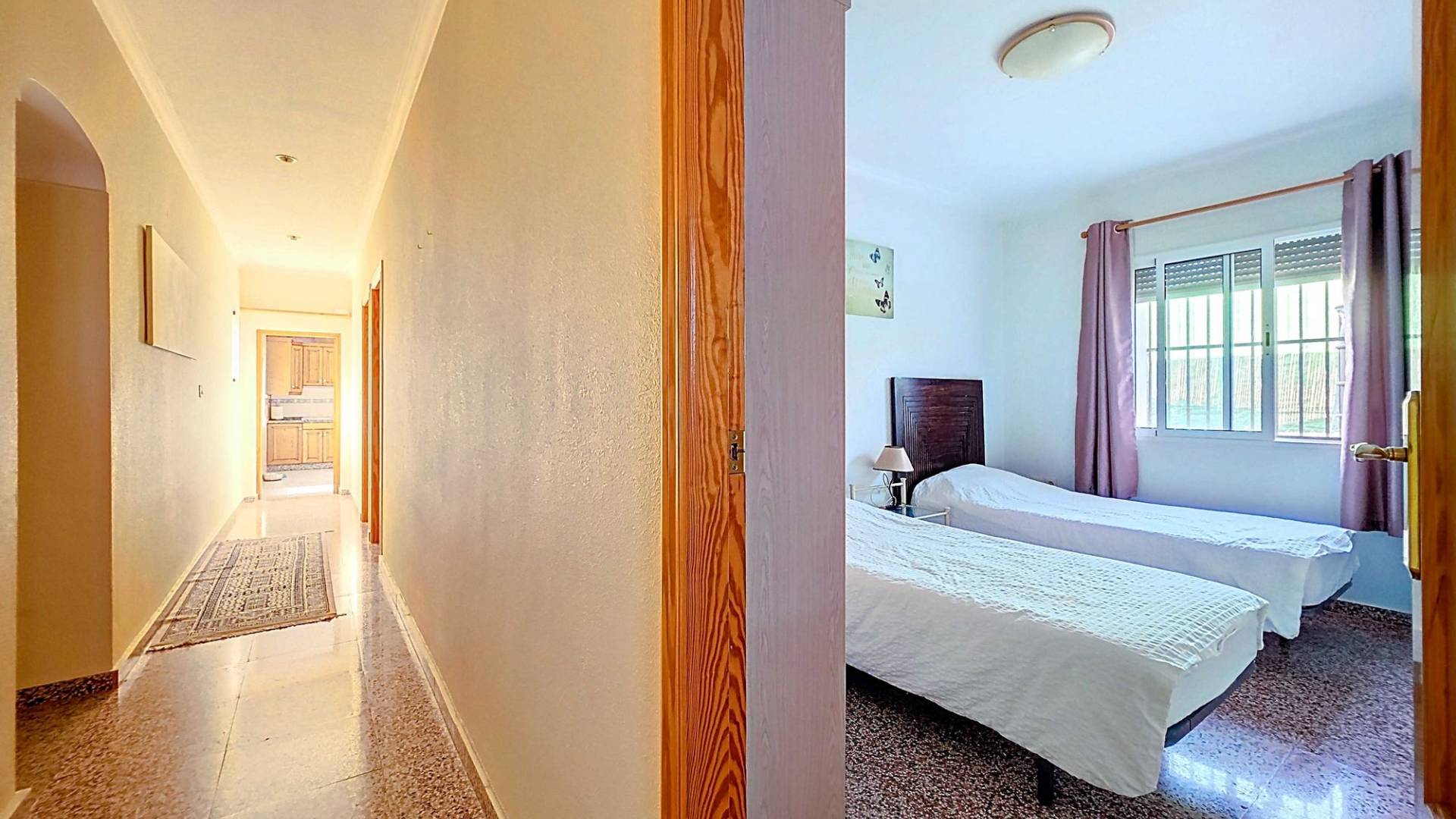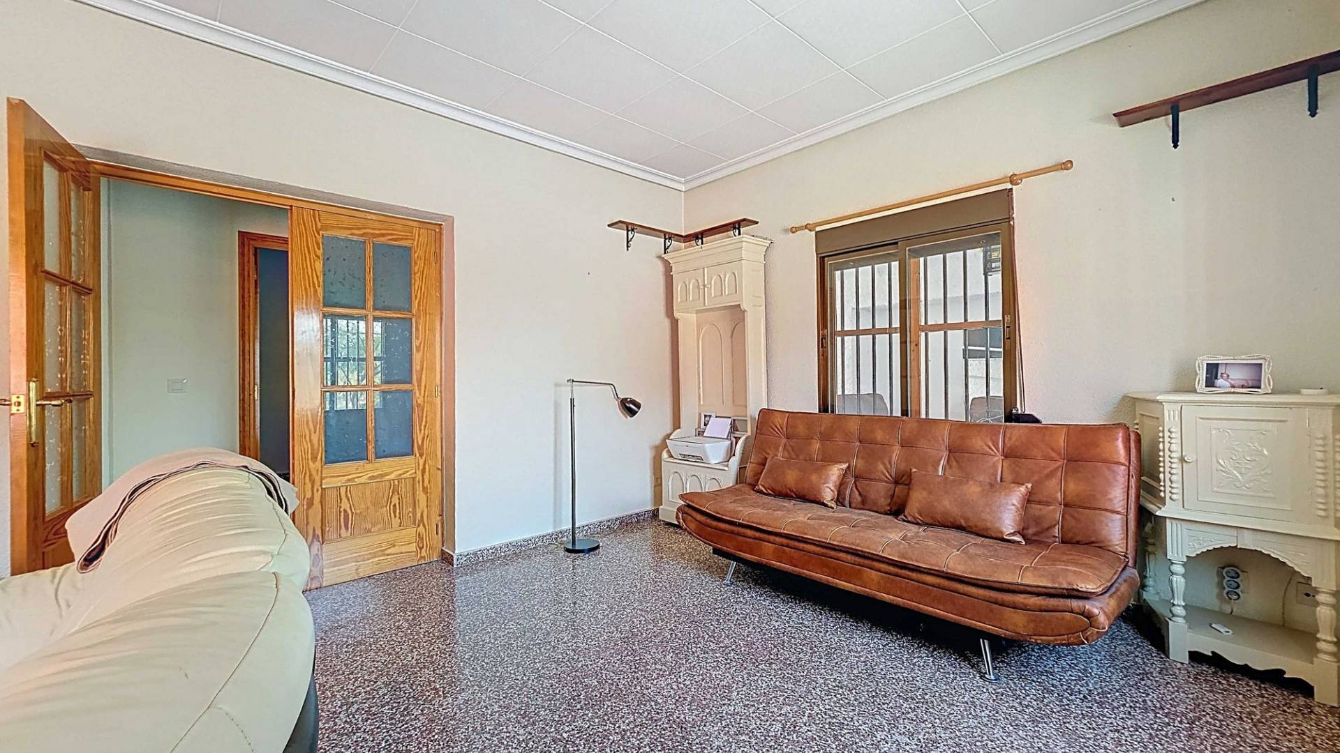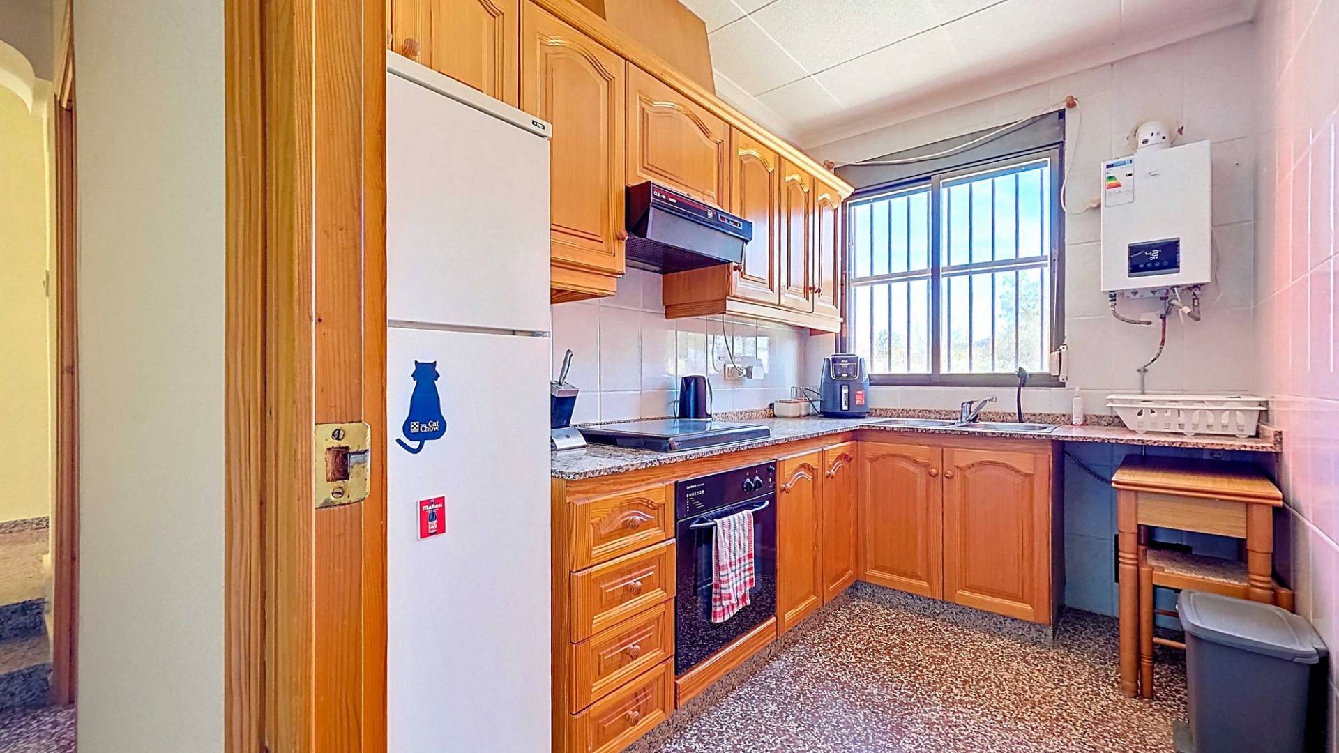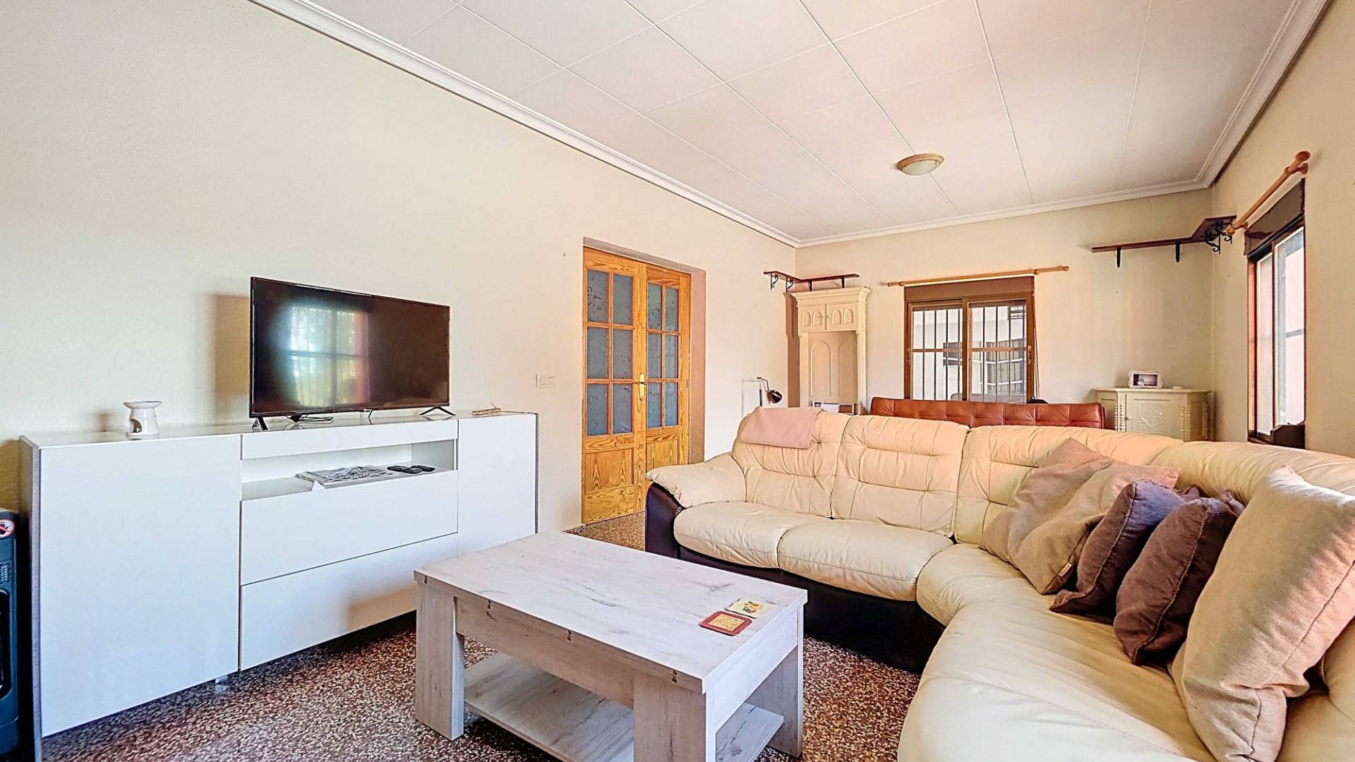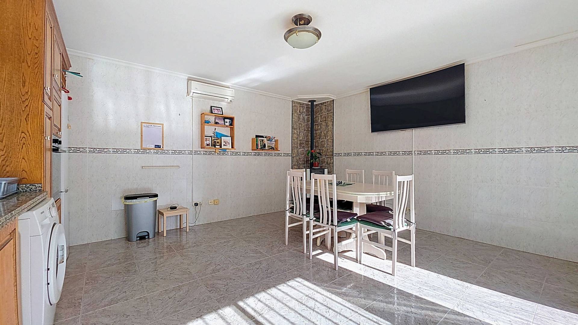 Amplia casa de campo lista para entrar a vivir, con garaje y unas vistas abiertas impresionantes tanto desde la zona del jardín y la piscina como desde la gran azotea. Esta vivienda está en venta en exclusiva, lo que significa que todos los documentos han sido revisados previamente y que todo está en orden o se puede regularizar. La parcela La parcela está completamente vallada y se accede por un portón eléctrico. Hay un garaje amplio y la parte entre el garaje y la vivienda cuenta con una zona cubierta para aparcar dos coches a la sombra. El garaje también podría destinarse a otro uso, como una oficina en casa. En la parte trasera de la vivienda se encuentran dos trasteros y un baño con ducha. La piscina está situada en una zona elevada del jardín y hay varios rincones agradables para sentarse tanto al sol como a la sombra y disfrutar del estilo de vida al aire libre. La vivienda La casa, toda en una planta, tiene dos accesos y mucho espacio para una familia grande o, con algunas adaptaciones, para dos viviendas independientes. Hay una cocina-comedor muy amplia con estufa de pellets conectada a la terraza. Desde la cocina, un pasillo da acceso a cuatro dormitorios y a un trastero. Otro pasillo lleva al baño, un dormitorio adicional y una segunda cocina. En esta parte también se encuentra un salón muy amplio con estufa de leña. Por último, hay acceso a una gran estancia extra que ofrece espacio tanto para una zona de estar como de comedor. Desde aquí se accede por un lado a la terraza principal y por el otro a la terraza con piscina. Mediante una escalera exterior se llega a la azotea, que ofrece unas vistas fantásticas a los alrededores. Instalaciones Además de las estufas, hay aire acondicionado (frío/calor). La vivienda está conectada a la red de agua y electricidad. Las ventanas tienen mosquiteras enrollables. Ubicación La vivienda está en una zona tranquila cerca de los pueblos de Algueña y Pinoso. Un entorno rural donde aún se respira la auténtica vida española. Pinoso tiene mercado dos veces por semana y Algueña una vez por semana. Todas las comodidades diarias están cerca: supermercados, colegios, centro médico, instalaciones deportivas y una buena oferta de restaurantes. Hay muchas rutas para caminar, hacer senderismo o ir en bici, rodeadas de almendros, olivos y viñedos — todo en un clima mediterráneo agradable. Tanto los aeropuertos de Alicante y Murcia como las playas están a menos de una hora. Contáctanos hoy mismo para organizar una visita.
