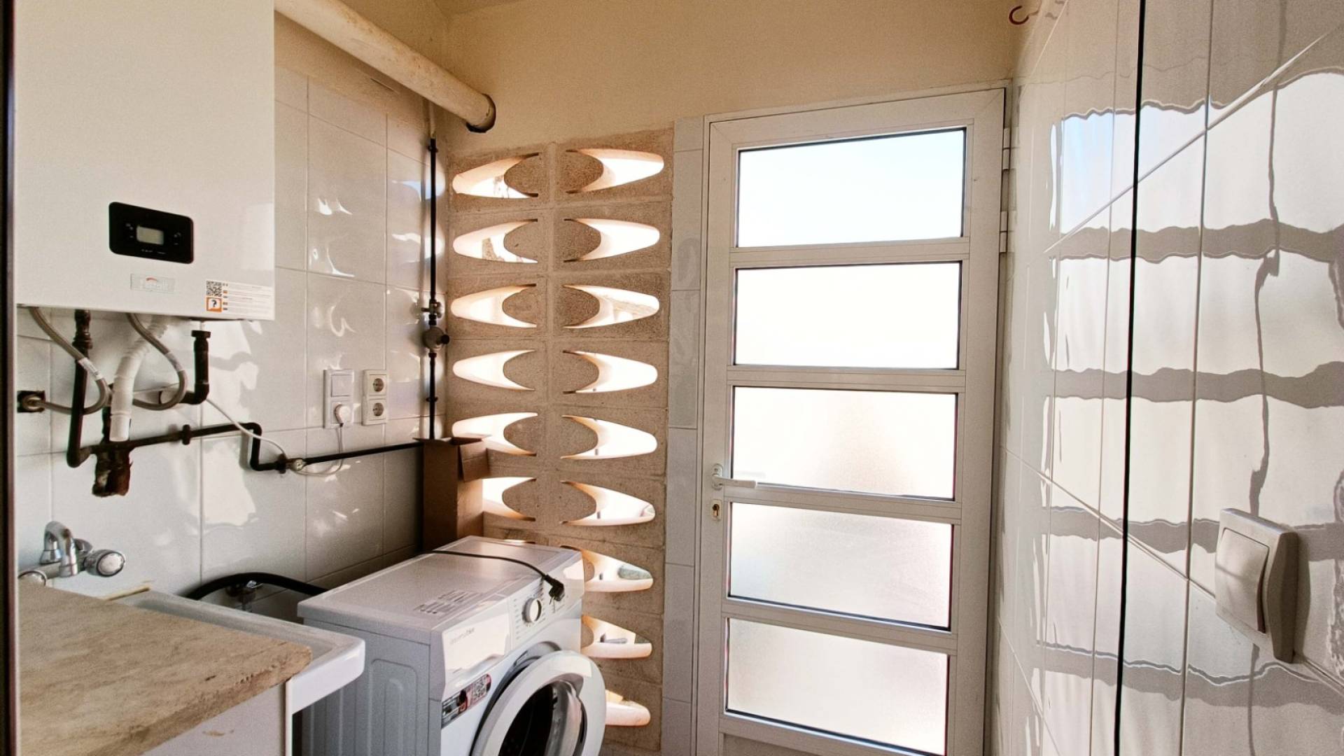 En la planta baja, encontramos un amplio salón-comedor de distribución abierta que conecta con la cocina totalmente equipada y un práctico lavadero. En esta misma planta hay un dormitorio, un aseo y aire acondicionado para tu confort. Además, la vivienda cuenta con calefacción central mediante caldera Ferroli instalada en 2024, ideal para disfrutar del hogar durante todo el año.