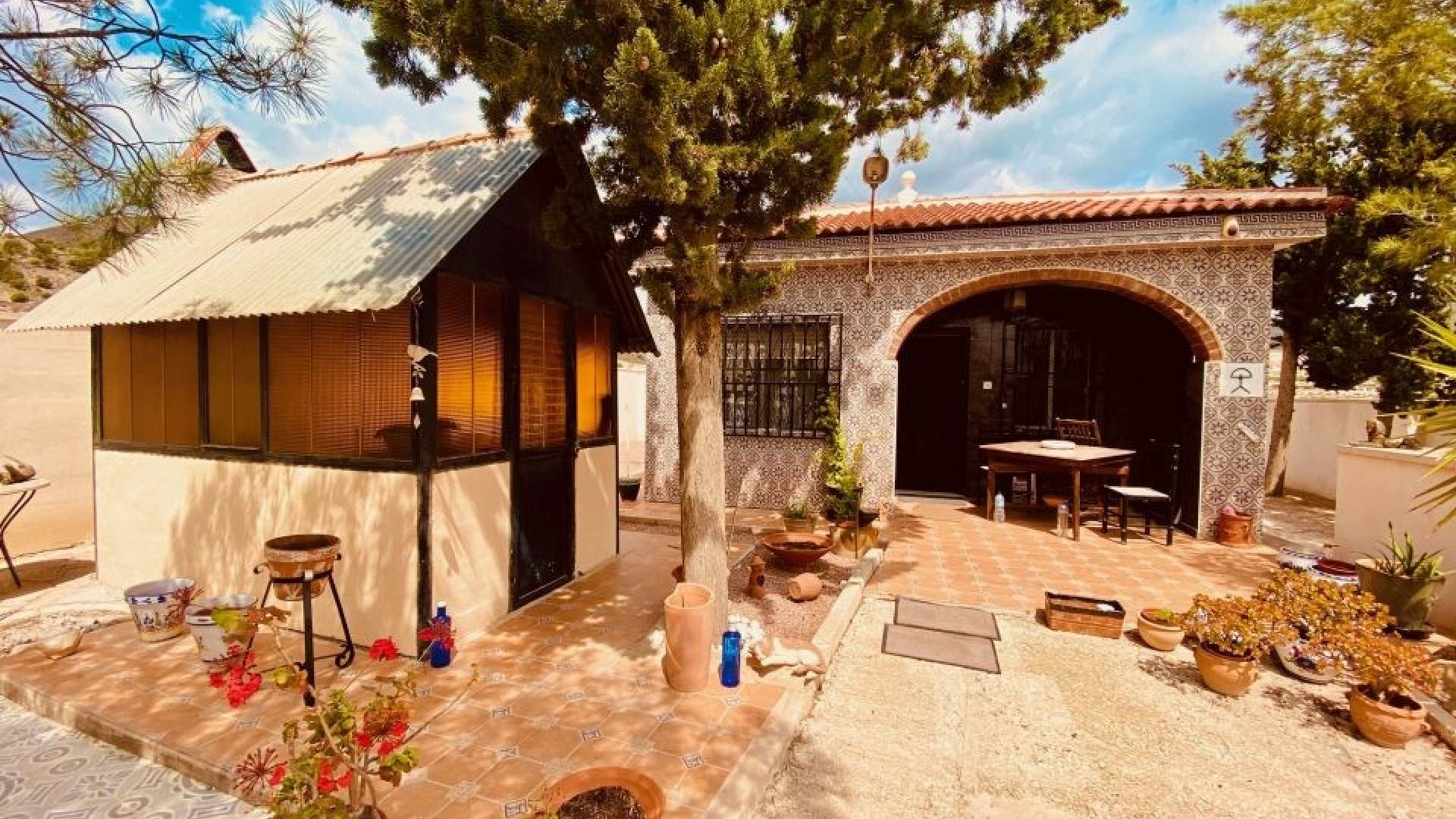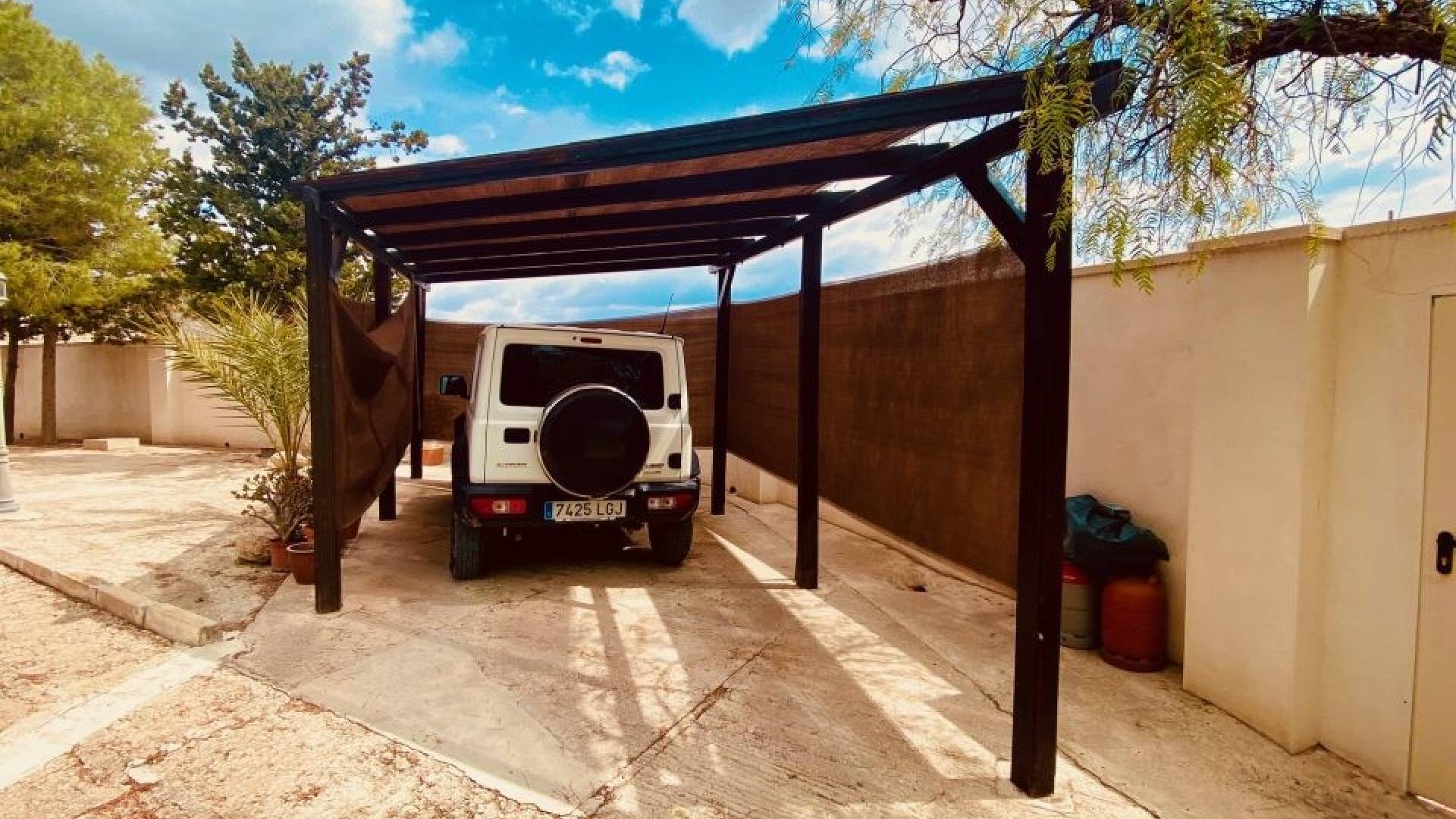 En la parte trasera del terreno encontrará dos trasteros, y en la parte delantera de la casa una original cocina exterior y un carport. Los pinos situados en la parte frontal y lateral de la vivienda proporcionan una agradable sombra durante los meses de verano.