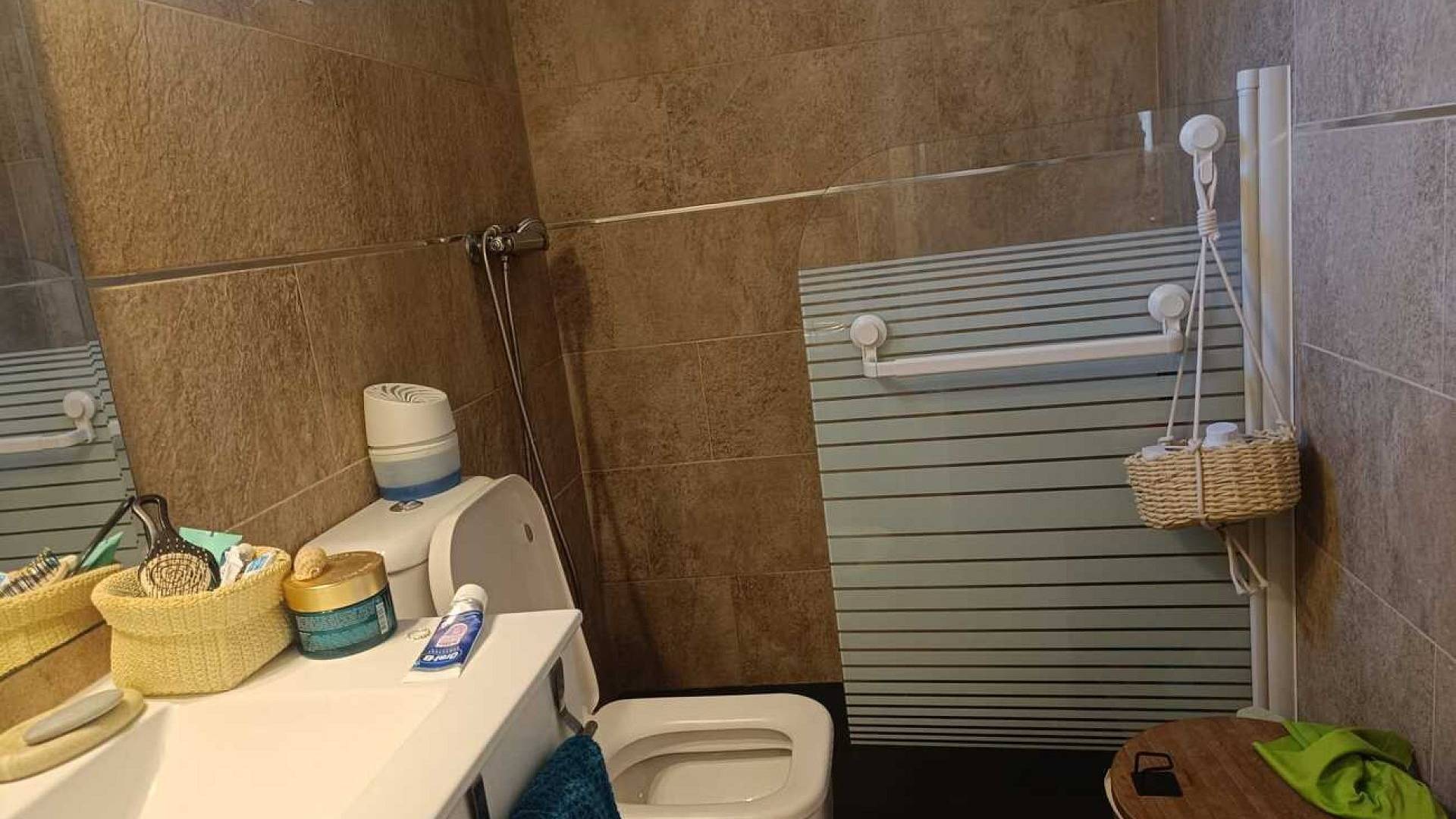 Una escalera exterior conduce a la planta superior, que es un apartamento independiente con aire acondicionado, cocina, baño y un amplio salón. Además, el apartamento cuenta con un amplio balcón/terraza privada.