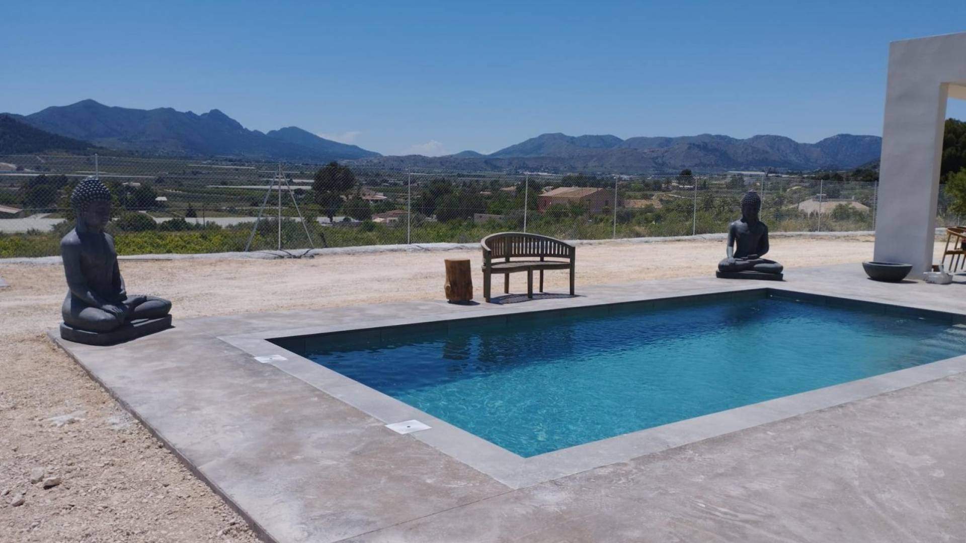 La piscina está rodeada por un elegante enlosado cerámico de 1,5 metros, creando un entorno perfecto para el descanso y el entretenimiento.