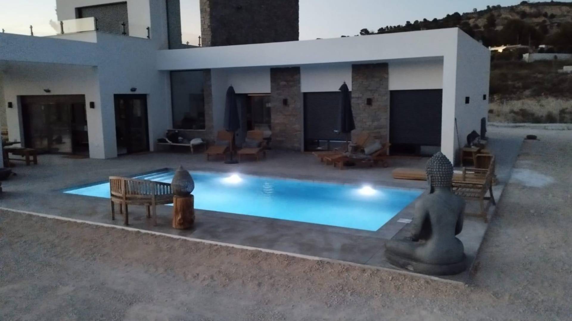 La villa está equipada con persianas de aluminio motorizadas y preinstalación de aire acondicionado por conductos, garantizando confort en cualquier época del año. Además, cuenta con un sistema de aerotermia para agua caliente, mejorando la eficiencia energética de la vivienda.