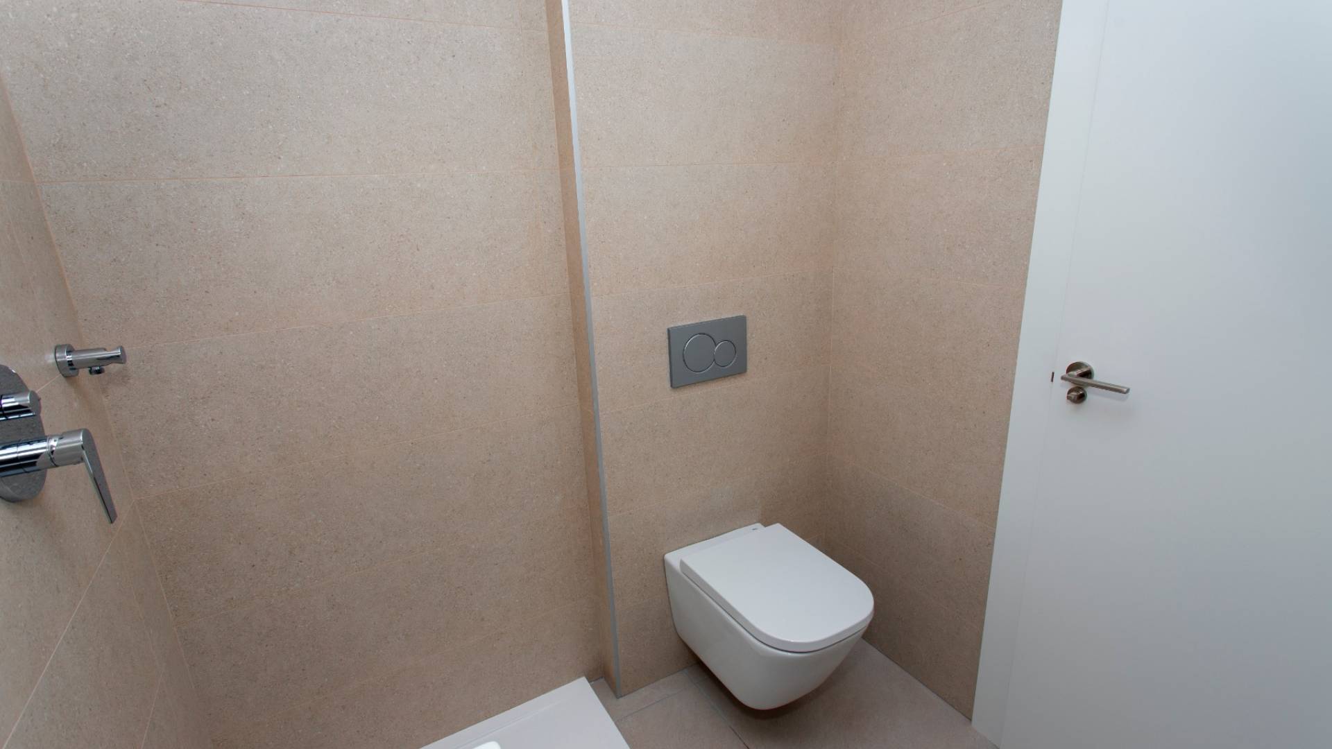 Las cocinas están totalmente amuebladas y acabadas con encimeras de granito o aglomerado sintético (silestone o similar). Los baños están terminados con sanitarios y grifería de alta calidad con cisterna empotrada.