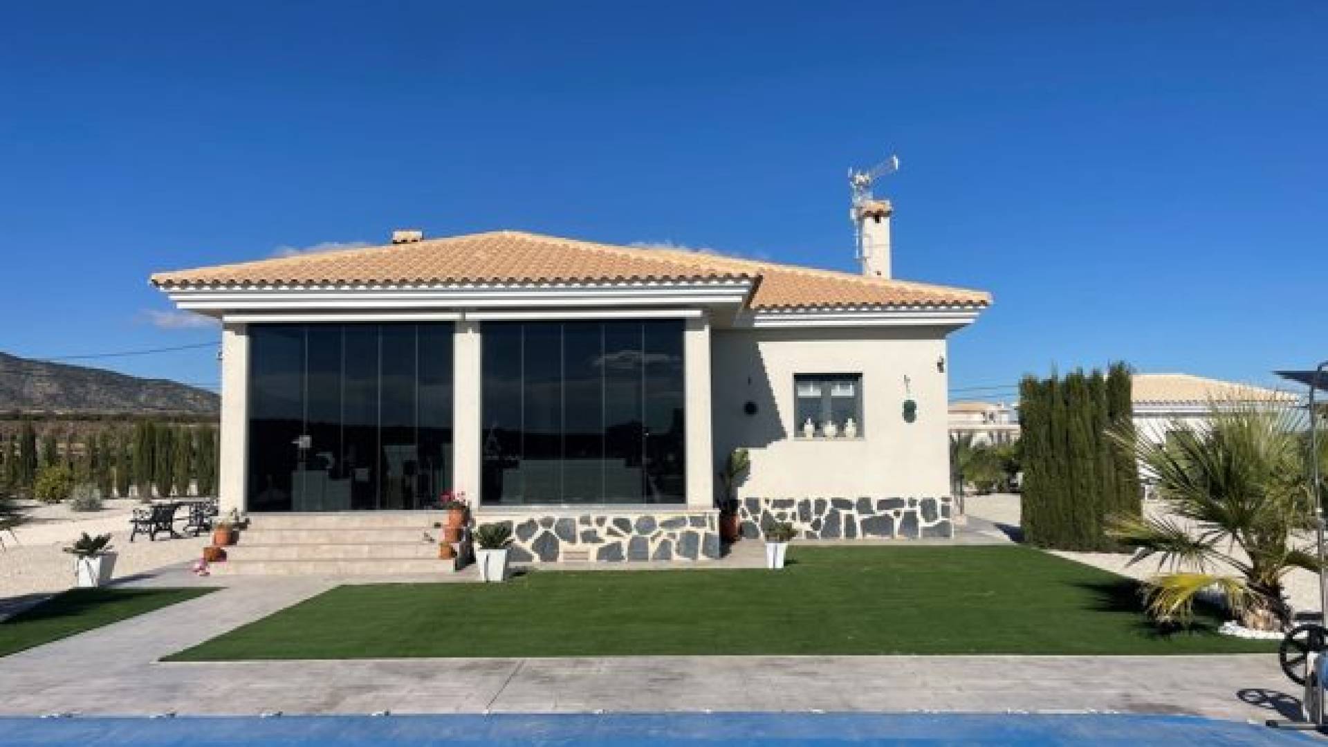 Cette superbe villa sera construite selon vos gouts et avec des finitions de qualité.La villa comprend 3 chambres (la chambre principale dispose de sa salle de bain privée), une deuxième salle de bain. Lespace de vie se compose dune cuisine ouverte, un salon/salle à manger avec feu ouvert (cassette) et une très grande terrasse couverte.Le terrain fait 10.000m² dont +/- 3.000m² seront clôturés. Sur le terrain et compris dans le prix, vous avez une piscine (8x4m).En supplément, possibilité de faire construite une cuisine extérieure, garage pour 1 ou plusieurs voitures, Ces villas peuvent également être construites dans la région de Hondon, La Romana, Aspe, Catral ou Dolores.Nhésitez pas à nous contacter pour plus dinformations.