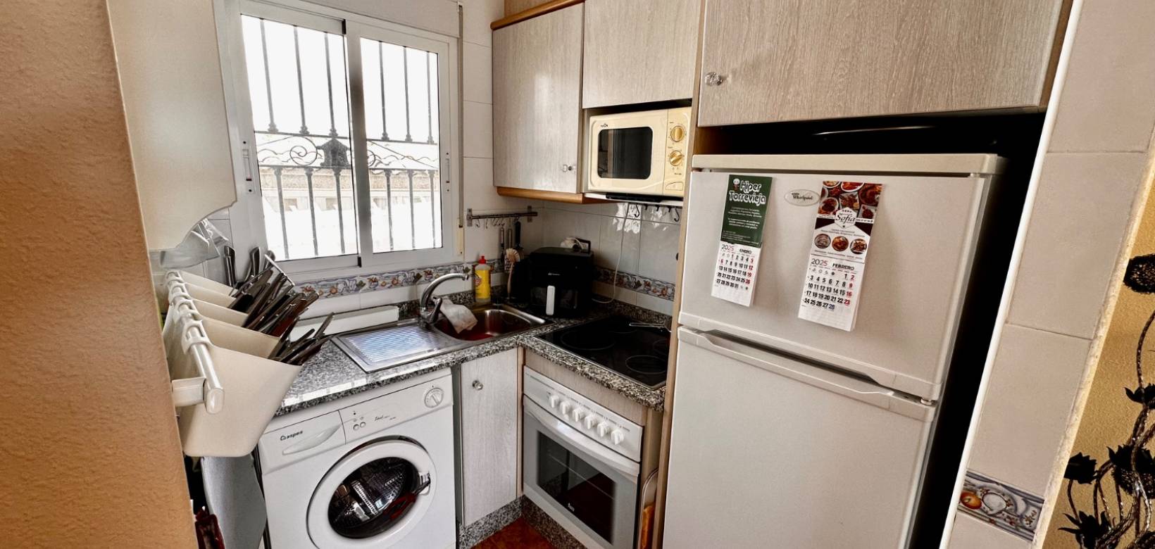 Charmant bungalow mitoyen à vendre dans le quartier prisé de La Siesta à Torrevieja. Ce bien comprend deux chambres, une salle de bains moderne, un séjour chaleureux et une cuisine américaine récemment rénovée. La salle de bains a également été récemment rénovée. Le bungalow bénéficie en outre d'un grand jardin...