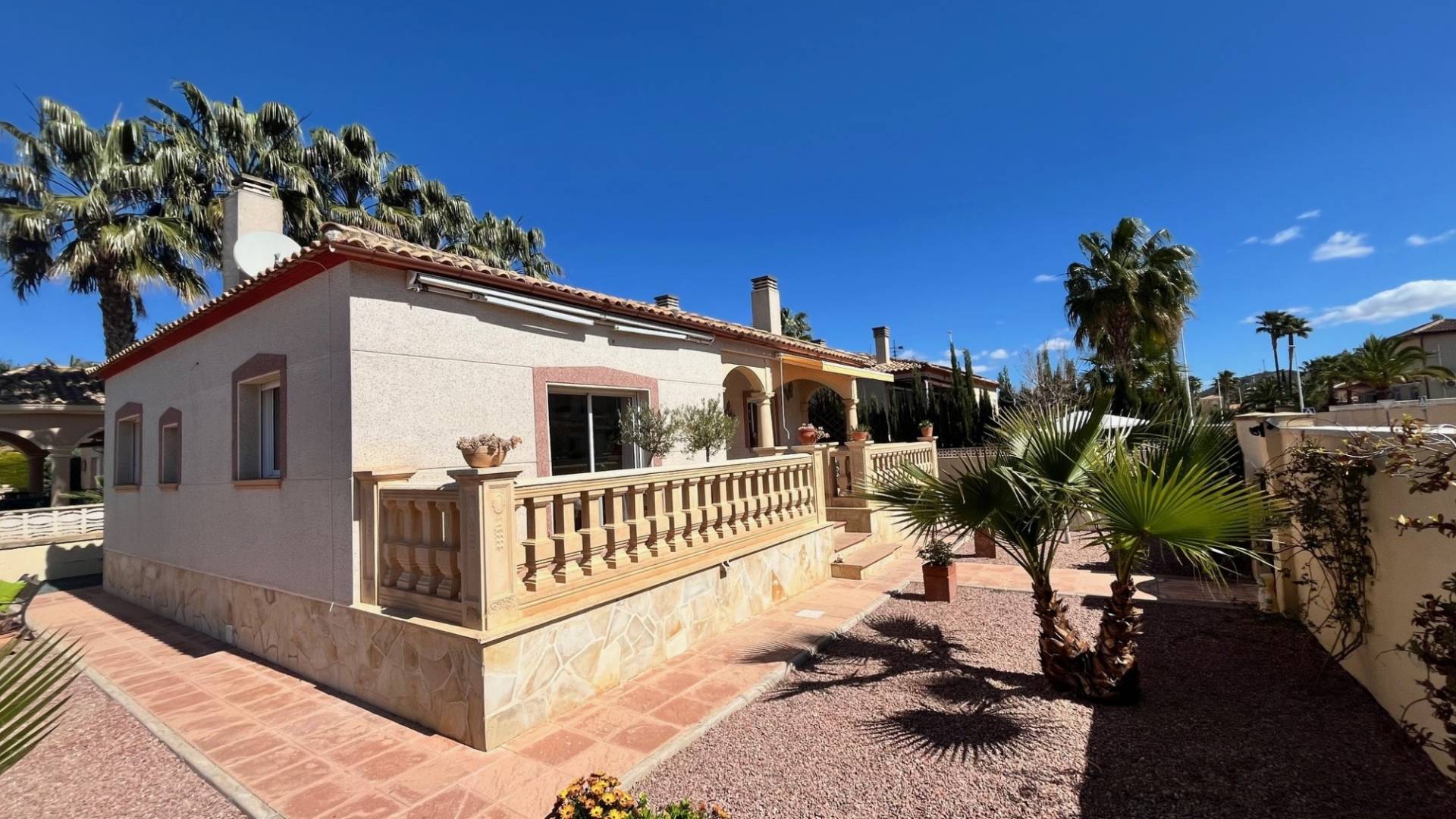 Nous sommes ravis de vous présenter cette villa individuelle impeccable de trois chambres, située sur un terrain d'angle avec une allée privée, dans la très recherchée urbanisation de La Montañosa, près de Hondón de las Nieves.