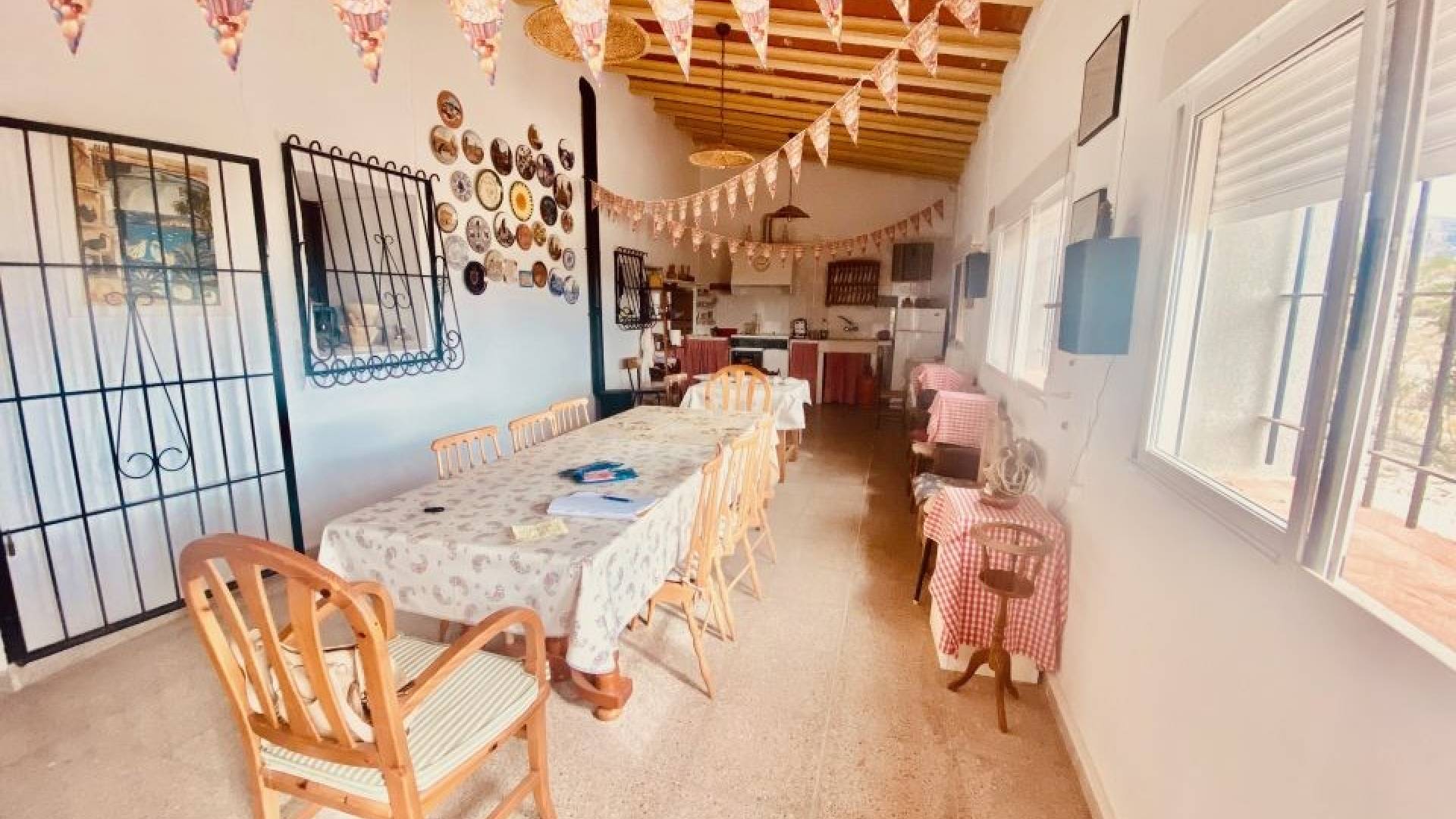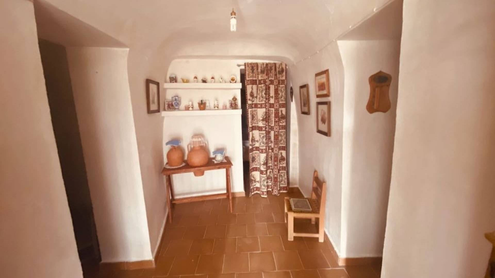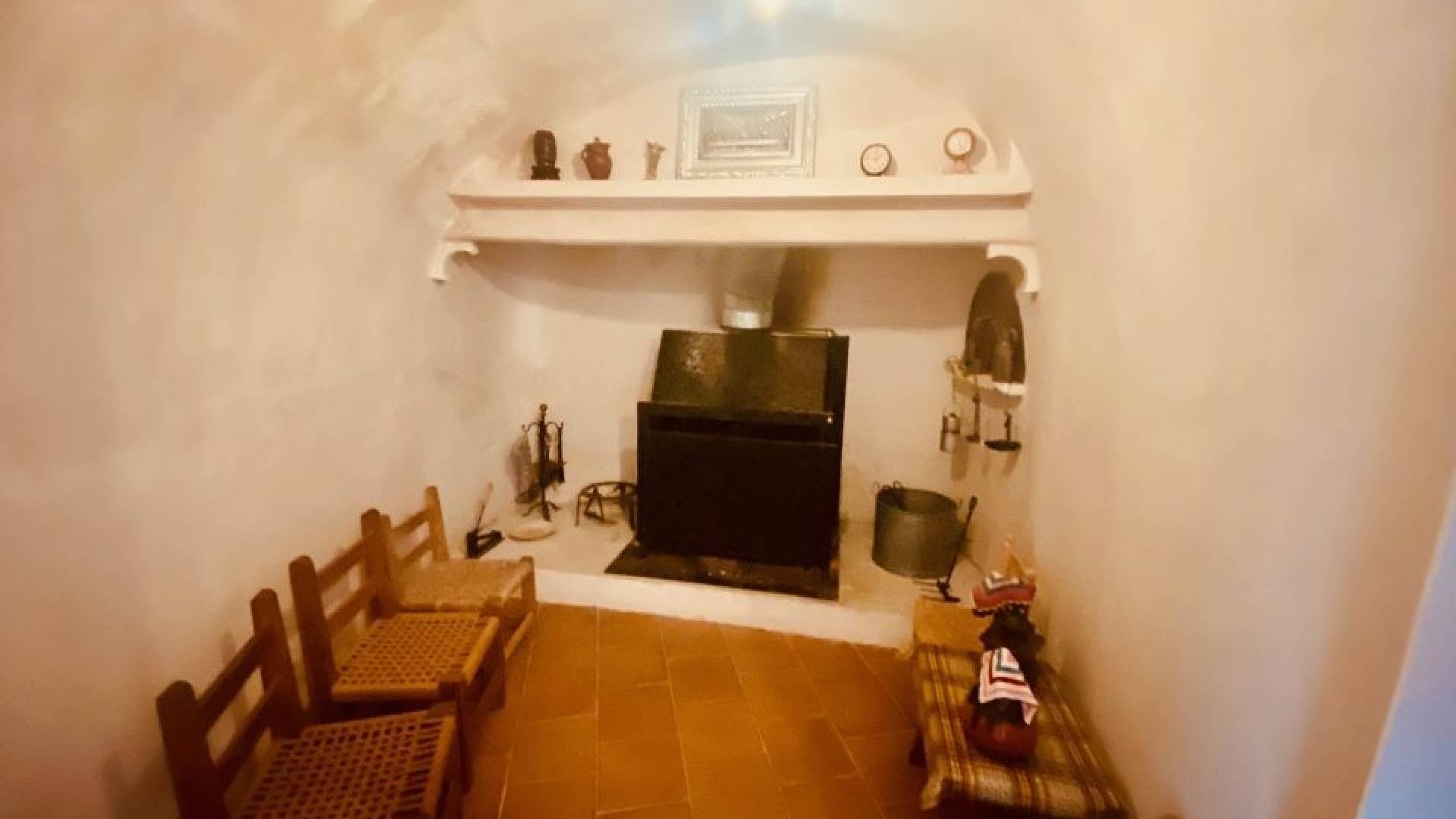 La maison dispose d’une grande pièce qui pourrait servir de cuisine avec salon/salle à manger ouvert de 37m². A l’arrière se trouve la partie troglodyte qui dispose d’une chambre de rangement, une salle de bain, deux chambres à coucher et une pièce avec feu à bois. La maison dispose de plaque solaire et plusieurs dépôts d’eau qui sont alimentés par l’eau de la montagne.