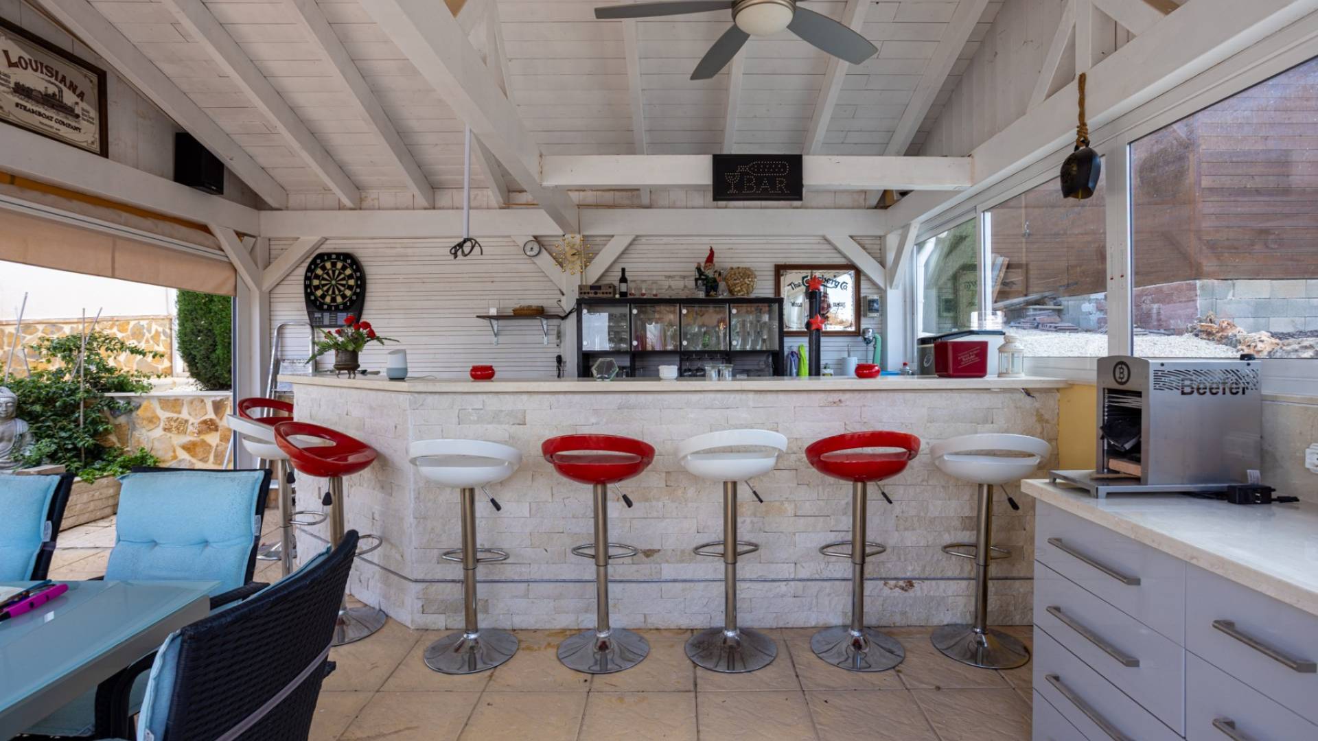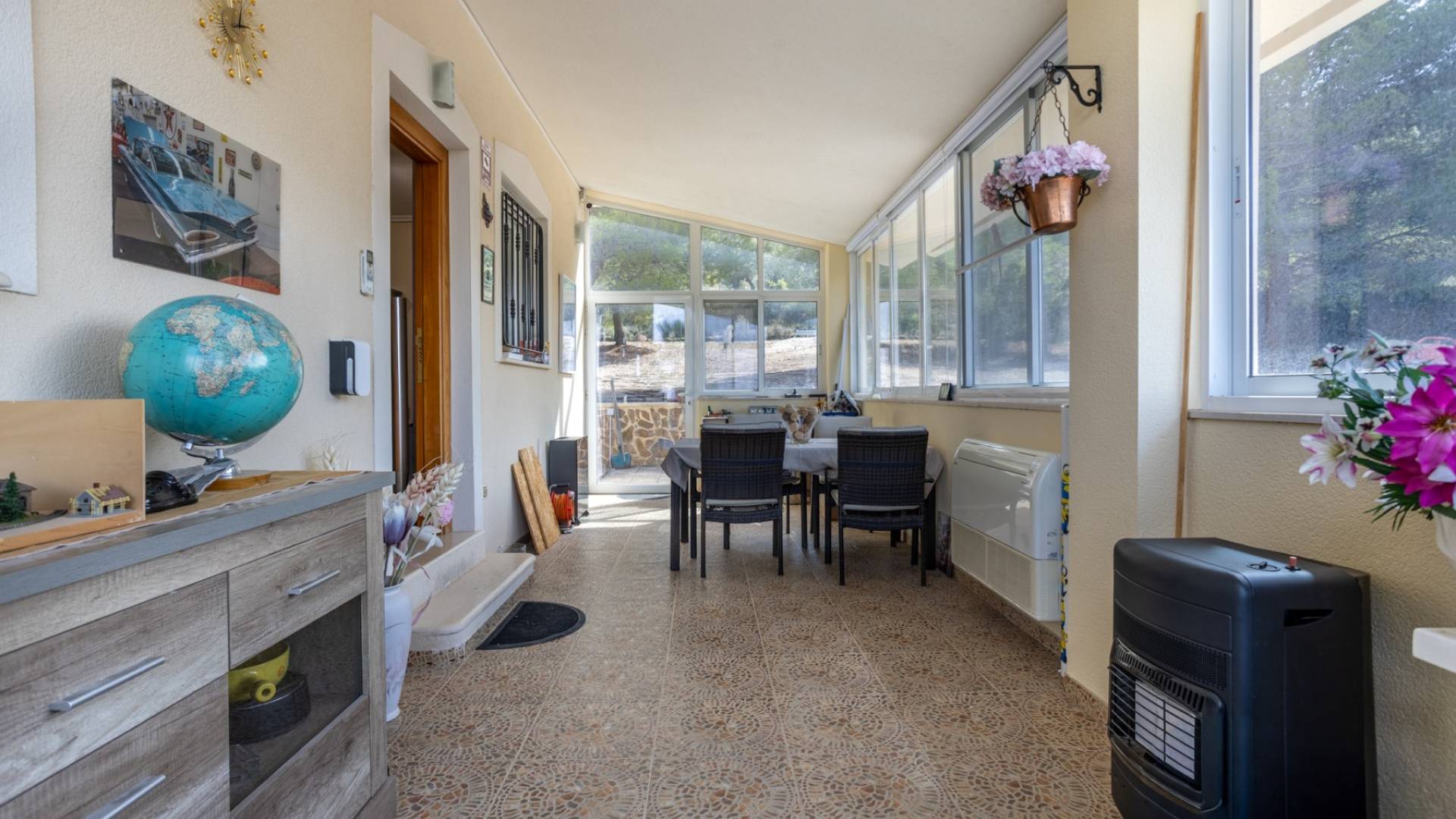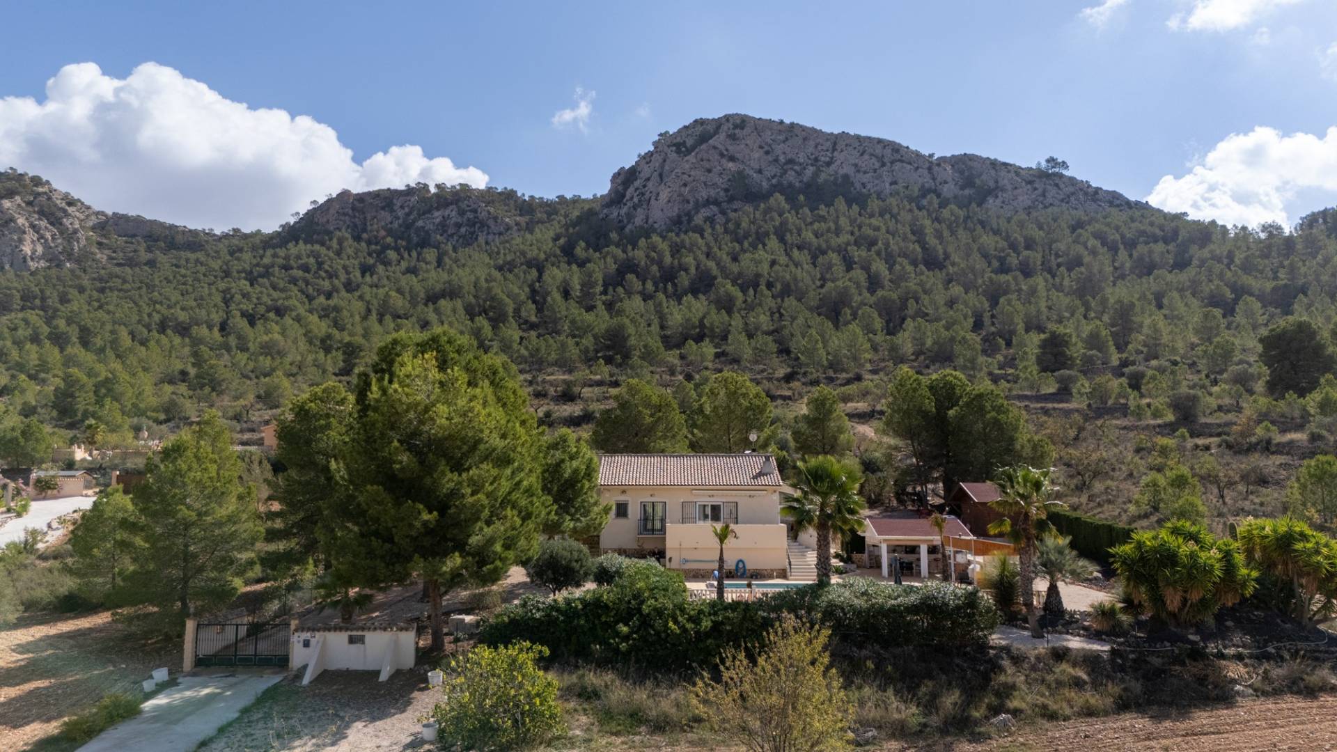 Découvrez cette spectaculaire villa individuelle, nichée dans le cadre paisible de La Zarza, où le paysage montagneux et l'environnement rural s'allient à toutes les commodités modernes. Une propriété unique pour ceux qui recherchent intimité, espace et qualité de vie, à seulement une heure de la côte. La maison, d'une superficie construite de 134 m², est implantée sur un impressionnant terrain de 8 500 m², offrant divers espaces extérieurs, des jardins arborés et des espaces de détente. Son exposition sud-ouest garantit un ensoleillement permanent et des couchers de soleil spectaculaires. À l'intérieur, la maison offre un design chaleureux et fonctionnel. Elle dispose de quatre chambres spacieuses, baignées de lumière naturelle, et de deux salles de bain complètes, idéales pour un séjour en famille ou entre amis. Une chambre sert actuellement de bureau. La nouvelle cuisine ouverte s'intègre harmonieusement au salon-salle à manger, créant un espace spacieux et confortable au quotidien. Le salon est doté d'une cheminée traditionnelle, idéale pour les soirées d'hiver, et le chauffage central assure un confort optimal toute l'année. La villa est entièrement meublée et équipée, prête à emménager sans travaux. Elle dispose également de la climatisation pour les mois les plus chauds. 15 panneaux solaires fournissent l'électricité et 4 autres chauffent l'eau. L'extérieur est l'un des atouts majeurs de la propriété : une belle piscine privée (chauffée pour l'hiver), un barbecue intégré avec cuisine extérieure et bar, une véranda couverte pour profiter du plein air même en été, et plusieurs terrasses pour se détendre ou dîner en plein air. Une place de parking privée et un débarras/abri en bois offrent un espace de rangement supplémentaire. Sous la terrasse se trouve un débarras de 30 m². Emplacement privilégié : A seulement 10 minutes des commodités, commerces et restaurants A 60 minutes des plages méditerranéennes À 60 minutes de l'aéroport international le plus proche À 40 minutes des terrains de golf Qu'il s'agisse d'une résidence permanente, d'une résidence secondaire ou d'un investissement dans le tourisme rural, cette villa offre un équilibre parfait entre tranquillité, nature et confort.