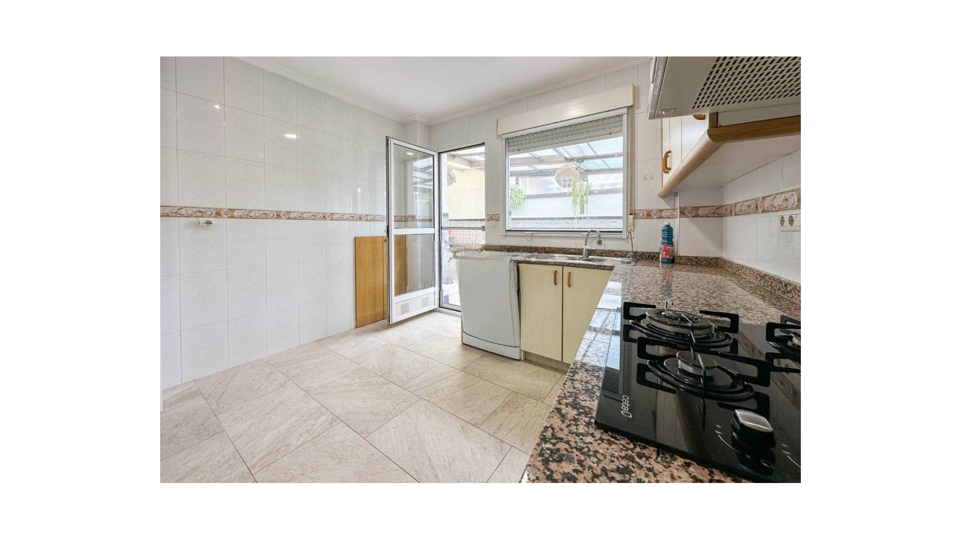 Cette spacieuse maison de ville est répartie sur deux étages. Au rez-de-chaussée, en entrant, vous découvrirez un grand espace de vie ouvert, salon/salle à manger. La cuisine est entièrement équipée, avec une plaque de cuisson au gaz et un four électrique. À l’arrière de la cuisine, une porte donne accès à une terrasse-patio fermée avec toit coulissant.