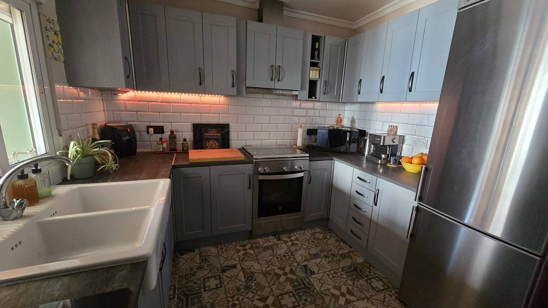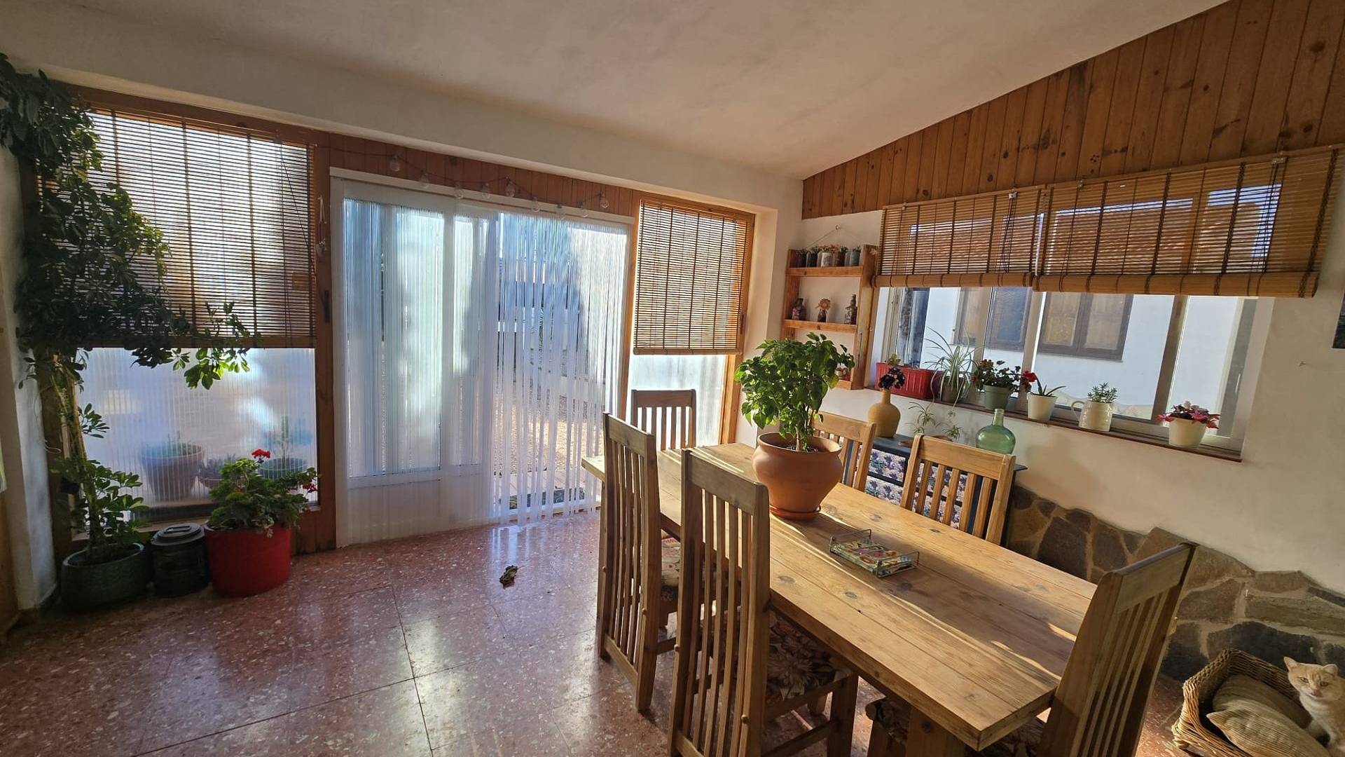 À l'intérieur, la maison offre trois chambres doubles spacieuses et une grande salle de bains familiale bien équipée. Le salon lumineux comprend un coin repas, un poêle à bois récemment installé et une climatisation réversible pour un confort optimal toute l'année. La cuisine moderne et entièrement équipée présente des finitions haut de gamme. Une véranda fermée offre deux espaces de vie supplémentaires polyvalents, dont l'un est actuellement utilisé comme salle à manger formelle avec une vue imprenable sur les jardins soignés.