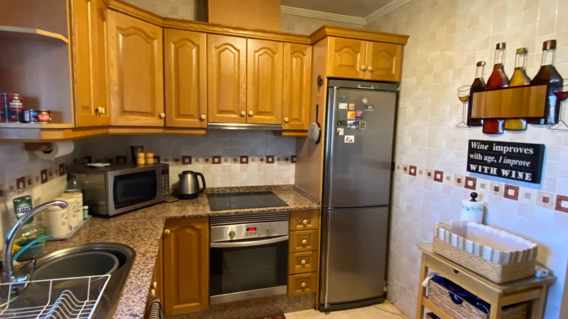 Entrez dans la villa par la naya vitrée et profitez de vues impressionnantes sur la vallée de Hondón. Le spacieux salon dispose de la climatisation, d’une cheminée et du chauffage central, tandis que les portes-fenêtres s’ouvrent sur une terrasse surélevée idéale pour les repas en plein air ou la détente au soleil. La cuisine entièrement équipée est lumineuse et fonctionnelle, avec un large choix de meubles et une belle vue sur les collines environnantes.