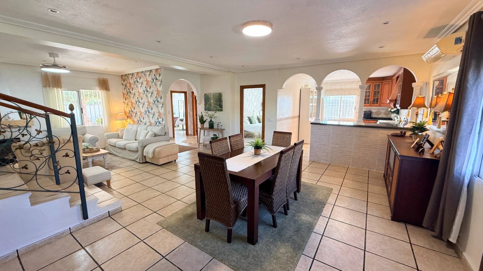 Nombreux sont les clients qui recherchent une propriété paisible tout en pouvant accéder à pied aux bars, restaurants et commerces. Ces biens sont rares dans la vallée de Hondón – et cette villa coche toutes les cases. Située à seulement quelques minutes à pied du village de Hondón de los Frailes, cette villa exposée plein sud offre un parfait équilibre entre campagne et vie de village. Entourée de nature, avec une oliveraie comme voisin le plus proche, tout en étant à proximité immédiate de toutes les commodités. La propriété se trouve sur un terrain plat et entièrement clôturé de 1 151 m², avec portail coulissant électrique. Elle est raccordée à l’eau potable, l’électricité et internet haut débit. Le jardin dispose d’arbres matures, de figuiers et d’oliviers, ainsi que de nombreux espaces de plantation. Le terrain est très privé et les parcelles voisines ne sont plus constructibles. Quelques marches mènent à un porche ombragé, véritable espace de vie pour une grande partie de l’année. À l’intérieur, un hall lumineux dessert les différentes pièces. Le salon-salle à manger ouvert avec cuisine américaineest spacieux et lumineux, équipé d’un poêle à bois et de la climatisation chaud/froid. Au rez-de-chaussée : Deux chambres doubles avec climatisationUne salle de bain familiale avec baignoire d’angle À l’étage, un grand palier, deux chambres supplémentaires et un WC. Avec peu de travaux, un appartement indépendant peut être aménagé. Le solarium de 42 m² offre une vue spectaculaire à presque 360°. Une cuisine d’été avec barbecue, accessible sous l’escalier, complète l’ensemble.