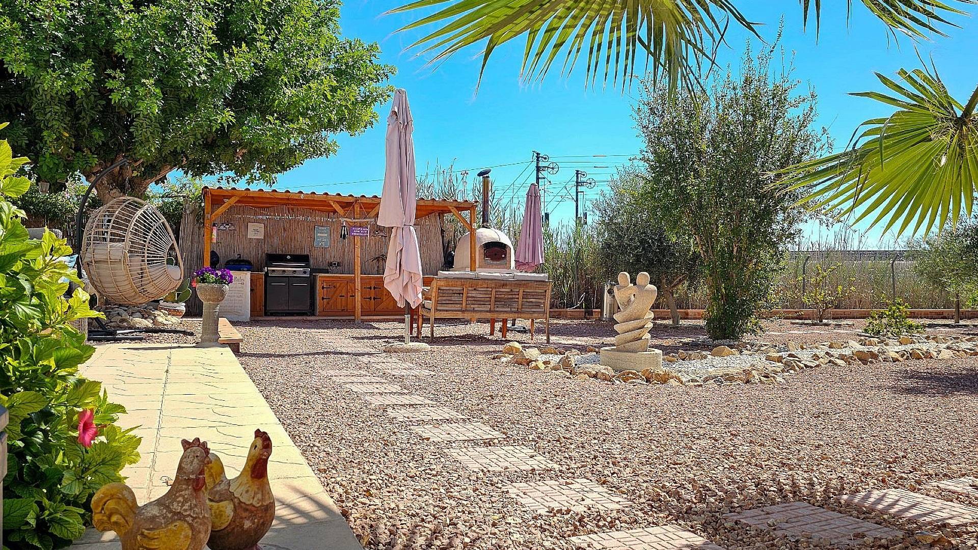 A convivial barbecue space with four pizzas, parfait for long soirées d'été en famille et entre amis.