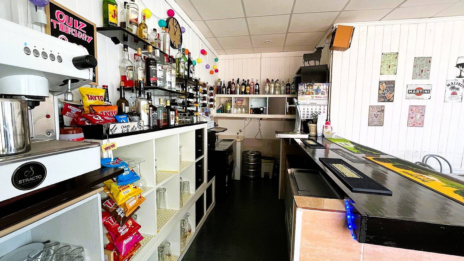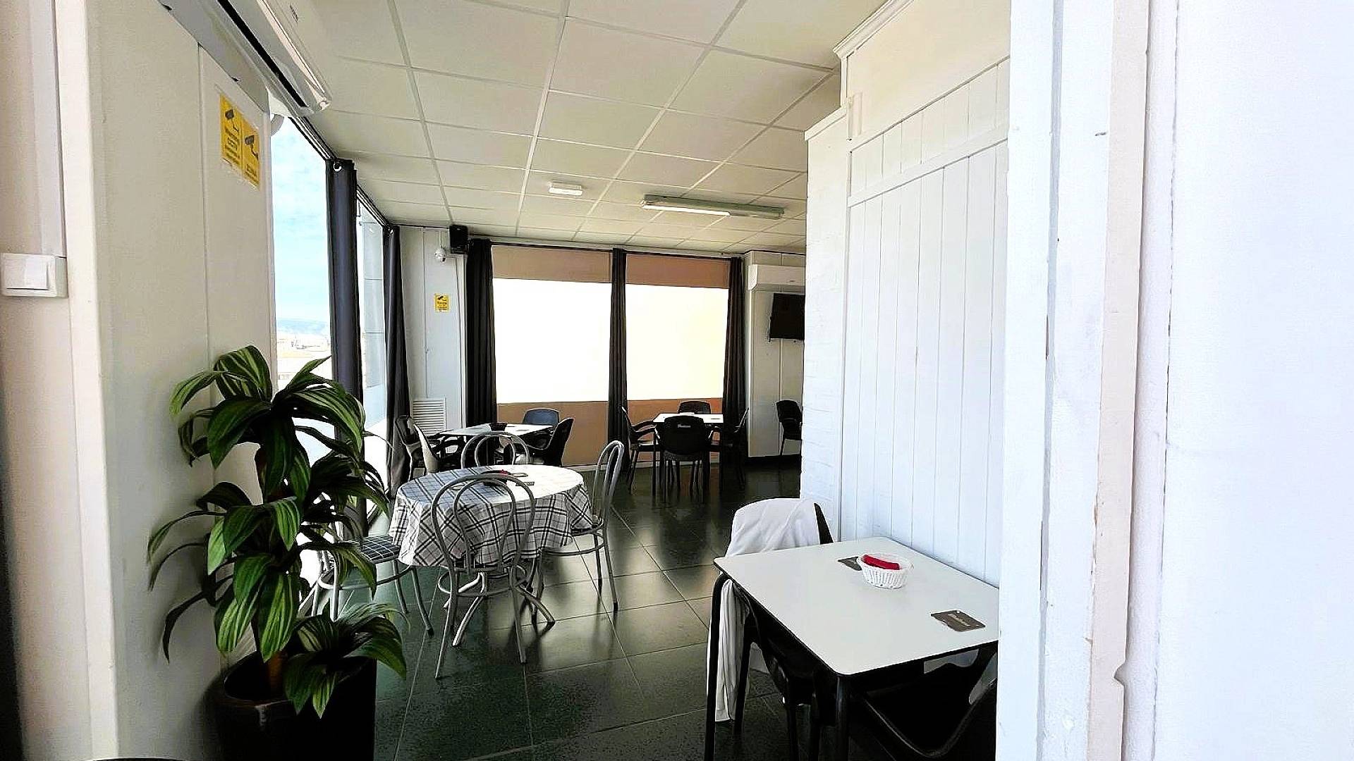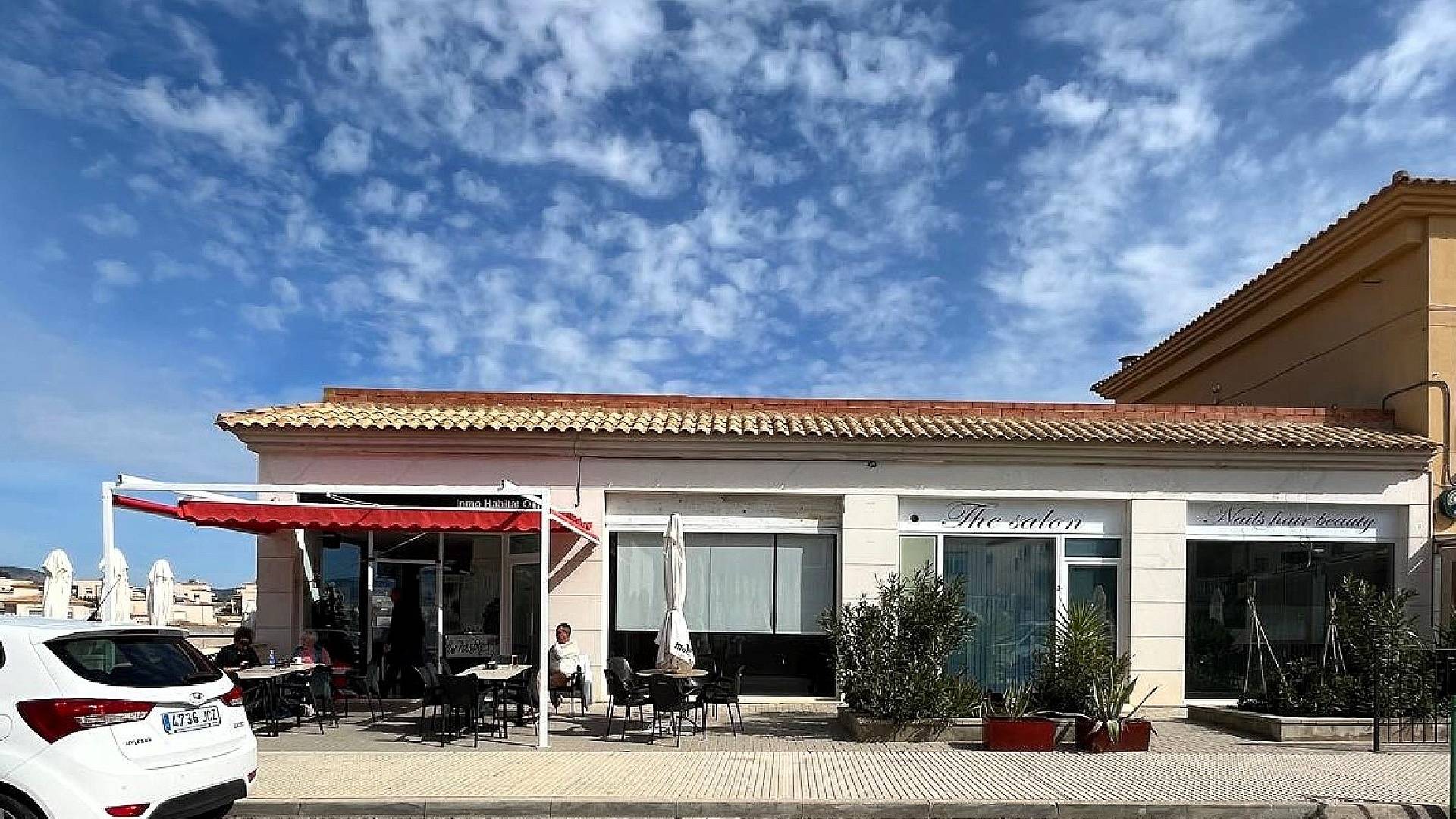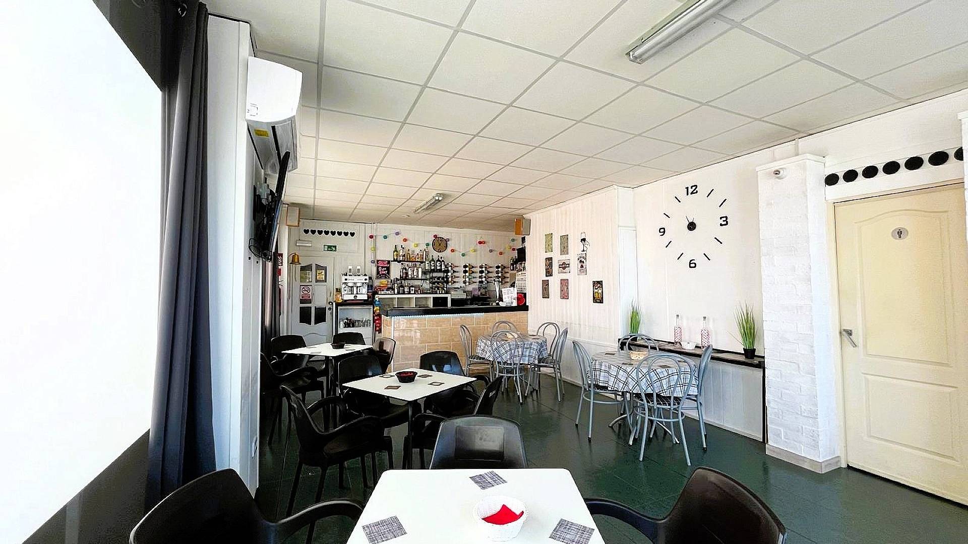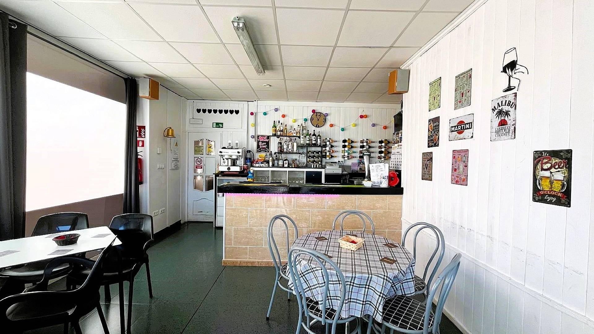 Nous avons un grand bâtiment moderne qui abrite 3 entreprises. La première est un grand bar moderne qui propose également un excellent menu pour le petit-déjeuner, le déjeuner et le dîner. Avec une capacité de 40 personnes à l'intérieur et une terrasse ensoleillée pour 80 personnes à l'extérieur. Le bar est très populaire dans l'urbanisation et compte déjà de nombreux clients. Vous pourriez donc potentiellement faire des bénéfices dès le premier jour.