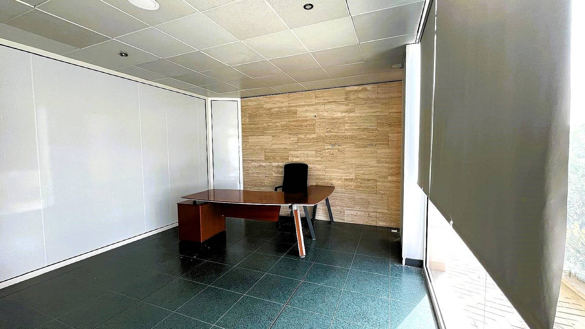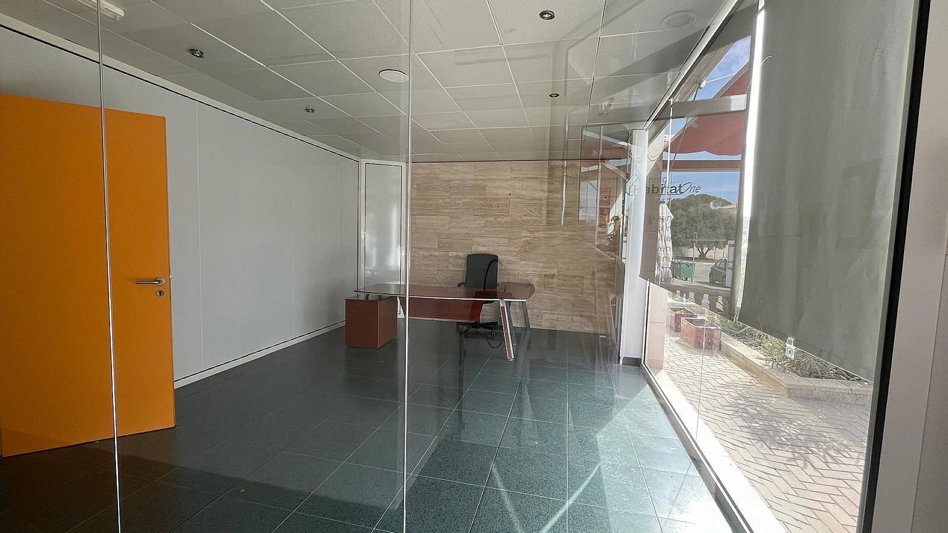 A côté du bar se trouve un bureau moderne avec une immense vitrine pour la publicité.