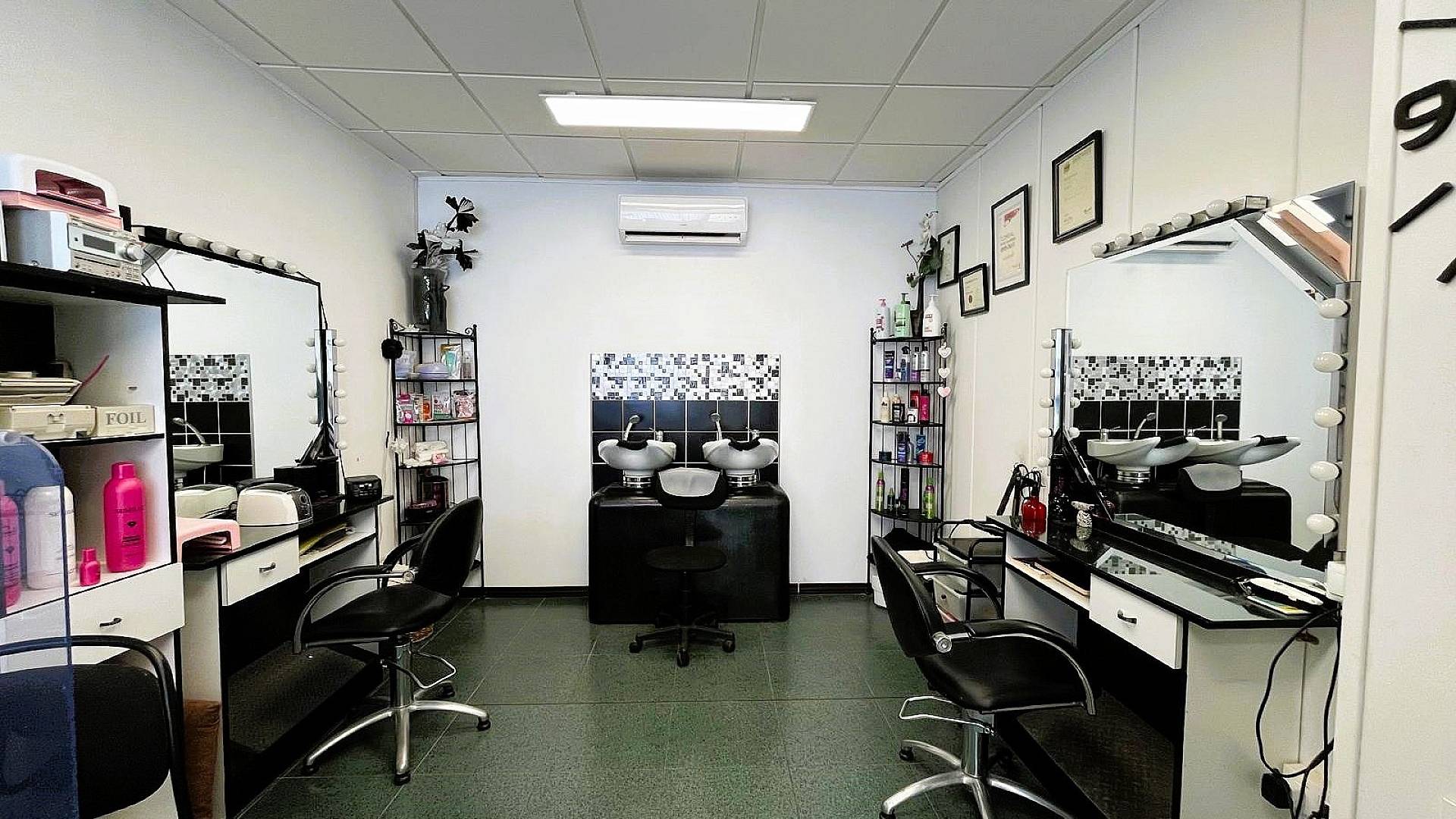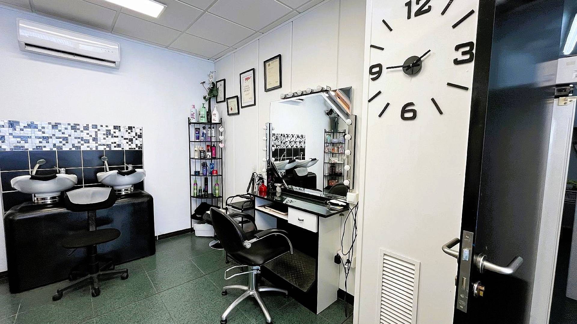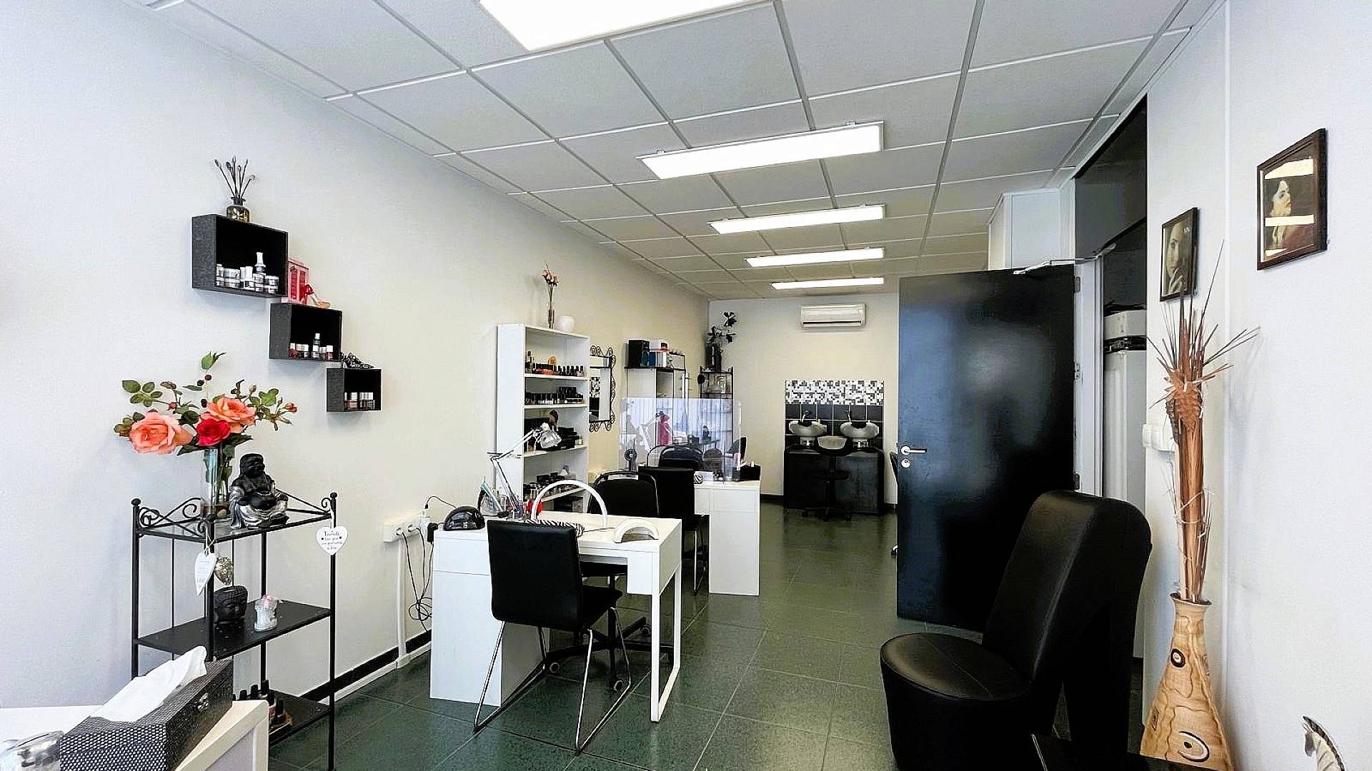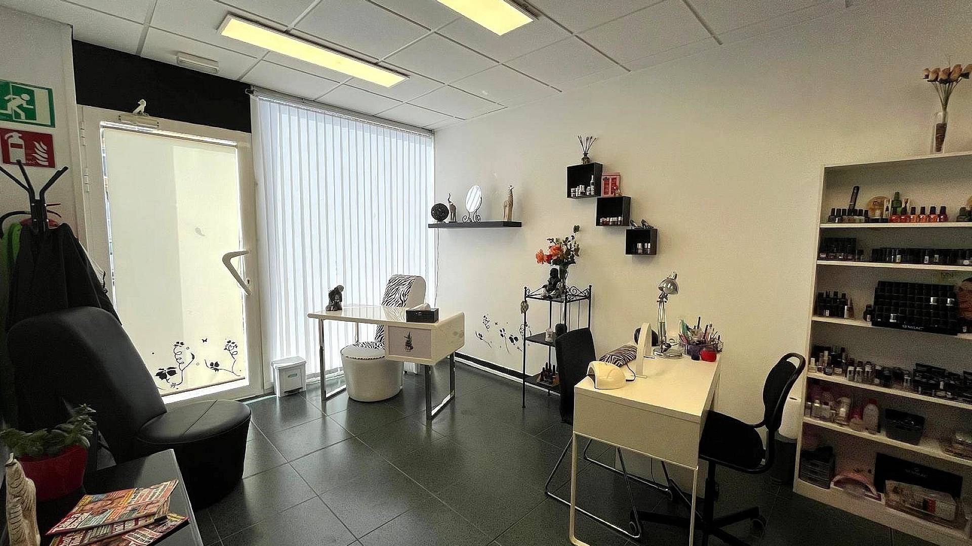 A côté du bureau se trouve un fabuleux salon de coiffure et de beauté. Encore une fois, l'entreprise a déjà des clients réguliers, donc quiconque achète cela, a une entreprise qui connaît déjà un grand succès.