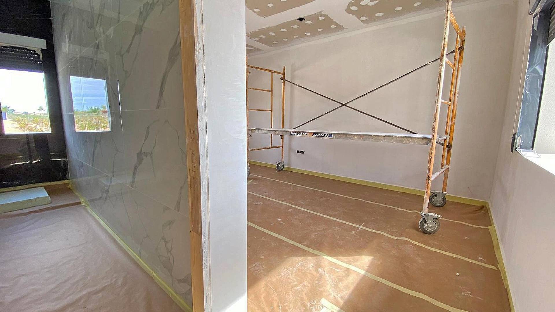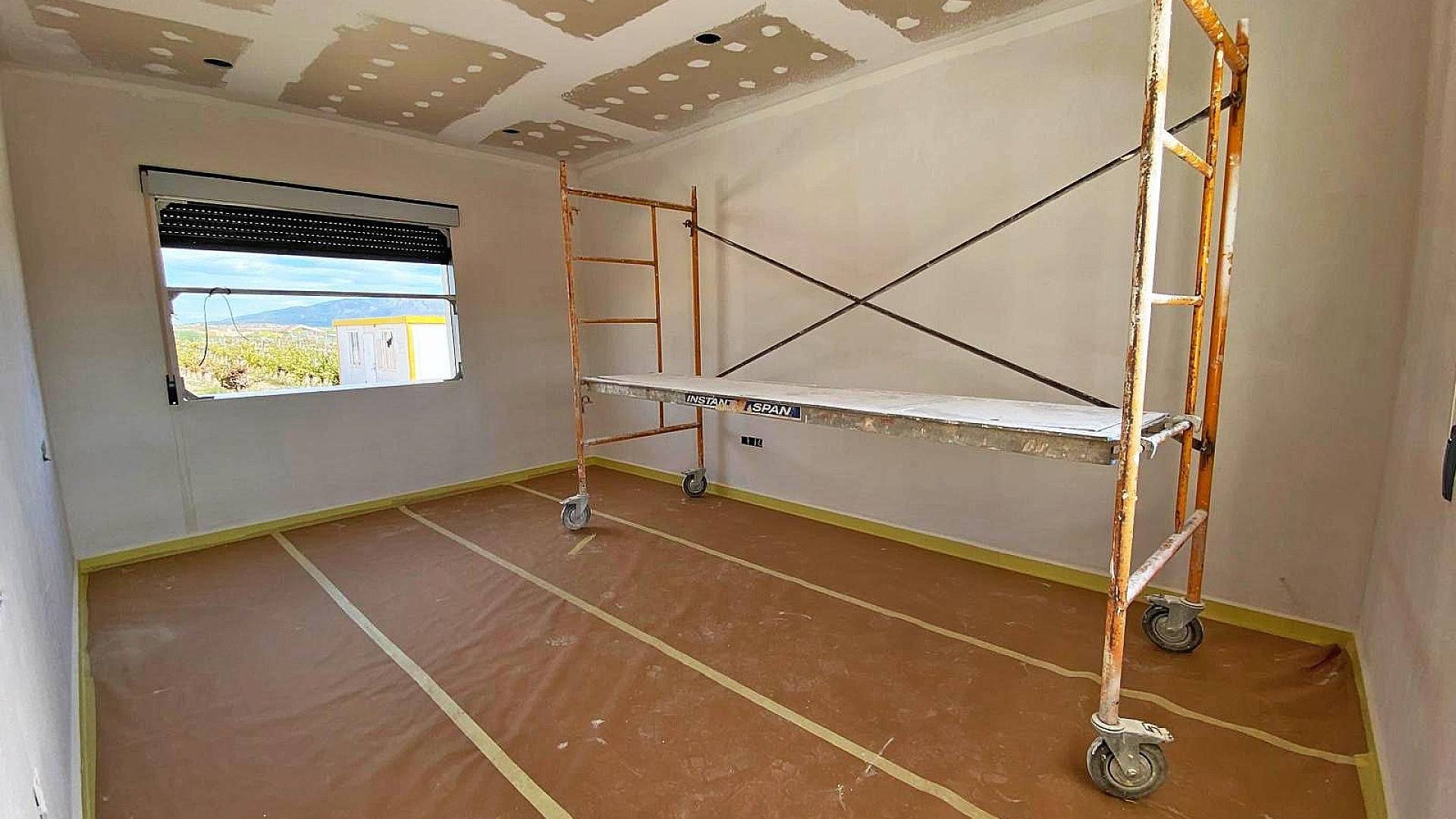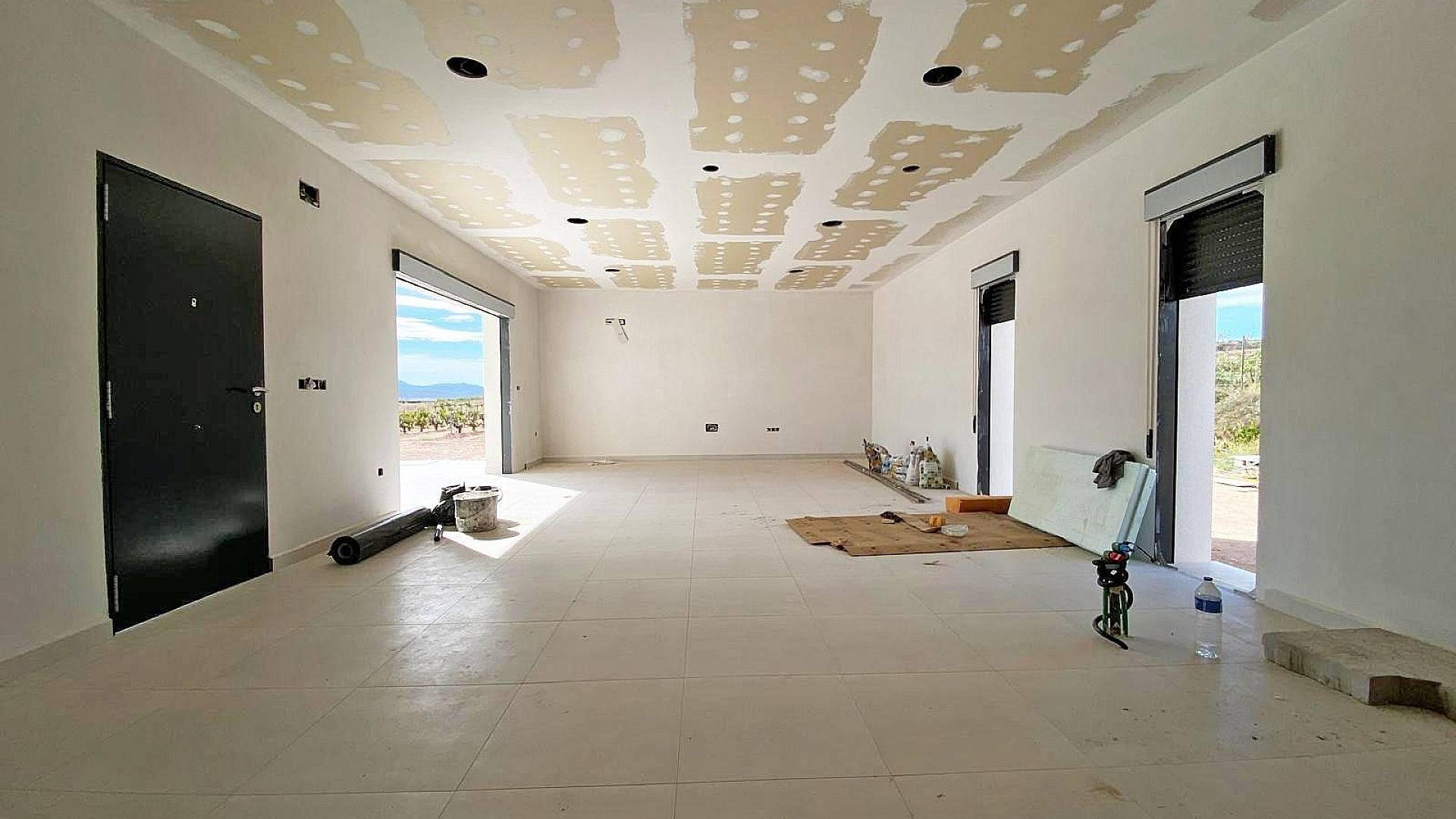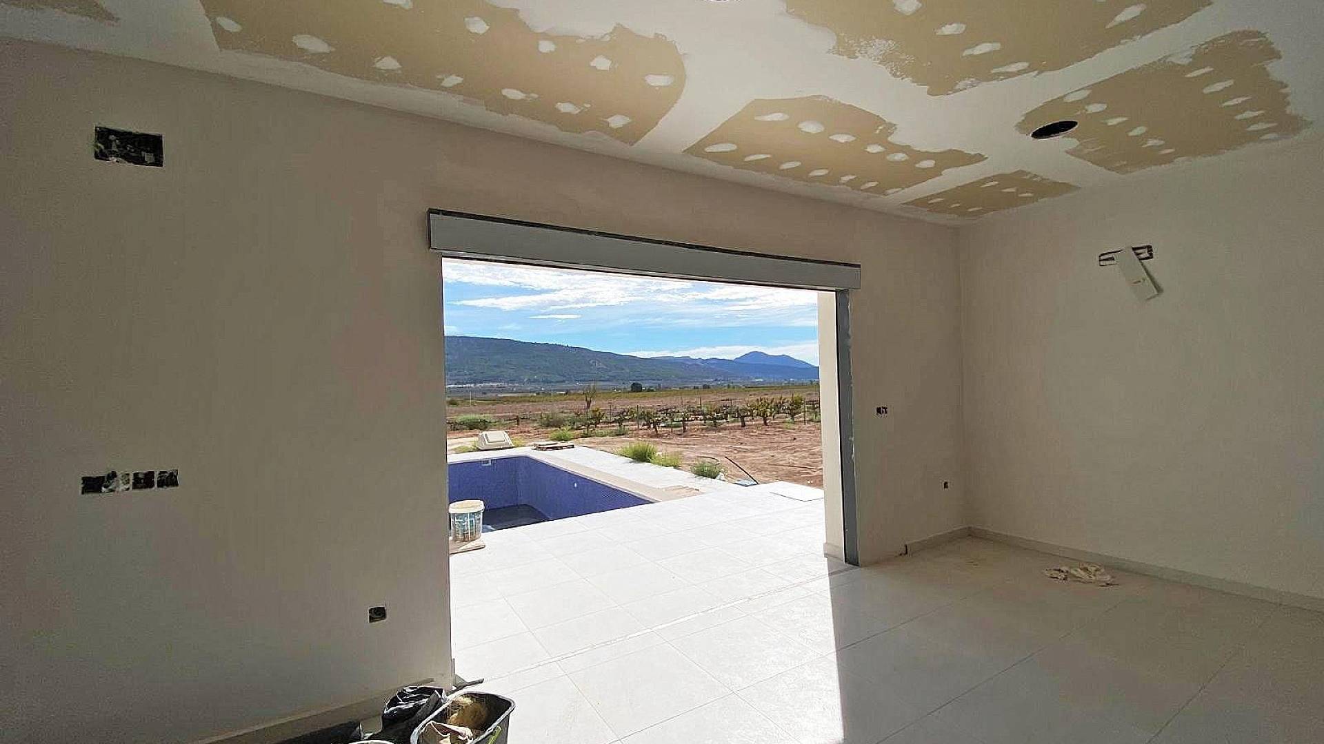 Cette nouvelle villa de style moderne est en cours d'achèvement. La villa est située à Pinoso, à 5 minutes à pied de toutes les commodités.La villa fait 160m² et comprend un grand espace de vie avec salon/salle à manger et cuisine équipée (pour 3,000), une buanderie, 3 chambres, dont 2 avec placards et 1 chambre avec une salle de bain attenante. La villa dispose d'une pré-installation pour la climatisation dans toute la maison (chaud/froid), de l'eau courante et de l'électricité. Le terrain est d'une superficie de 10 000 m², dont 3 000 m² sont clôturés. Il y a une piscine de 8x4m avec douche extérieure. L'accès à la propriété se fait par un portail électrique. Il y a un choix de finitions et d'extras (cuisine, salle de bain, etc.). Si vous cherchez une nouvelle construction mais que vous ne voulez pas attendre des mois, cette villa est faite pour vous.