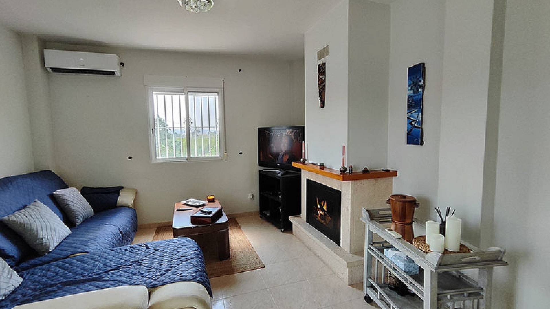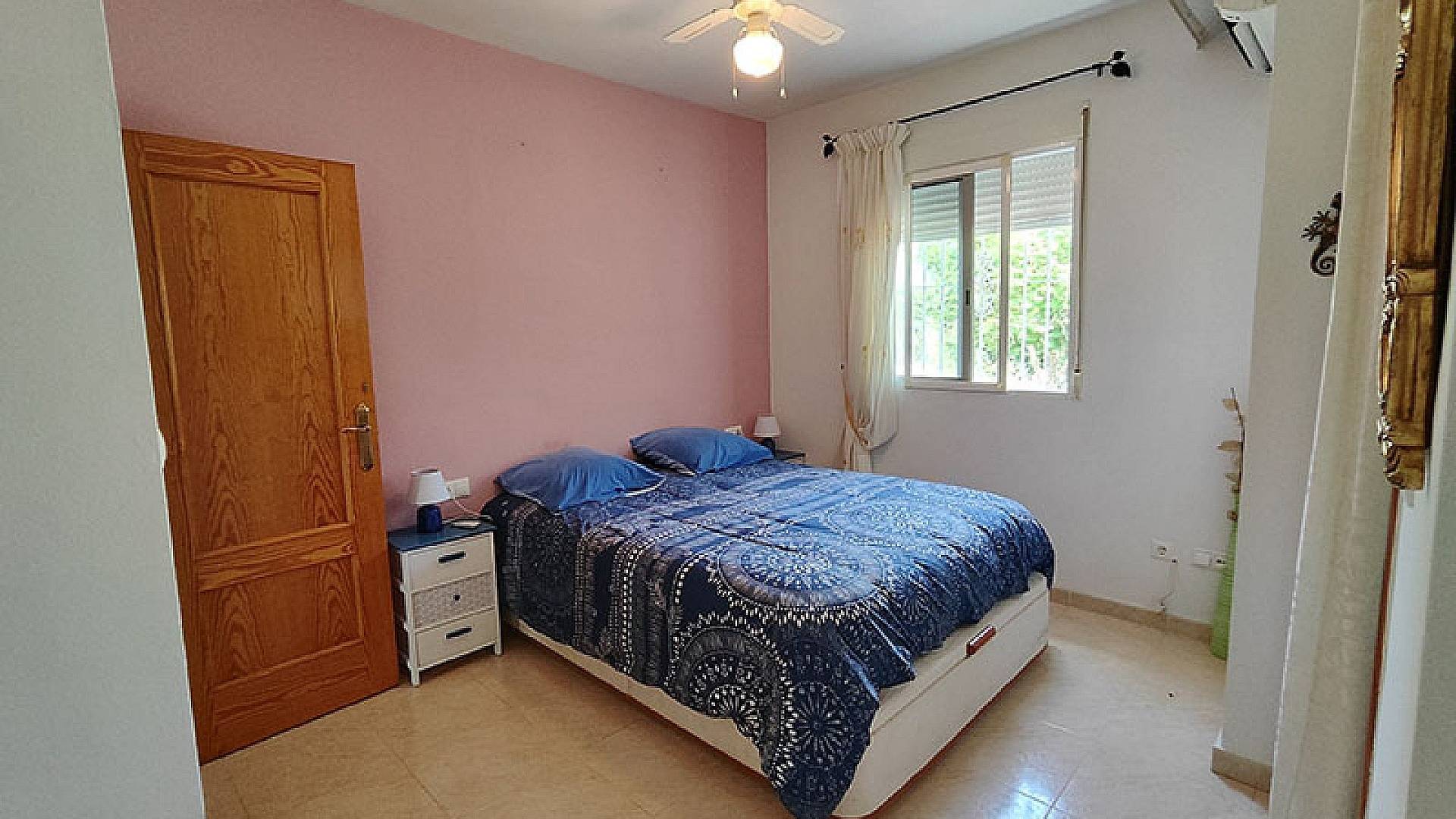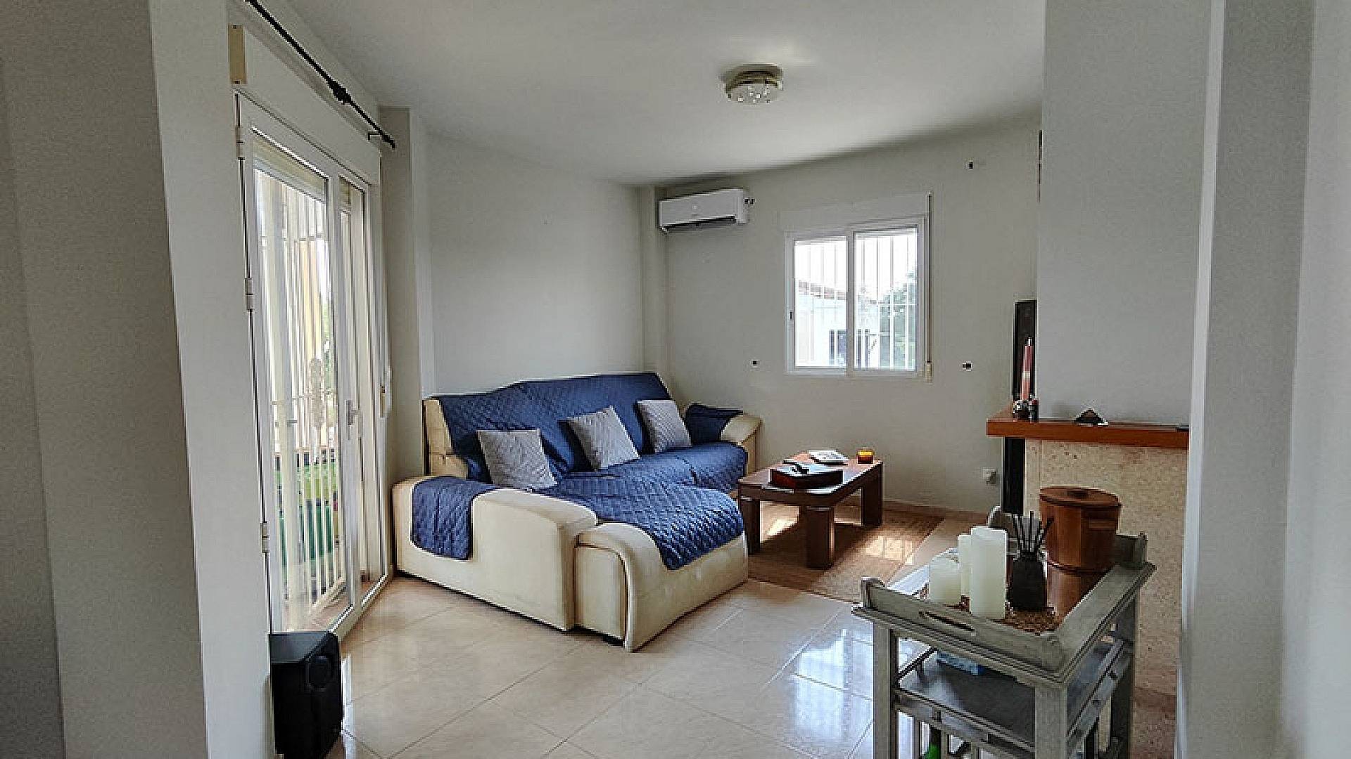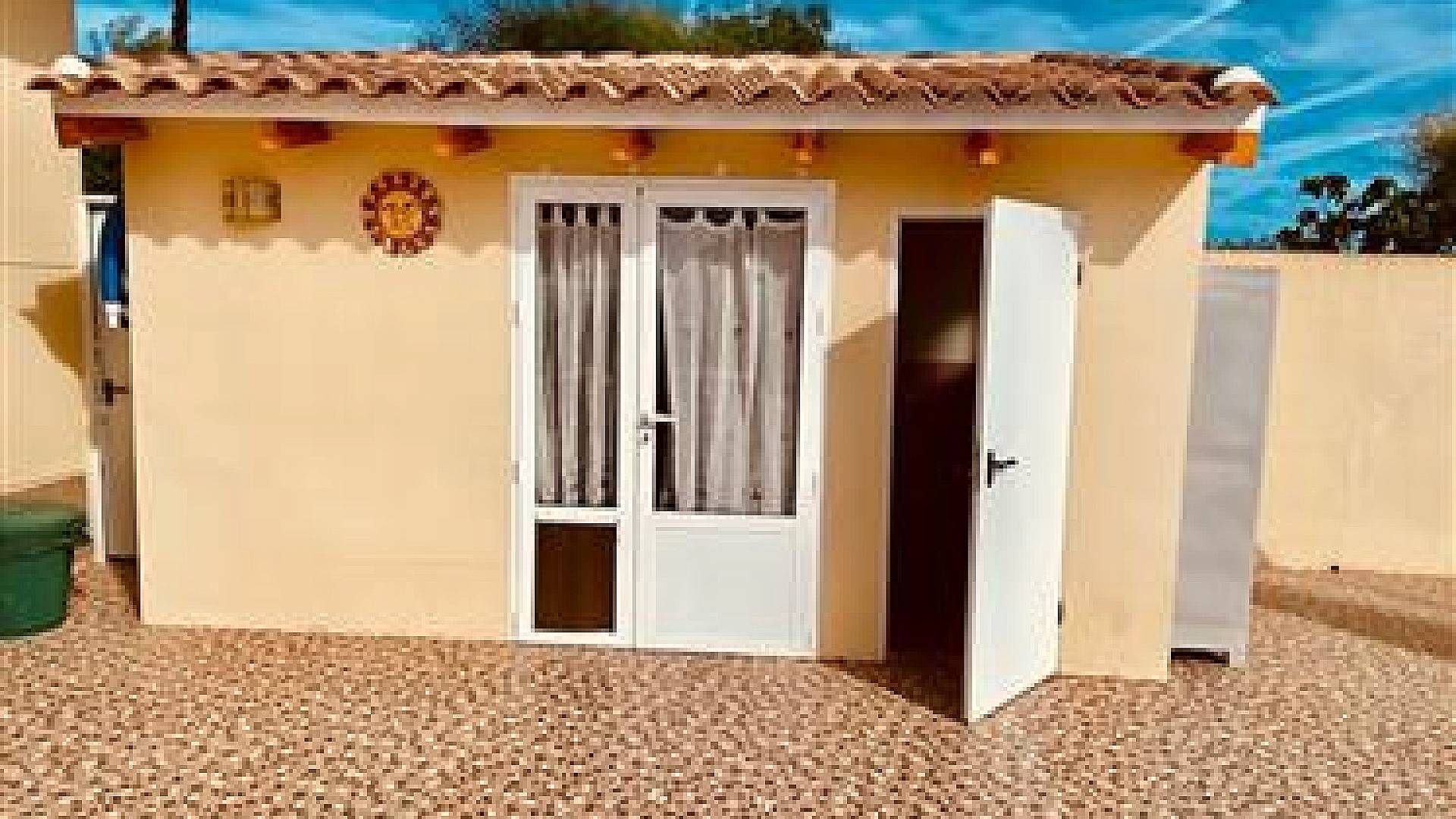 La villa dispose d'une véranda fermée pour les quelques jours frais du court hiver mercien, d'un beau salon/salle à manger climatisé, d'une cheminée, d'une cuisine séparée entièrement équipée, de 3 chambres et de 3 salles de bains (la chambre principale dispose de sa propre salle d'eau privative).