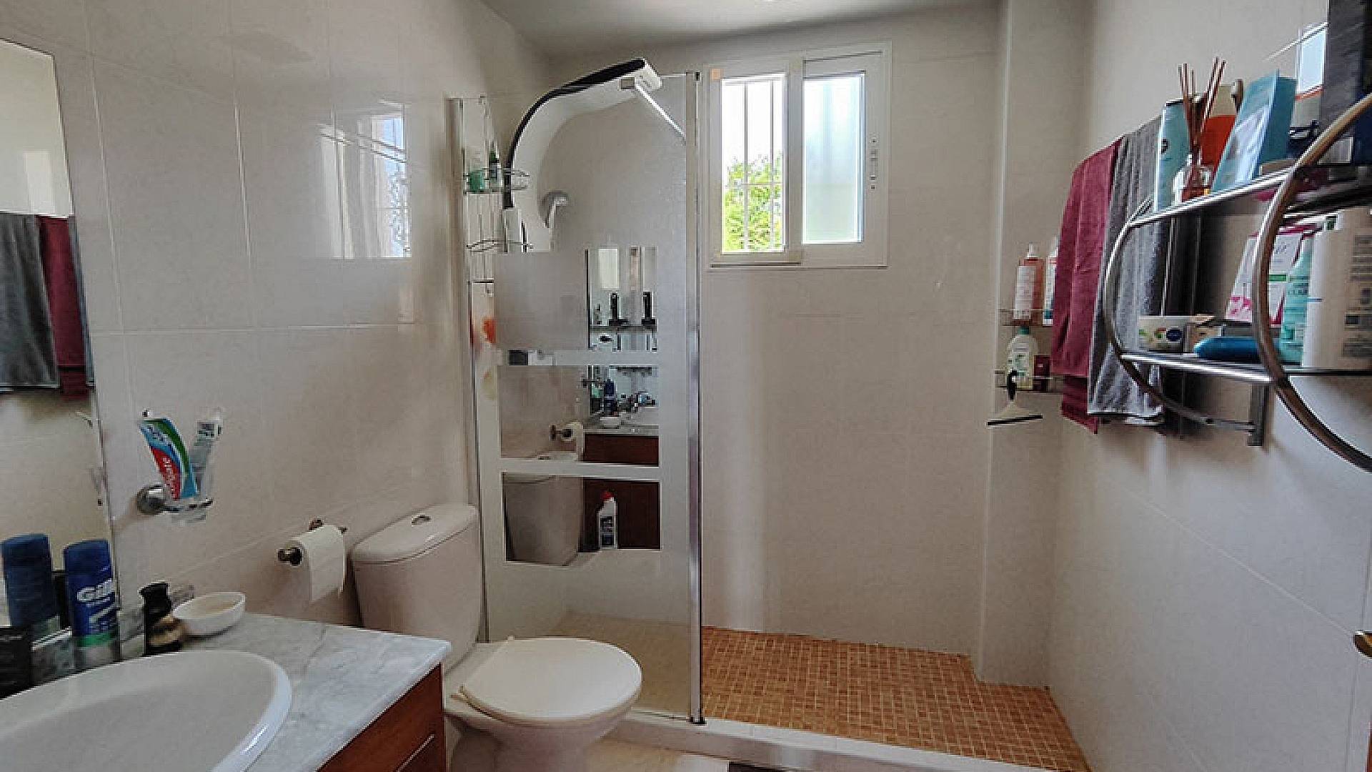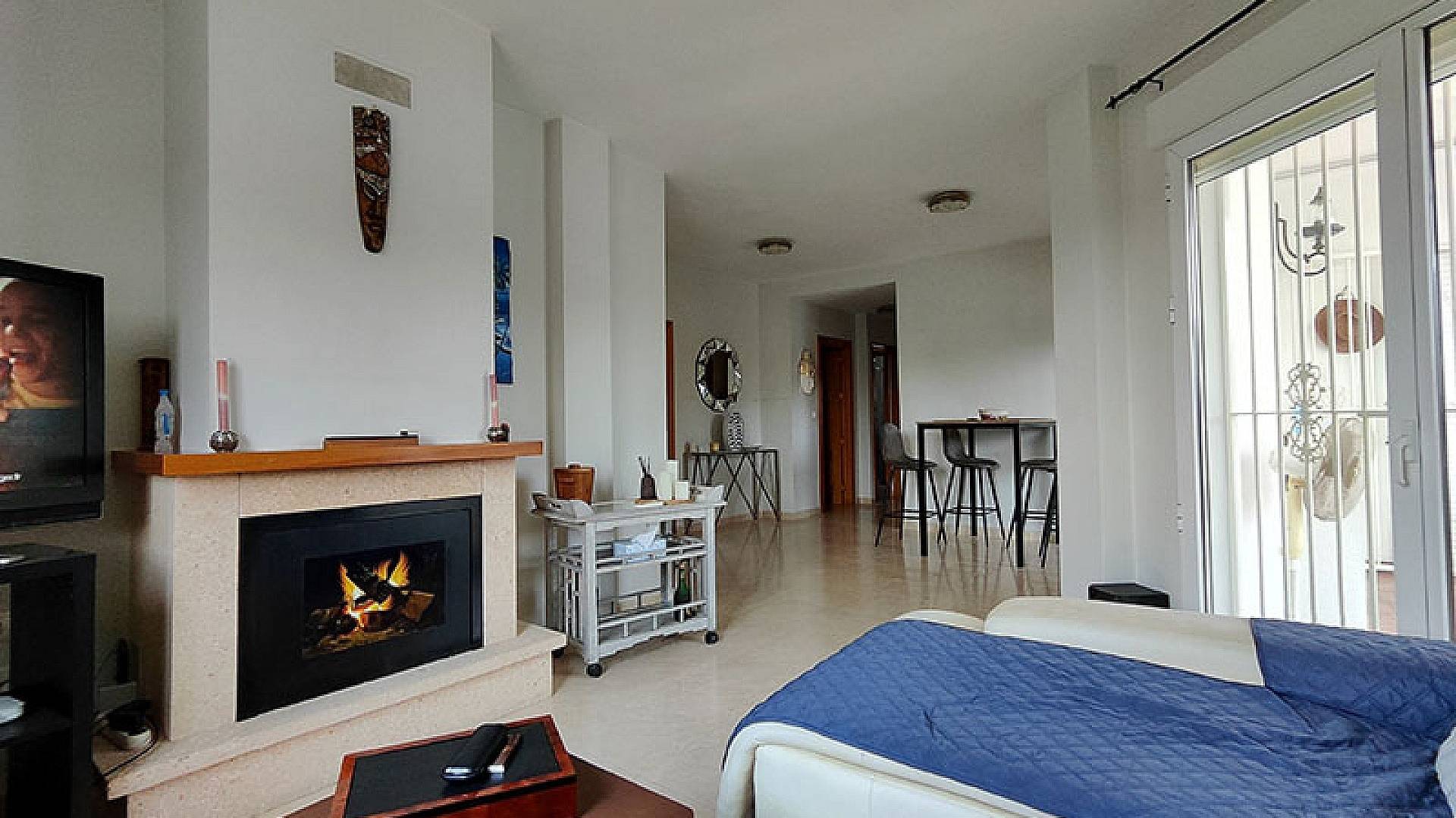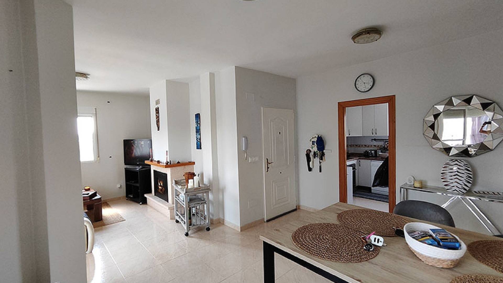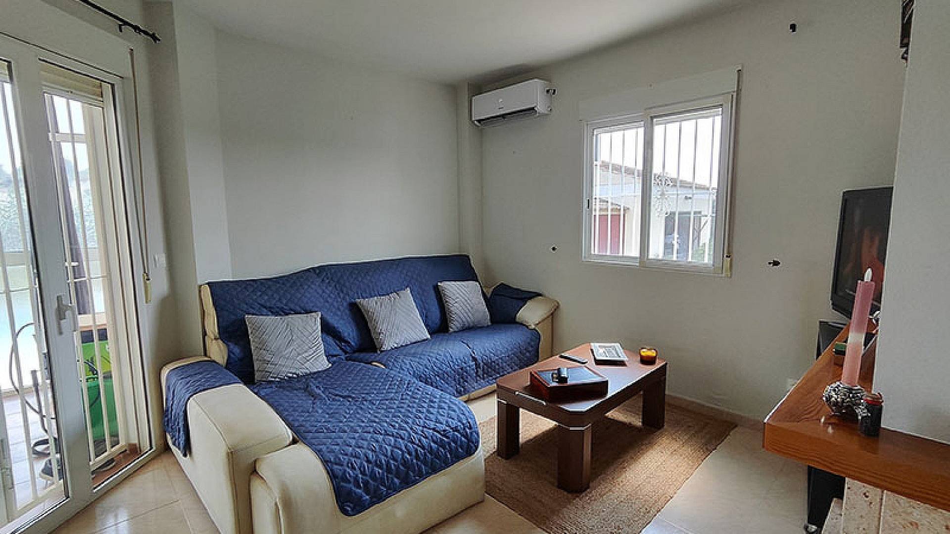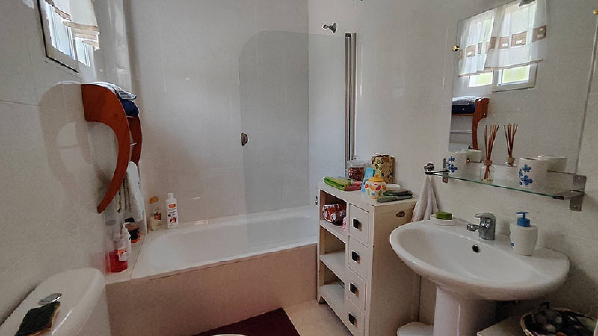 La villa dispose d'une véranda fermée pour les quelques jours frais du court hiver mercien, d'un beau salon/salle à manger climatisé, d'une cheminée, d'une cuisine séparée entièrement équipée, de 3 chambres et de 3 salles de bains (la chambre principale dispose de sa propre salle d'eau privative).