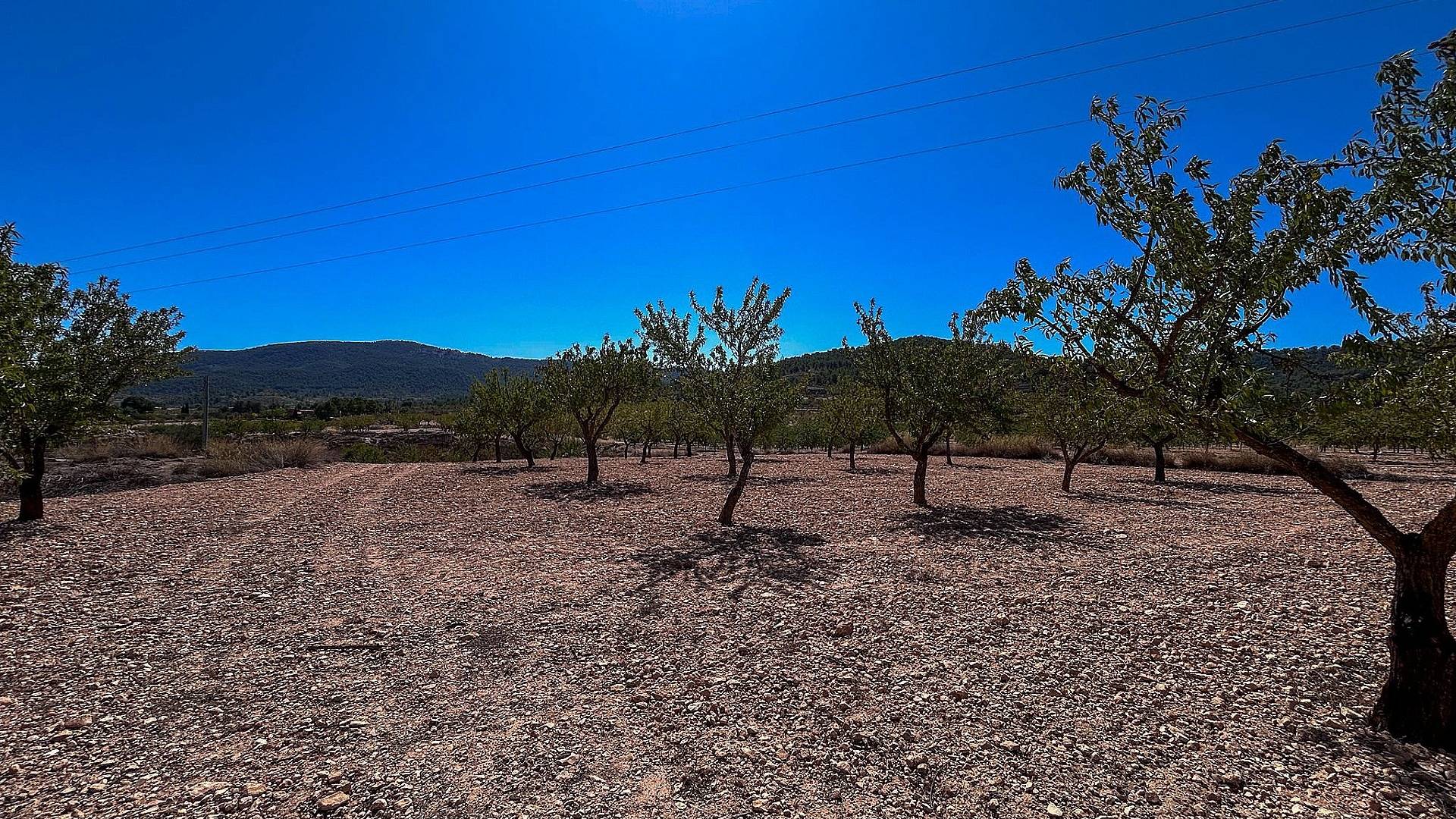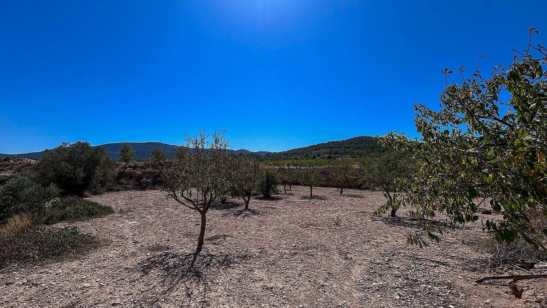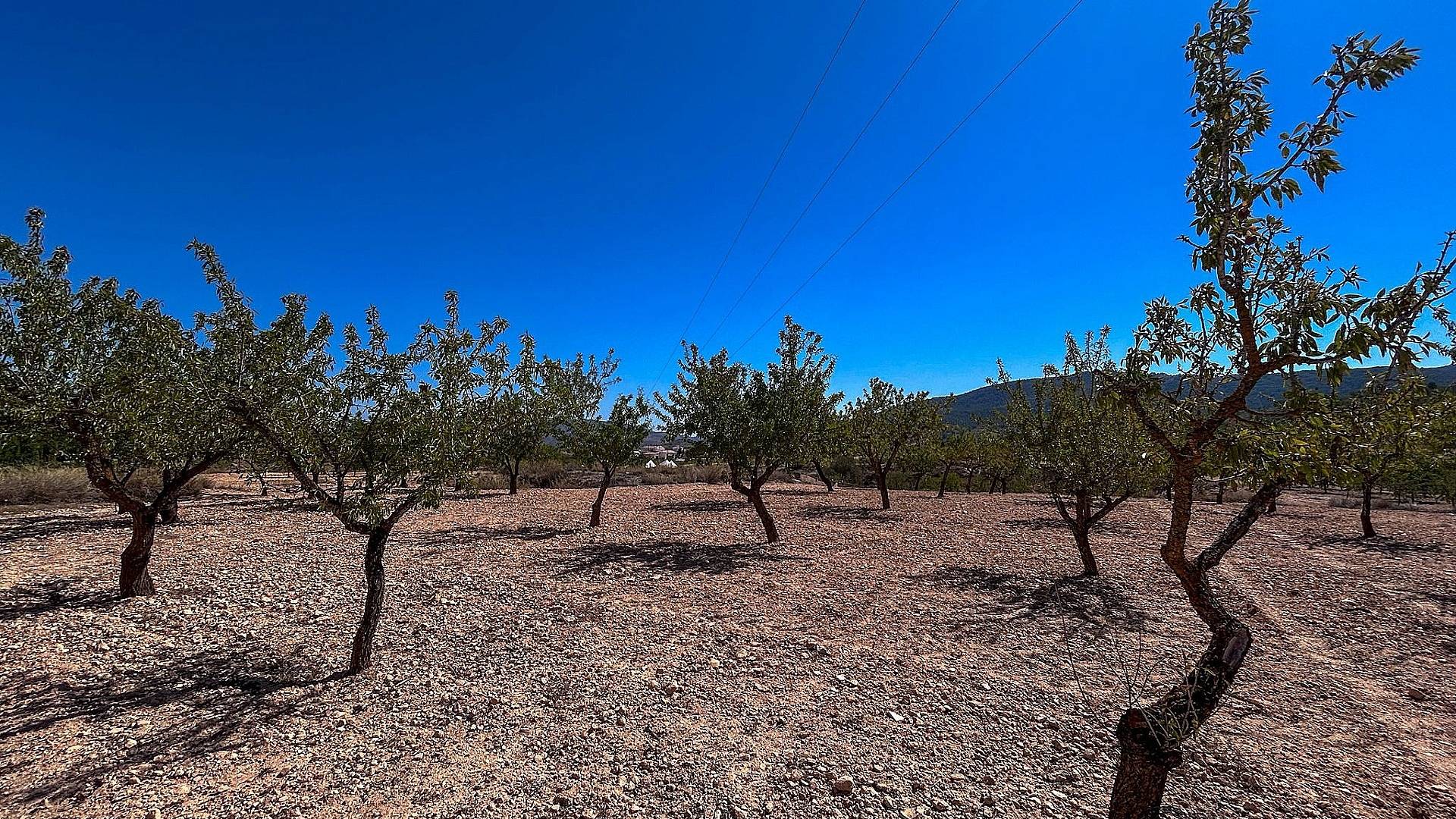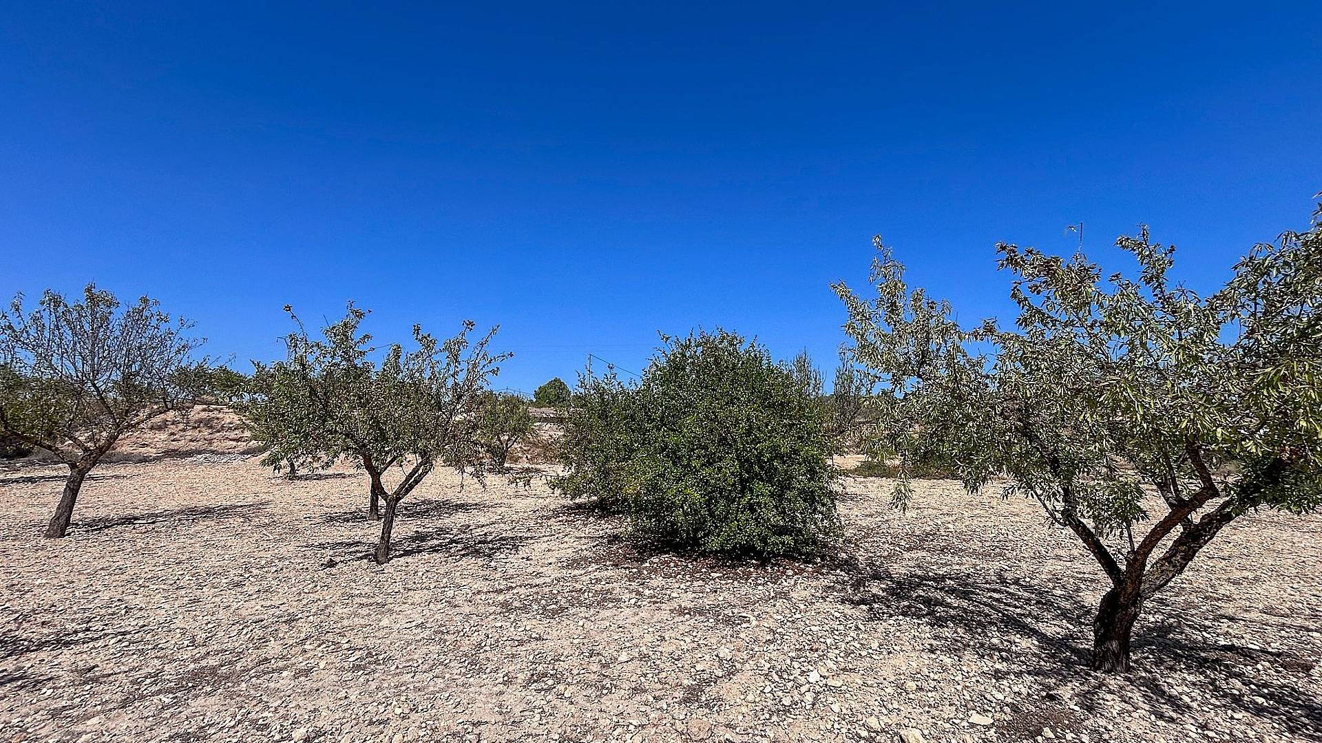 Le terrain mesure environ 5.000 m², non clôturé, et est réparti sur trois niveaux différents. Il abrite environ 100 amandiers et plusieurs oliviers, idéal pour les amateurs de nature ou pour développer un petit projet agricole. Une terrasse se trouve à côté de la maison, les deux autres étant situées plus loin.