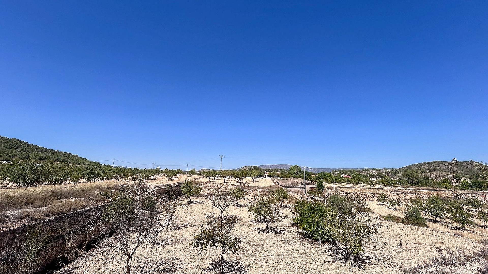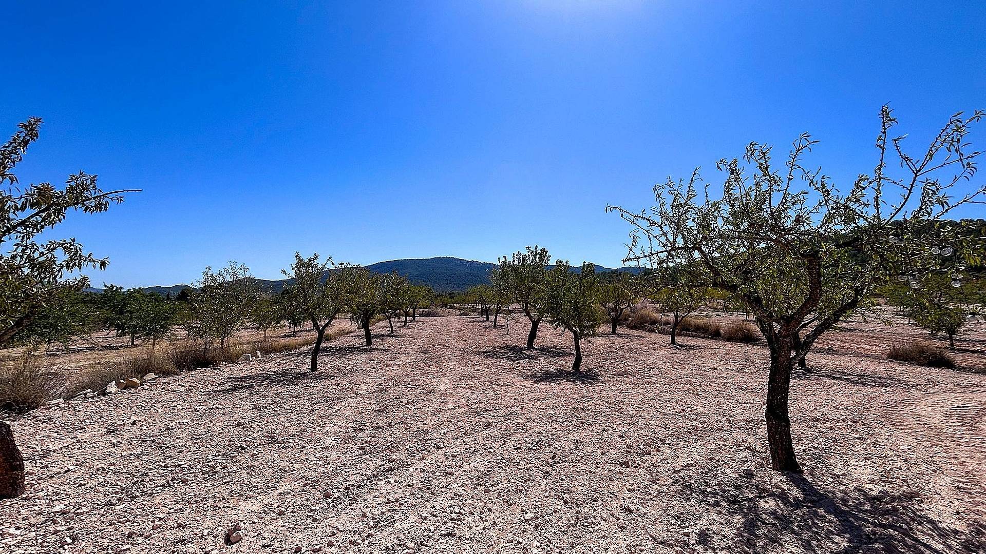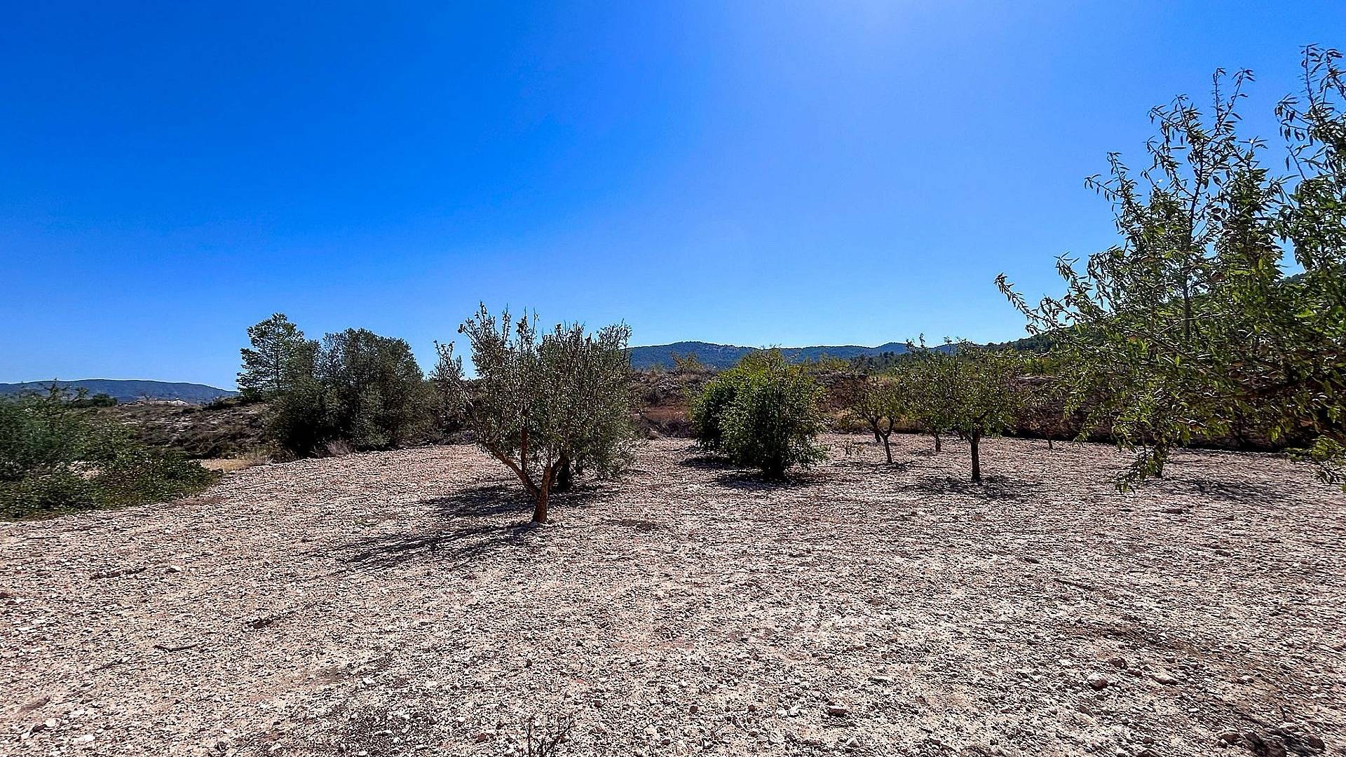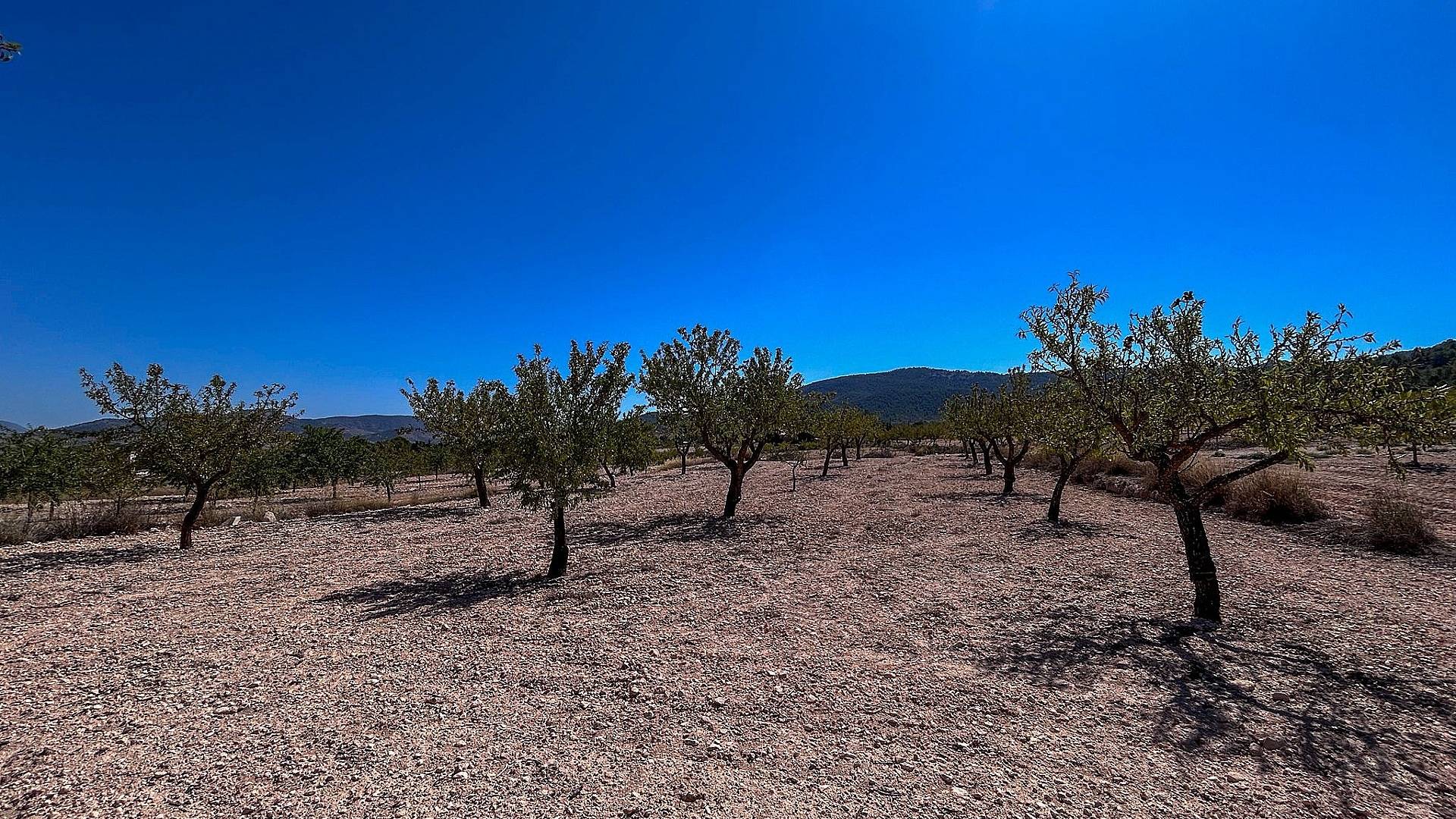 Le terrain mesure environ 5.000 m², non clôturé, et est réparti sur trois niveaux différents. Il abrite environ 100 amandiers et plusieurs oliviers, idéal pour les amateurs de nature ou pour développer un petit projet agricole. Une terrasse se trouve à côté de la maison, les deux autres étant situées plus loin.