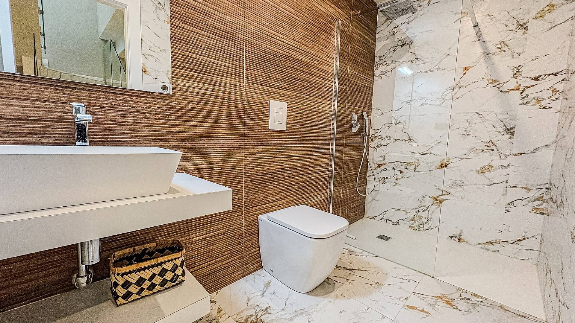 Sous-sol : Grand espace multifonctionnel avec deux chambres et une salle de bains luxueuse. Cet espace peut être utilisé comme salon supplémentaire, home cinéma ou appartement d’invités, offrant une totale liberté d’aménagement.