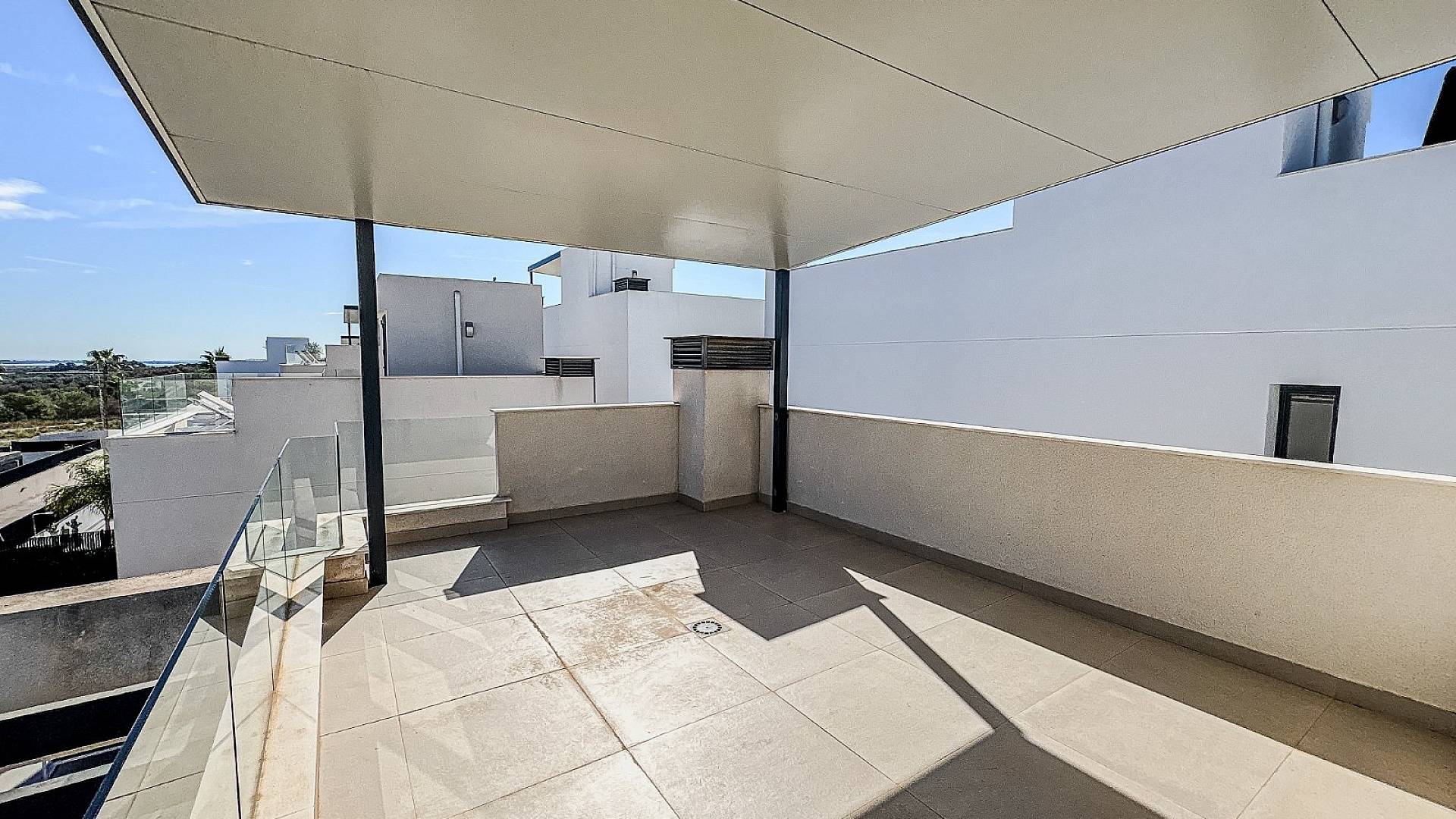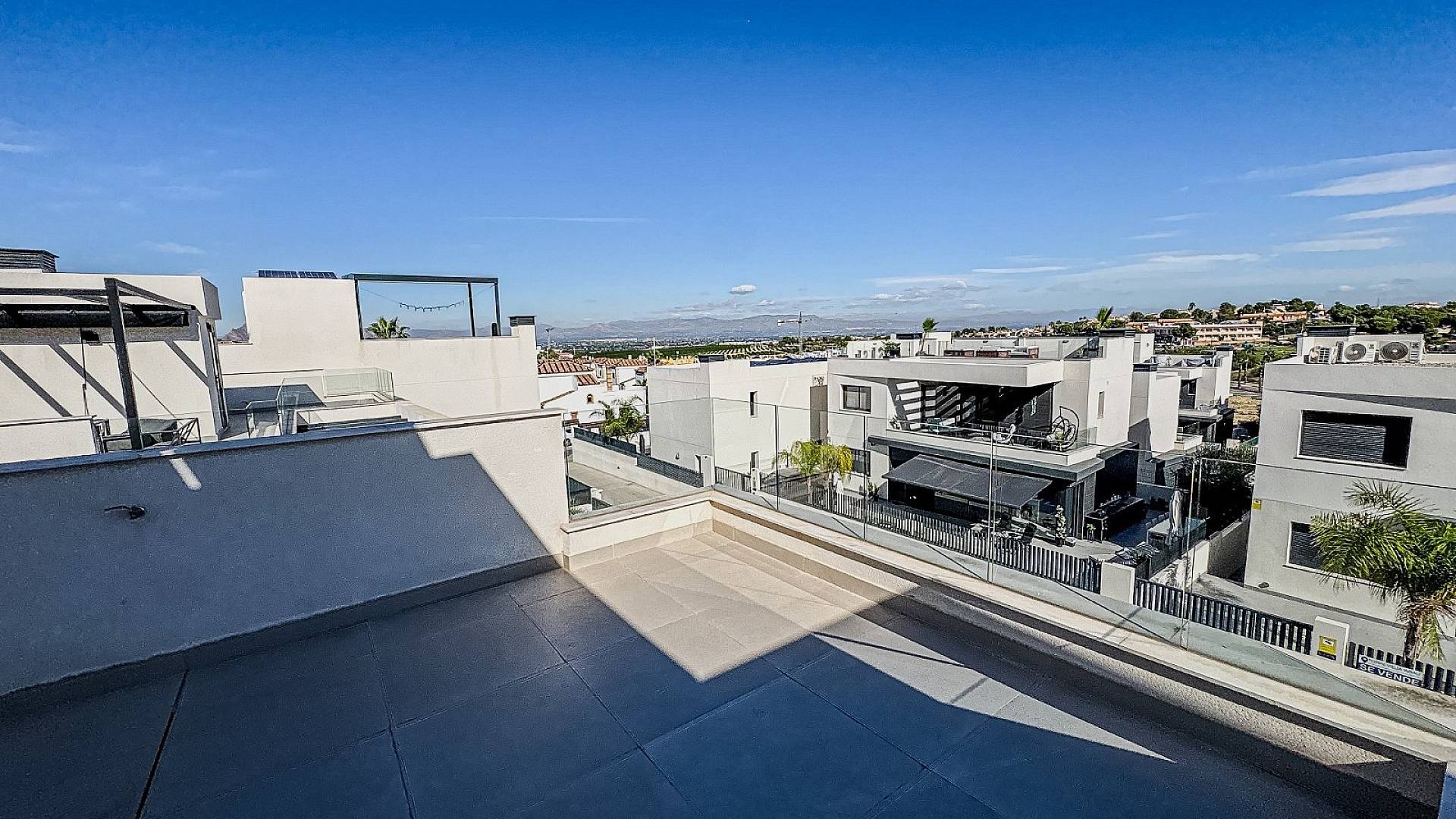 Le solarium sur le toit dispose d’une pergola ombragée, parfaite pour les journées les plus chaudes. De là, vous profiterez de vues panoramiques sur la côte et les montagnes environnantes. La villa possède une piscine privée chauffée (idéale été comme hiver) de 7x3 m avec éclairage coloré et couverture électrique. Elle est plus grande que les piscines standard de 6x3 m, offrant ainsi un espace supplémentaire pour se détendre.