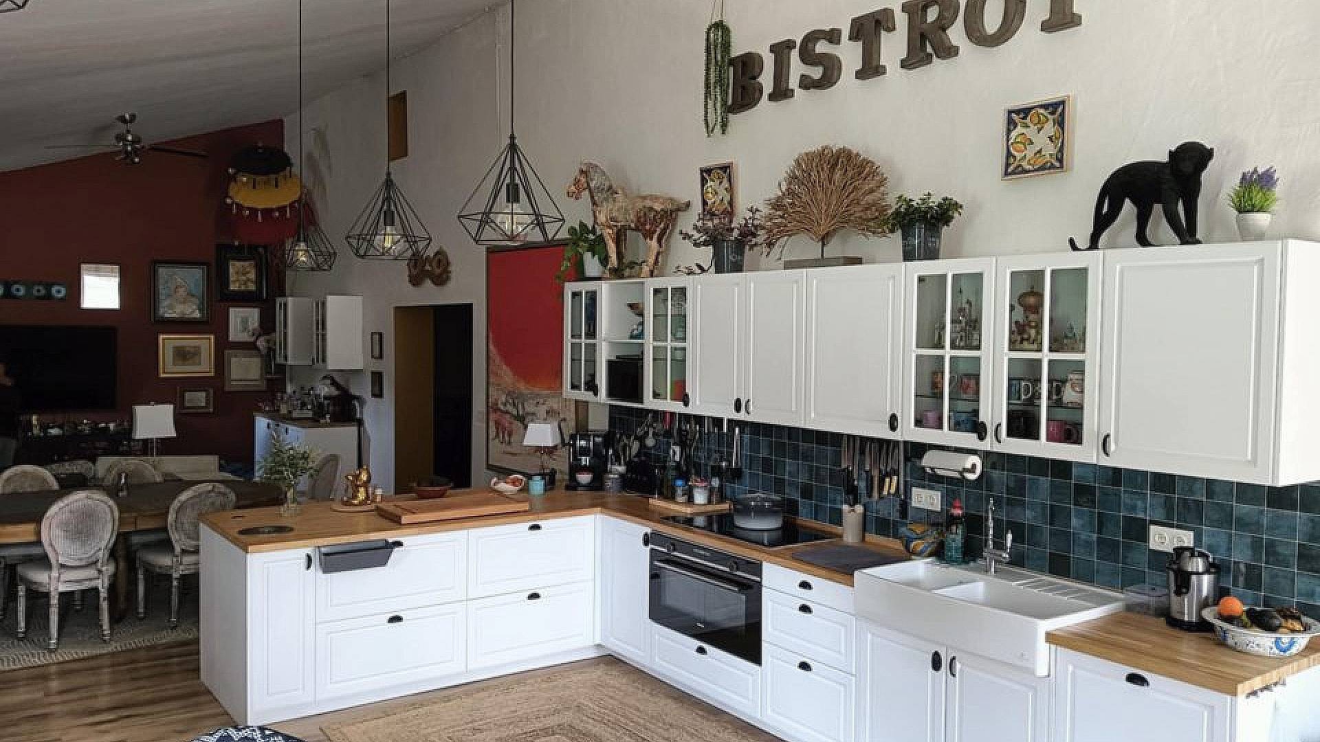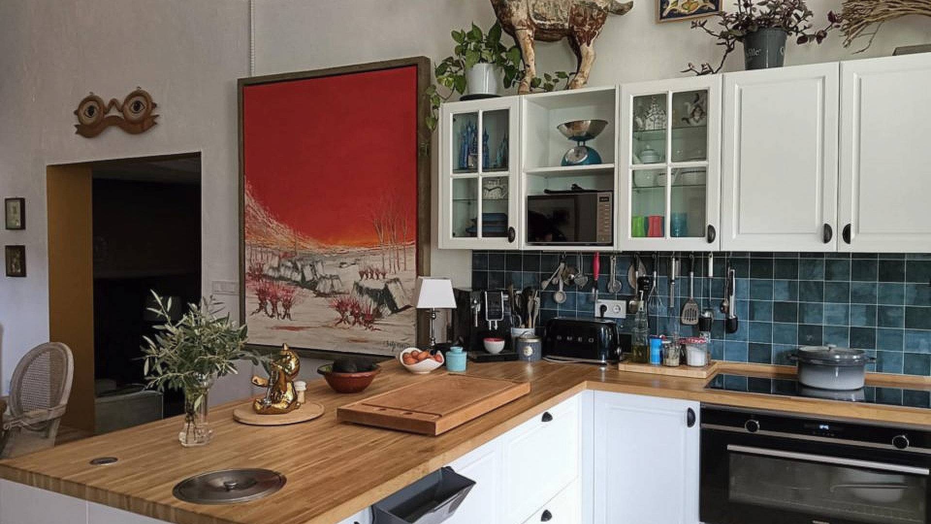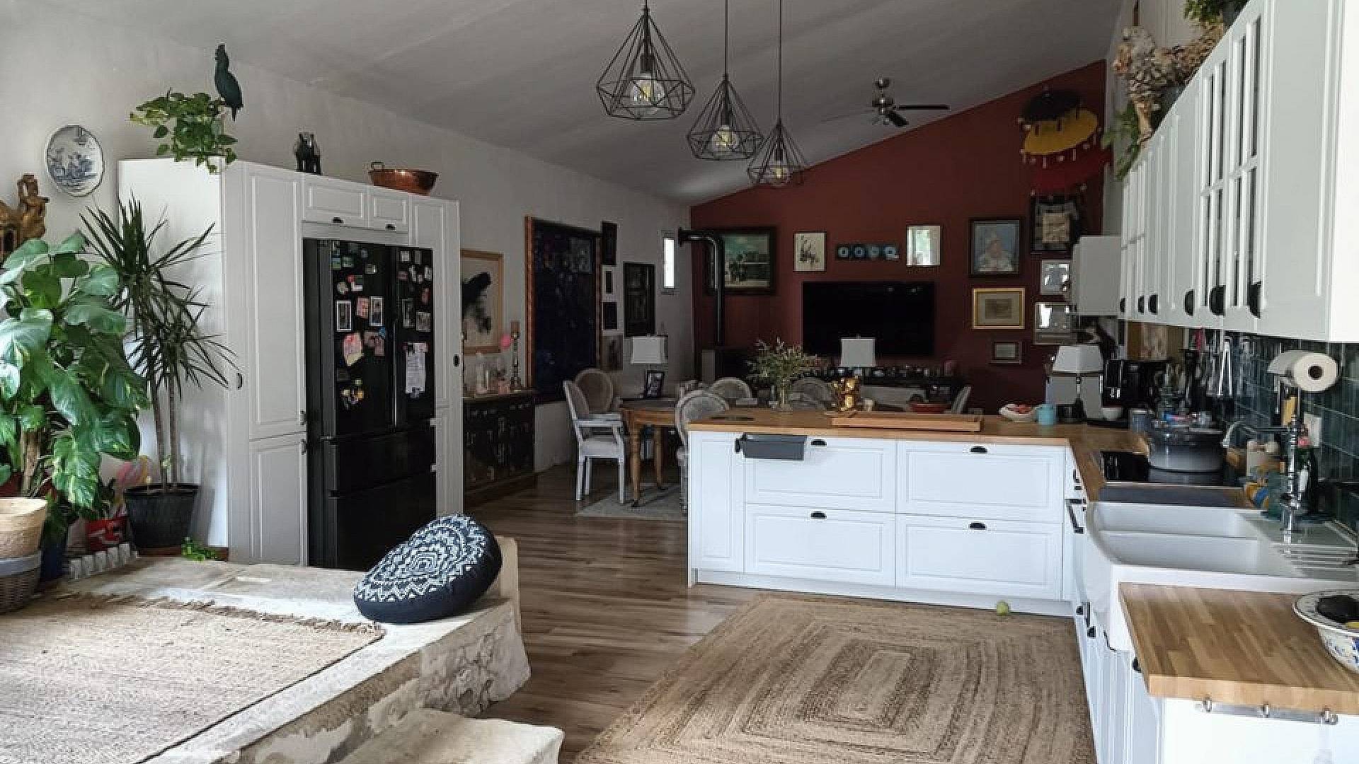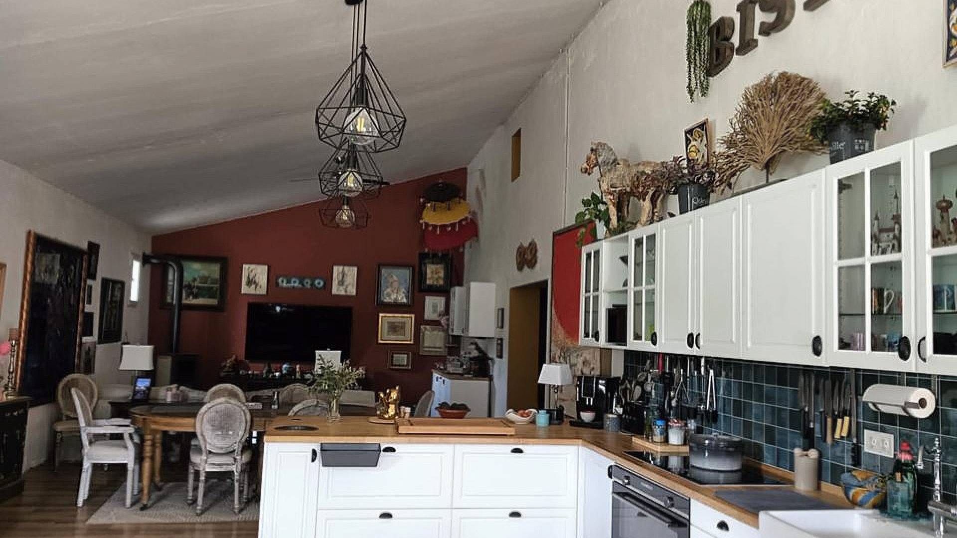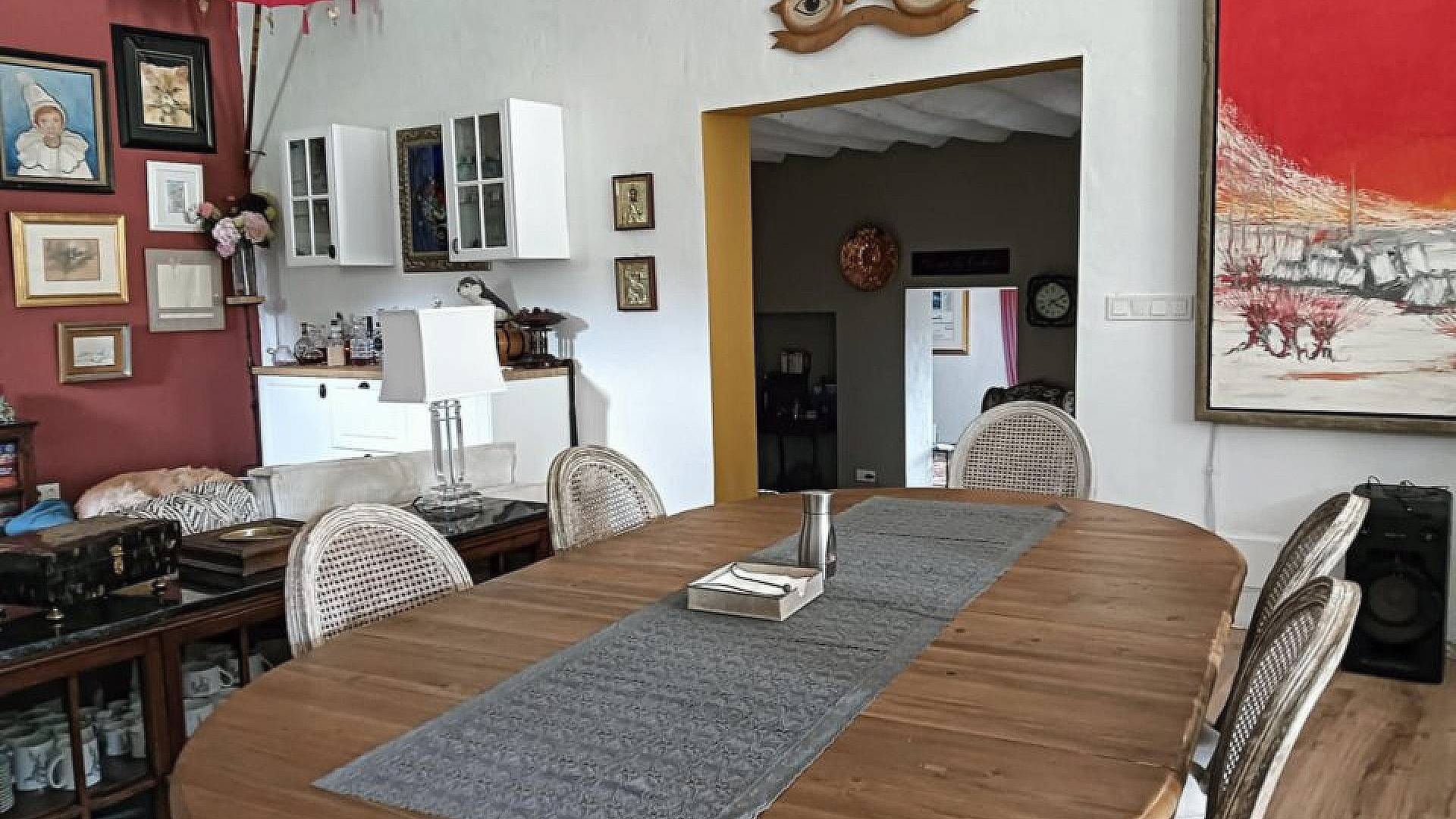 Le bureau donne accès à l'ancienne bodega, transformée en un grand séjour/salle à manger/cuisine ouverte (environ 70 m²).