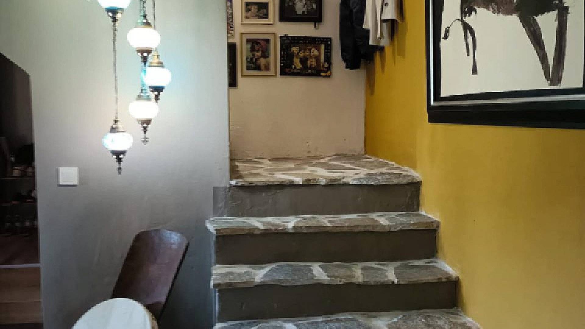 Un bel escalier en pierre locale mène au premier étage, où se trouvent deux autres grandes chambres, une deuxième salle d'eau avec WC et un grenier.