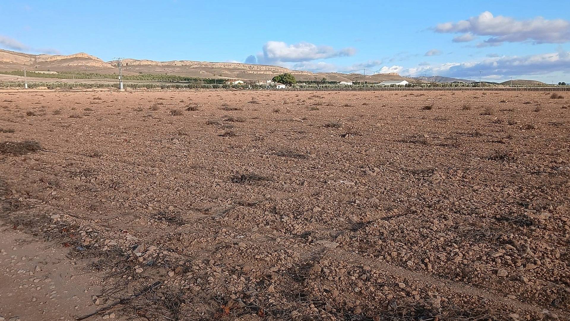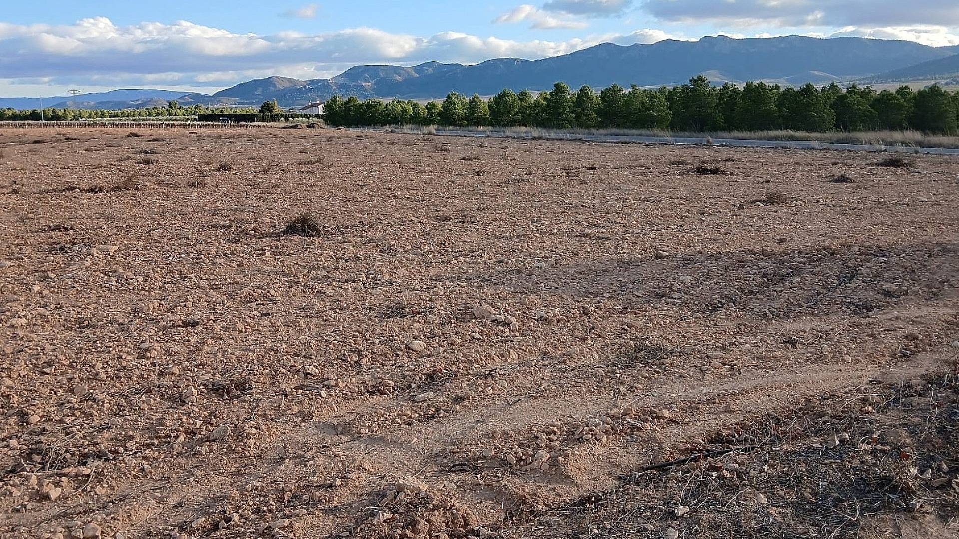 Beau terrain plat constructible de 26 430 m² avec raccordement à l'eau d'irrigation et possibilité de raccordement au réseau électrique, situé à 9,5 km du centre de Yecla.