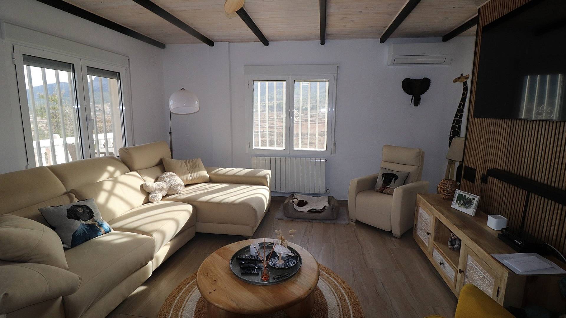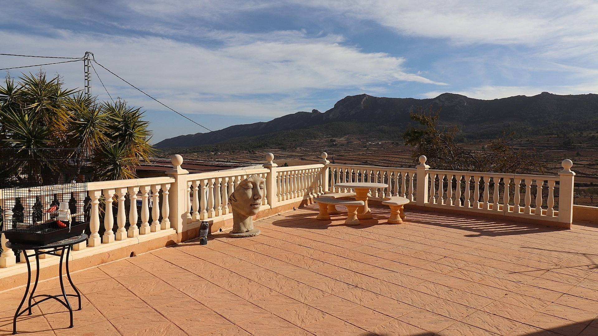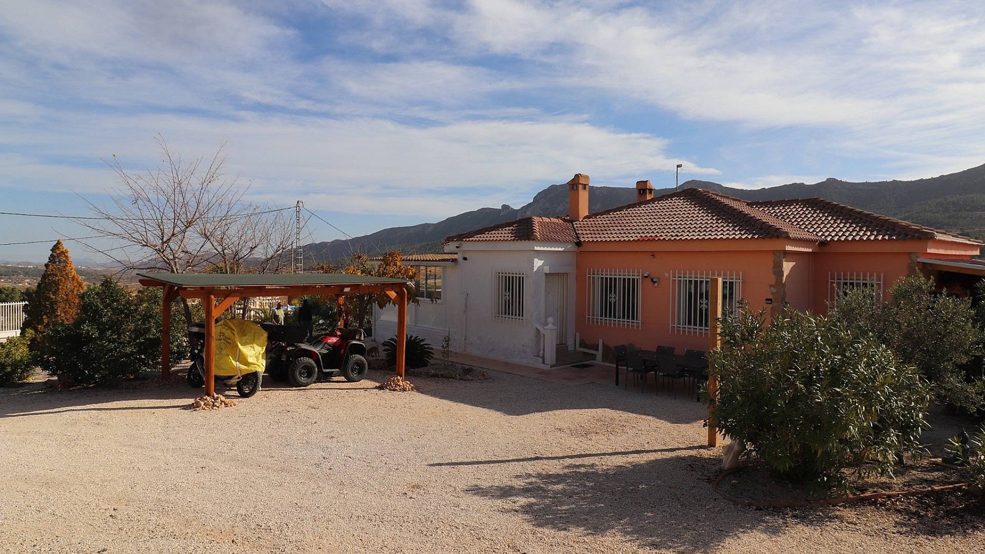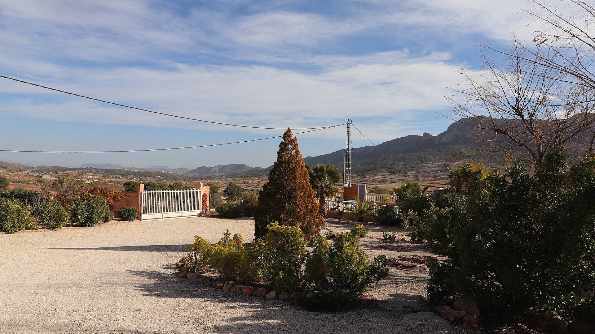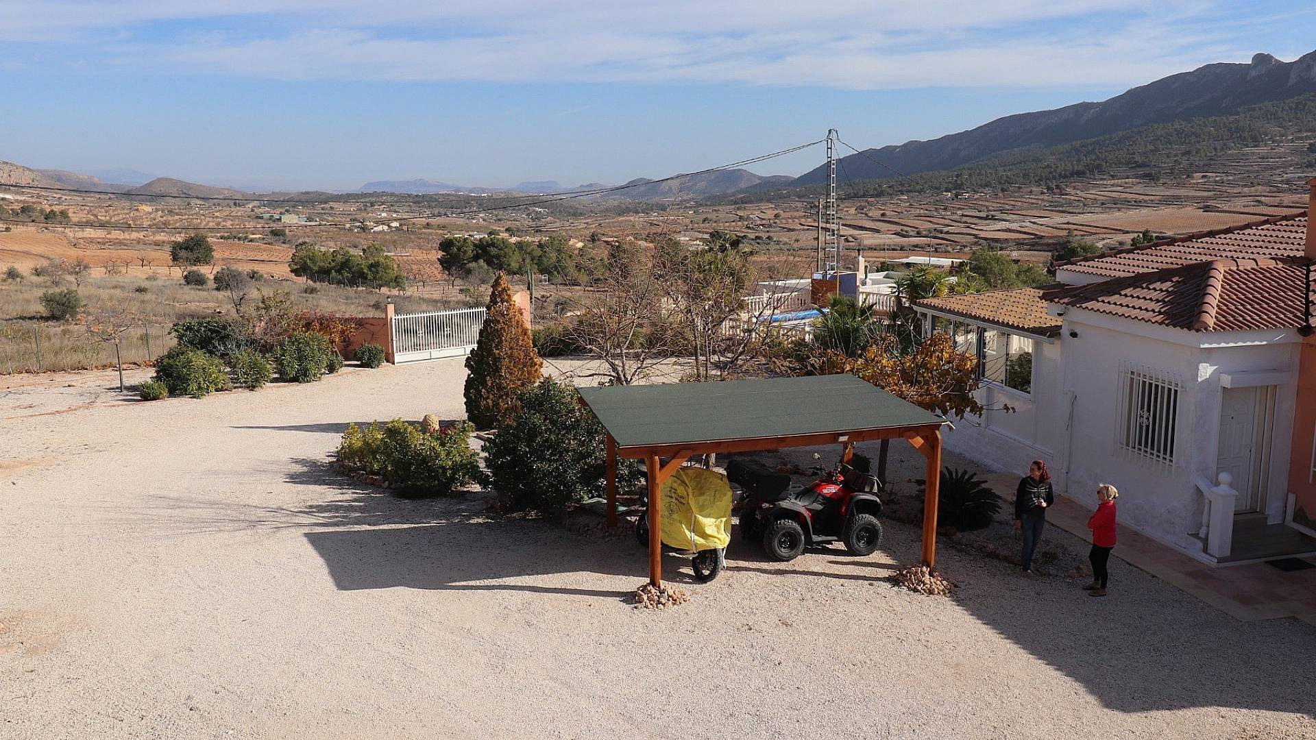 Une autre construction de 28 m² comprend un abri voiture et une buanderie/remise. Cette propriété est raccordée au réseau électrique et dispose également de dix panneaux photovoltaïques et d'un onduleur de 5 kW. Une réserve d'eau de 25 000 litres avec une pompe neuve assure l'approvisionnement en eau de la maison. L'aéroport d'Alicante et la côte sont à environ 45 minutes.