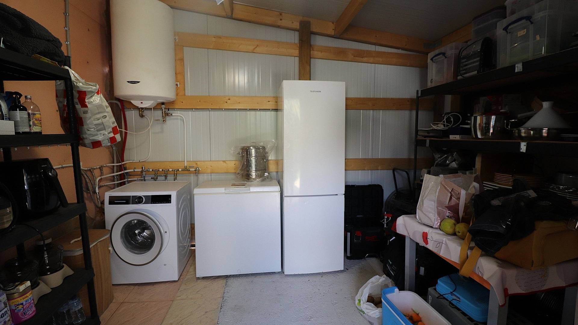 La villa principale, rénovée avec goût et des matériaux de qualité, se compose d'une spacieuse véranda (30 m²), d'un salon, d'une salle à manger, d'une cuisine, d'un cellier, de trois chambres et de deux salles de bains, dont une attenante. Elle bénéficie de la climatisation, du chauffage central au gaz et d'une connexion internet. Sur le côté de la propriété se trouve un chalet avec une chambre supplémentaire (9,5 m²) et des toilettes, ainsi qu'un abri de jardin (10 m²).