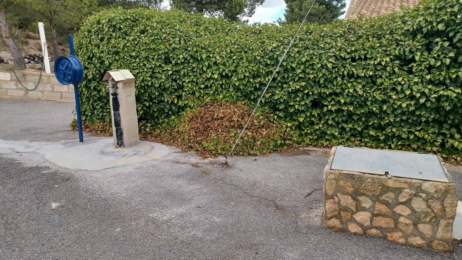 L'eau courante provient d'un réservoir et une grande cuve de stockage est installée sous l'allée. L'électricité est fournie par Iberdrola et partagée entre les dix maisons du lotissement. Un raccordement plus important ne pose donc aucun problème en cas de besoin.