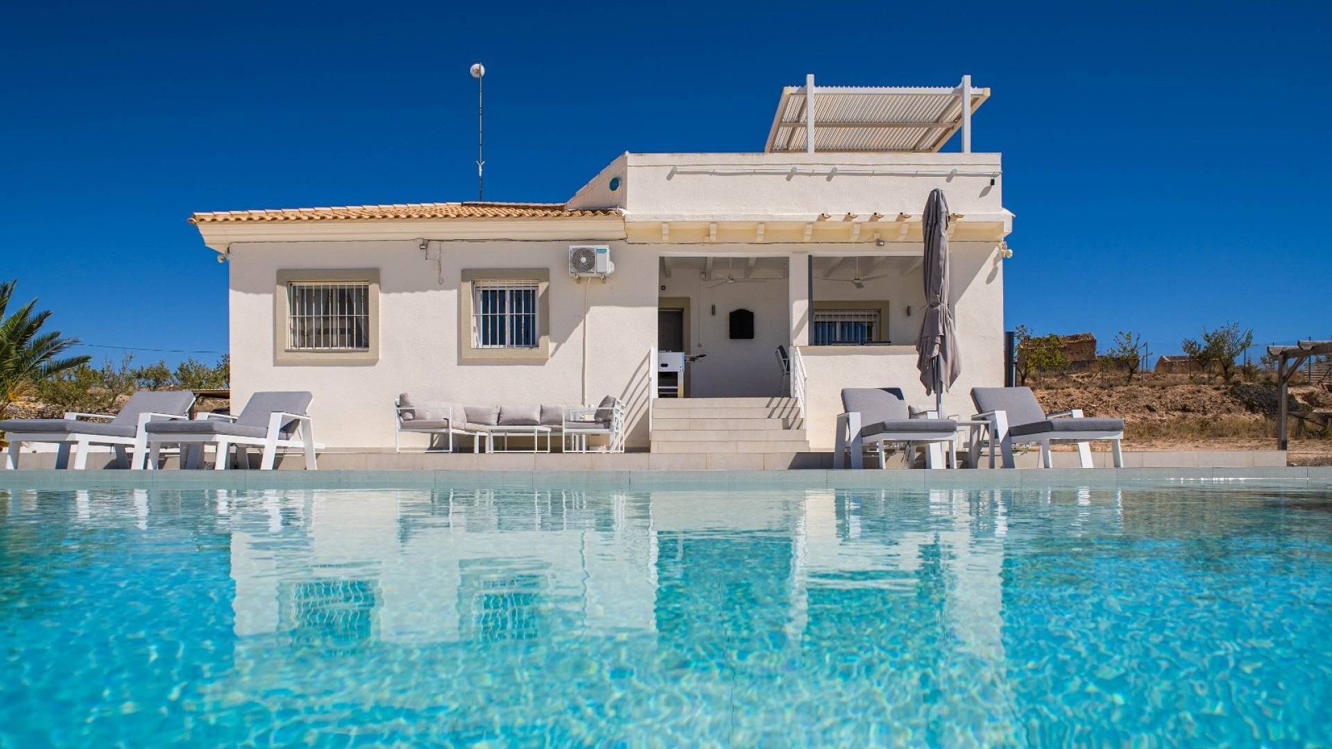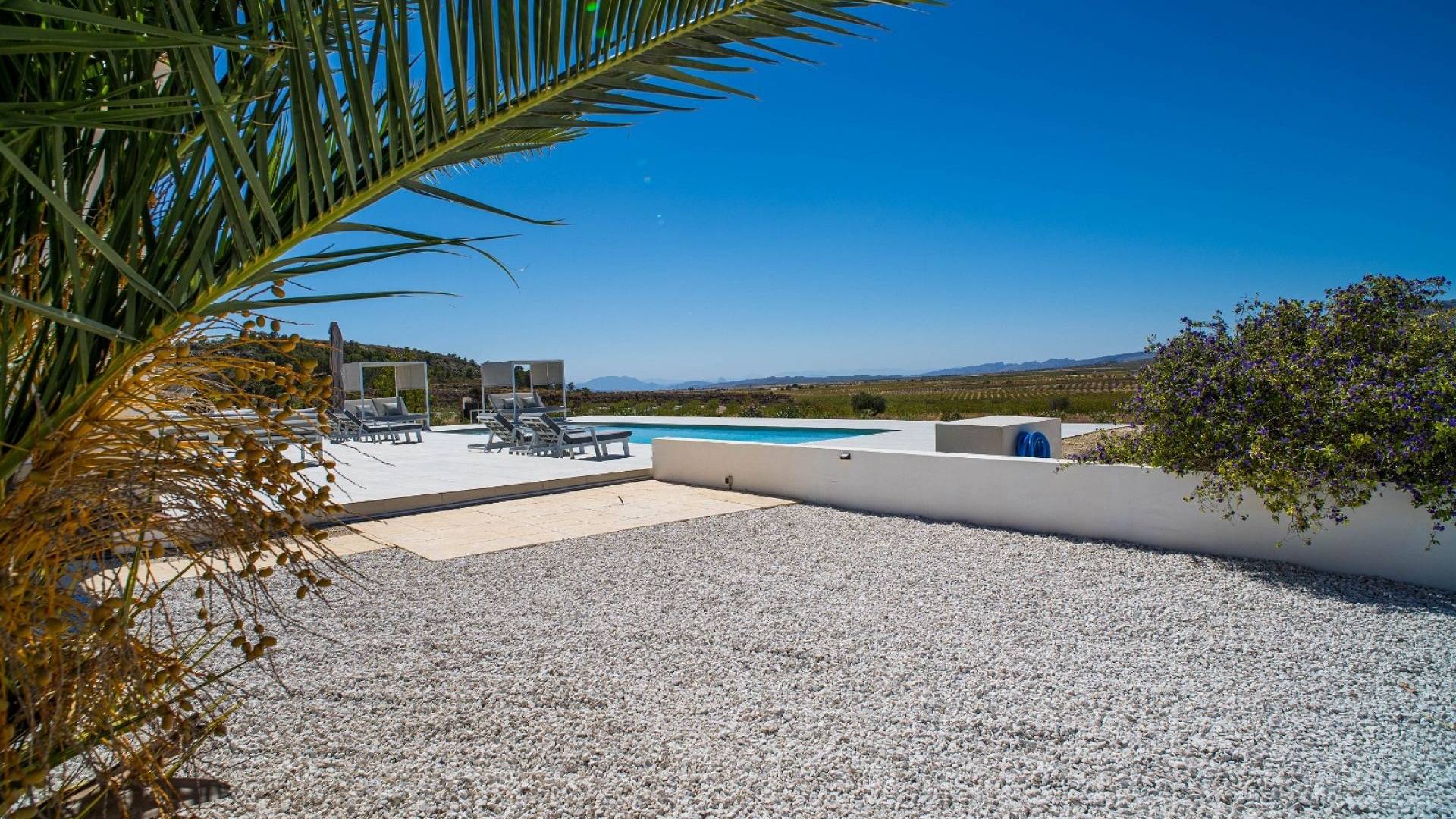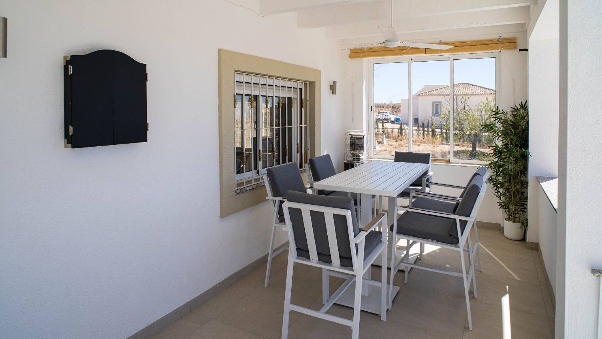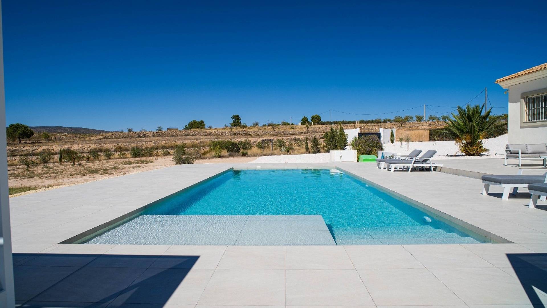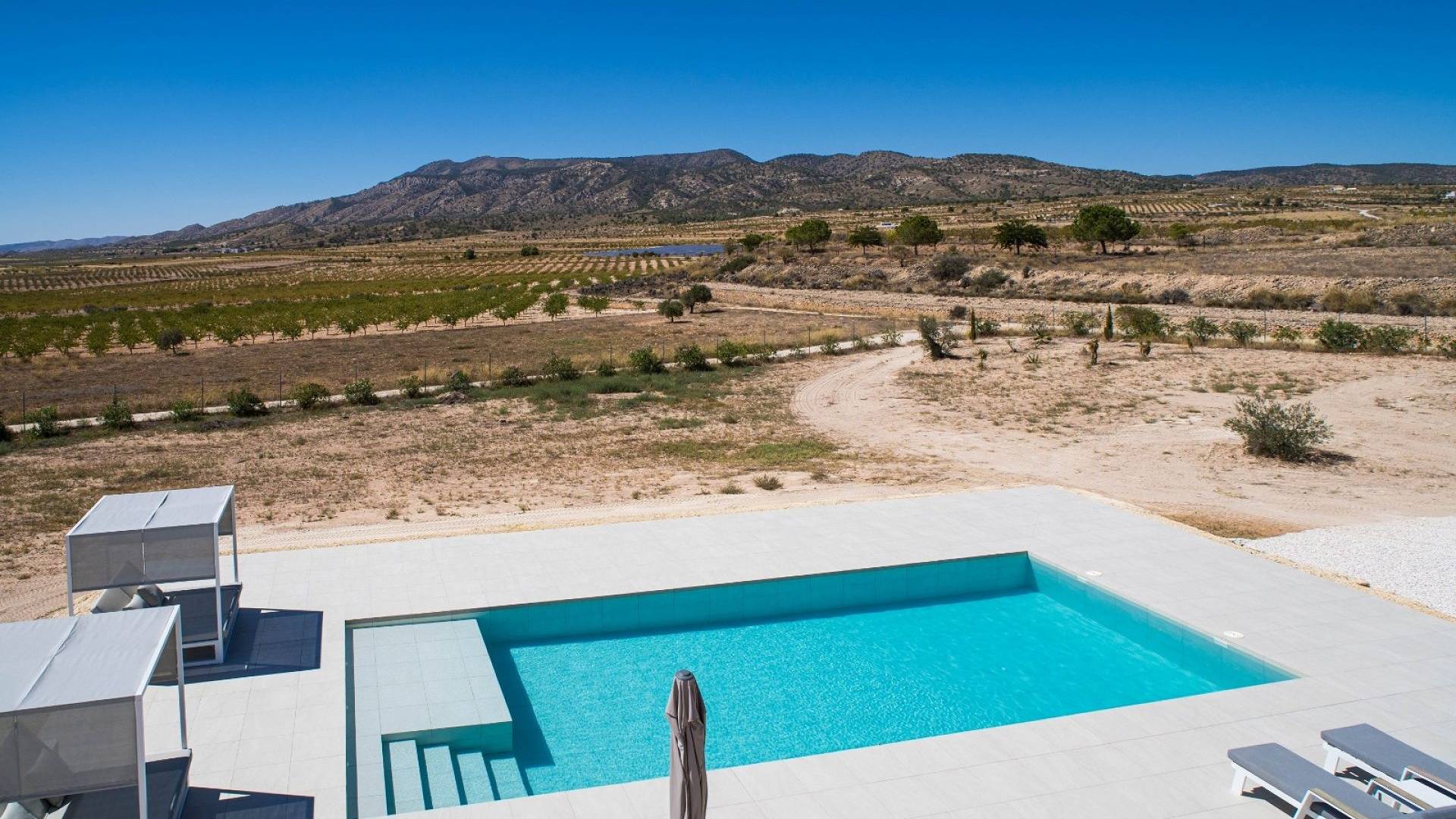 À seulement 5 kilomètres de la ville animée de Pinoso, cette villa moderne est idéale pour ceux qui recherchent calme et confort, tout en restant proches des commodités. La propriété se situe sur un terrain de 8 283 m² planté d'amandiers et d'arbres fruitiers et offre une vue imprenable sur la campagne environnante et les collines de la Sierra del Carche.
