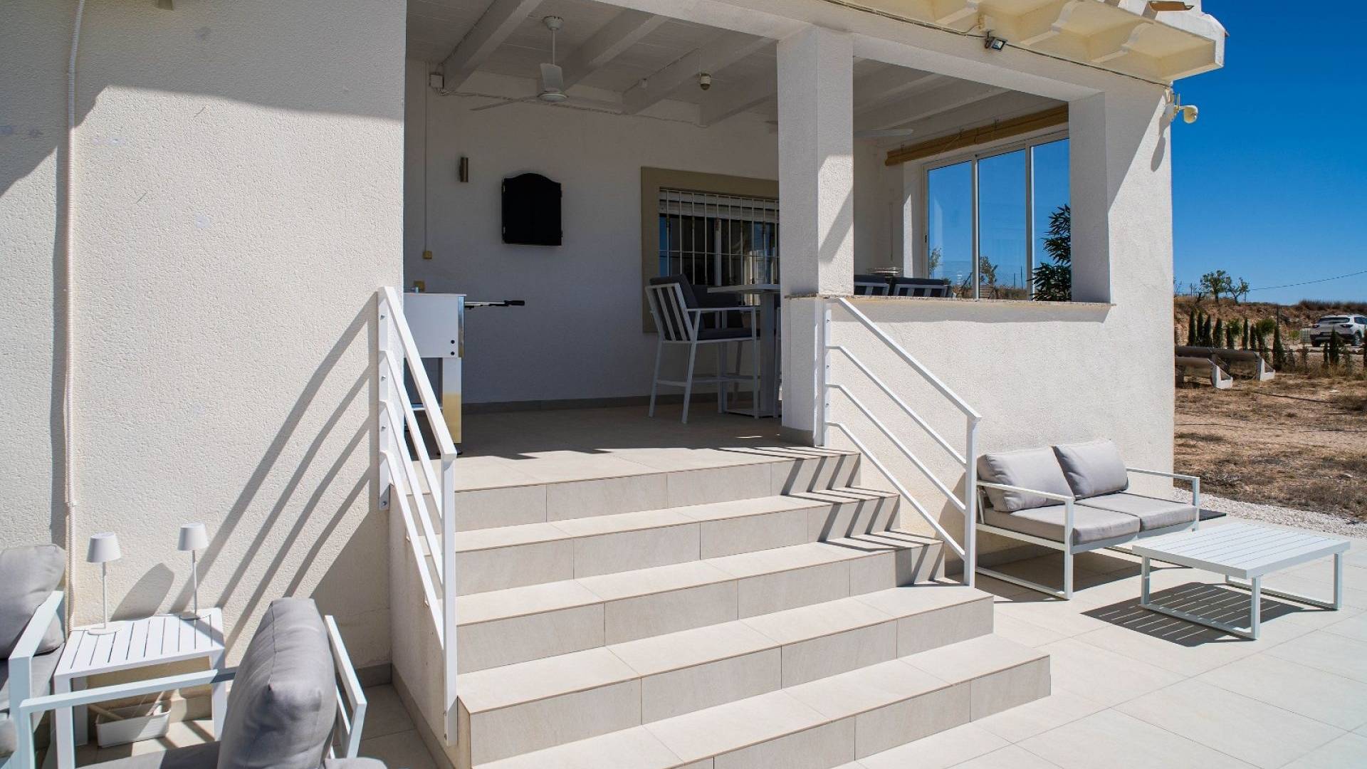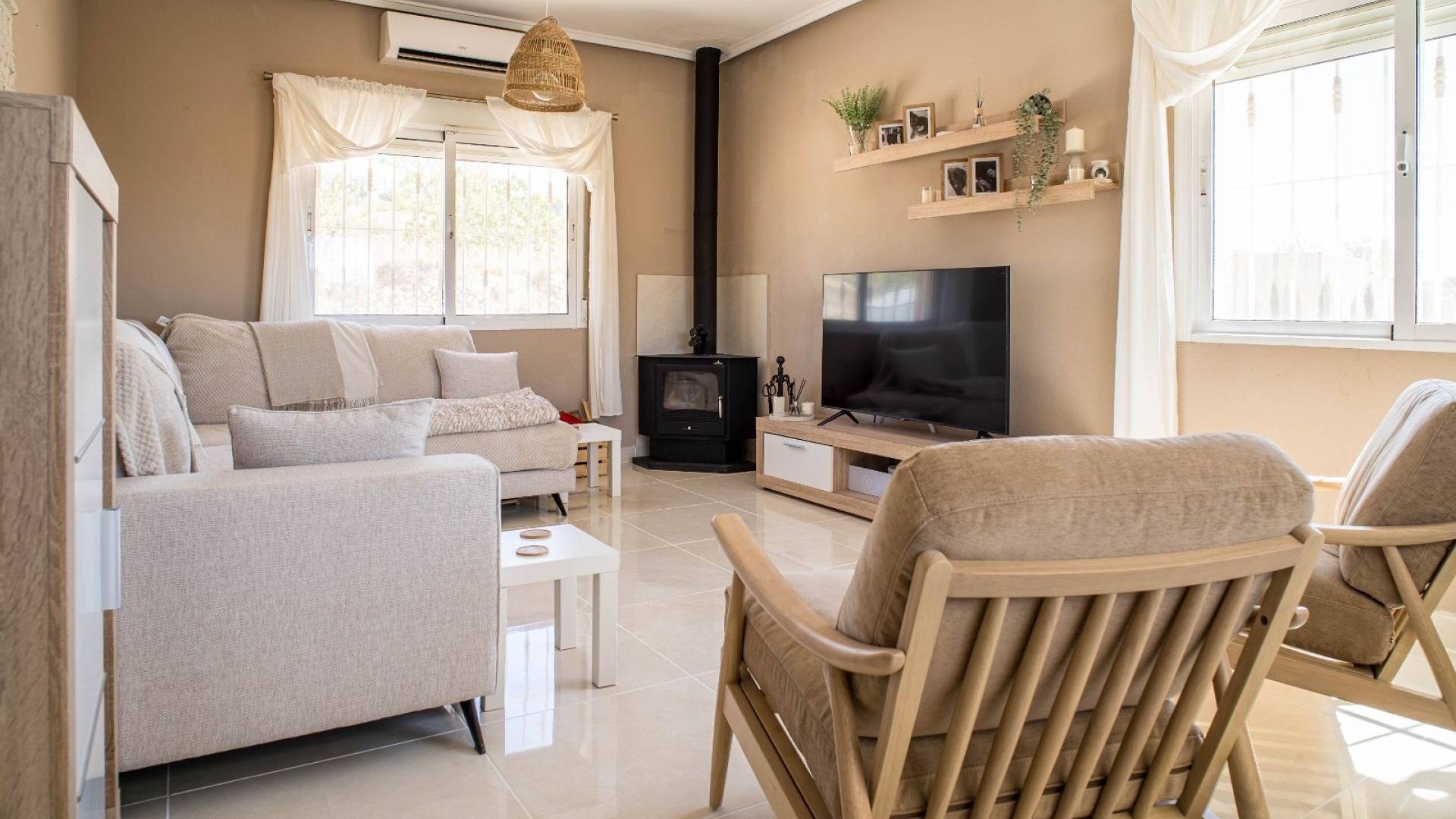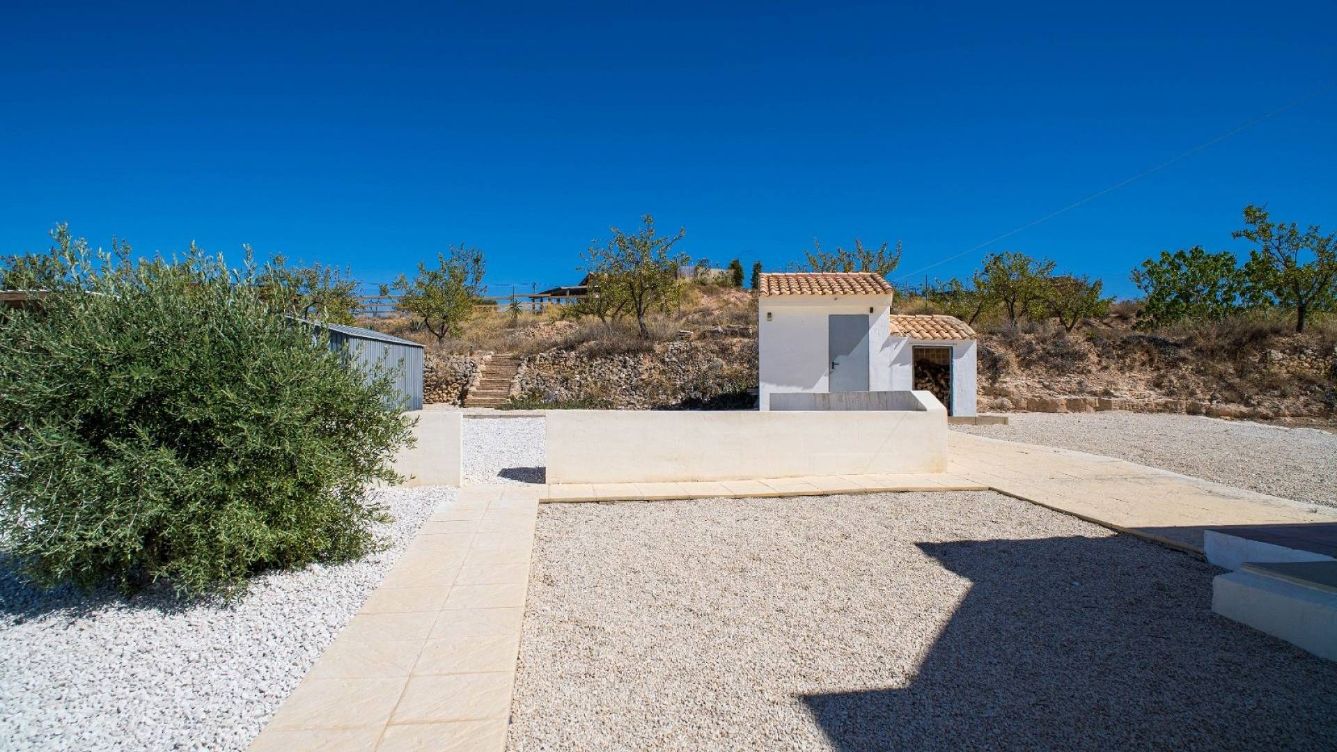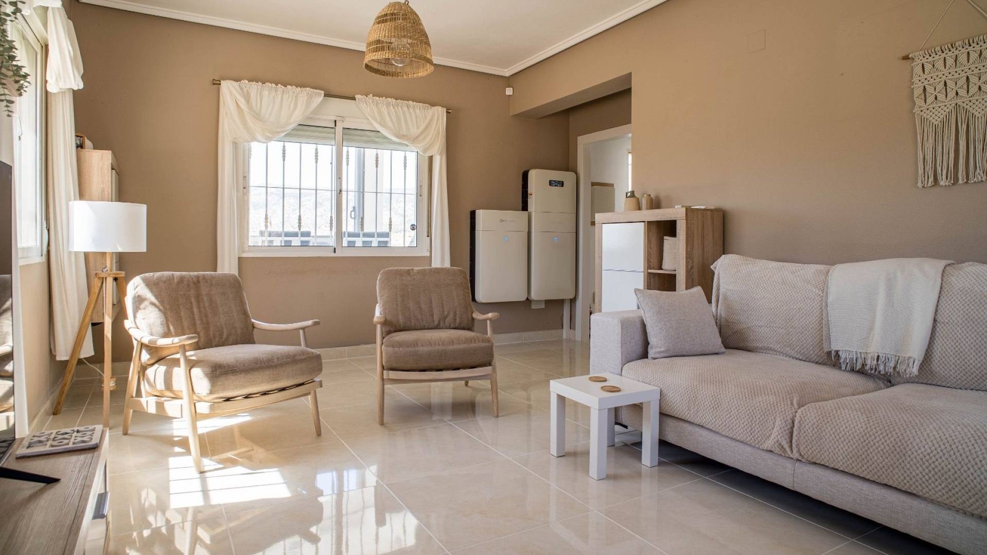 La maison est parfaitement équipée : un raccordement au réseau d'eau de Pinoso, 16 panneaux solaires avec un onduleur de 5 kW et une batterie de 20 kWh garantissent une consommation énergétique optimale. Elle dispose d'une chaudière électrique et d'une chaudière à gaz, toutes deux installées en 2024. Le terrain comprend également un portail électrique avec possibilité de raccordement à l'eau, un abri pour deux voitures, un abri de jardin, un cabanon en briques et un espace de rangement supplémentaire pour le poêle à bois, entre autres. Quatre climatiseurs assurent un confort optimal en toute saison. La maison est proposée non meublée, mais cela est négociable.