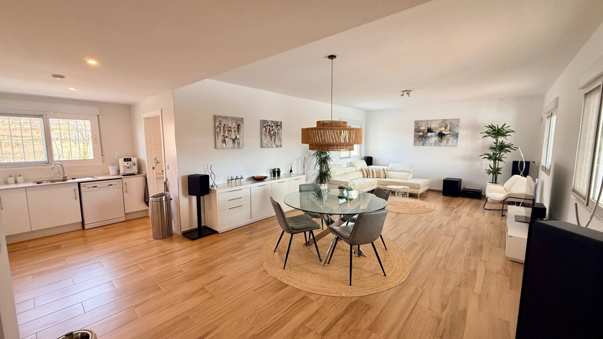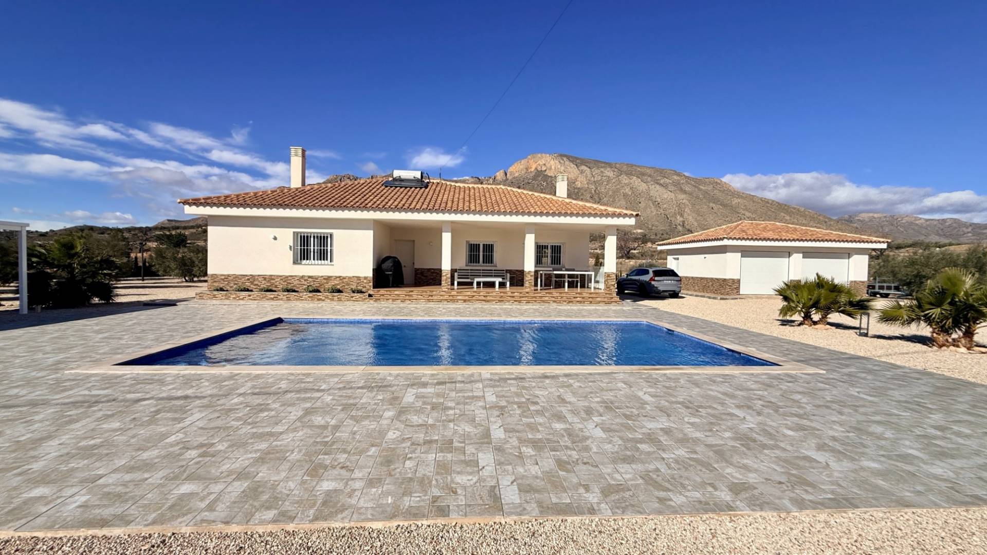 Comment profiteriez-vous d’une villa comme celle-ci ? Journées d’été au bord de la piscine, télétravail avec internet ultra-rapide ou simplement calme, espace et vues depuis votre terrasse plein sud ? Construite en 2022 et en état impeccable, cette villa moderne se situe sur un terrain entièrement clôturé de 5 500 m², avec vue sur des amandiers en terrasses et les collines boisées de Murcie. L’intérieur est lumineux avec un salon-salle à manger ouvert donnant directement sur un grand porche couvert orienté au sud, face à la piscine. La cuisine moderne est entièrement équipée avec électroménagers intégrés, vastes plans de travail et nombreux rangements. Une buanderie séparée avec accès extérieur mène vers le garage. Disposition intérieure : Trois chambres doubles avec placards intégrésSuite parentale avec salle de bains privativeSalle de bains invités avec douche à l’italienneConfiguration idéale pour invités ou bureau À l’extérieur, la villa se distingue vraiment. Un portail coulissant motorisé ouvre sur une longue allée gravillonnée bordée d’oliviers (environ 120 sur le terrain). La piscine privée au sel de 10 x 5 m constitue le point central, entourée d’une grande terrasse et d’une pergola ombragée. Vous imaginez-vous profiter de longues journées au soleil ou recevoir vos amis avec ces vues en toile de fond ? Caractéristiques extérieures : Terrain clôturé de 5 500 m²Piscine au selGrande terrasse et pergolaGarage double avec portes électriquesPotentiel atelier ou stockage Équipements : électricité renforcée (7 kW), eau d’irrigation, réservoir d’eau potable de 12 000 litres, climatisation gainable chaud/froid, chauffe-eau solaire et fibre optique 1 000 Mbps. Terrain entièrement irrigué.