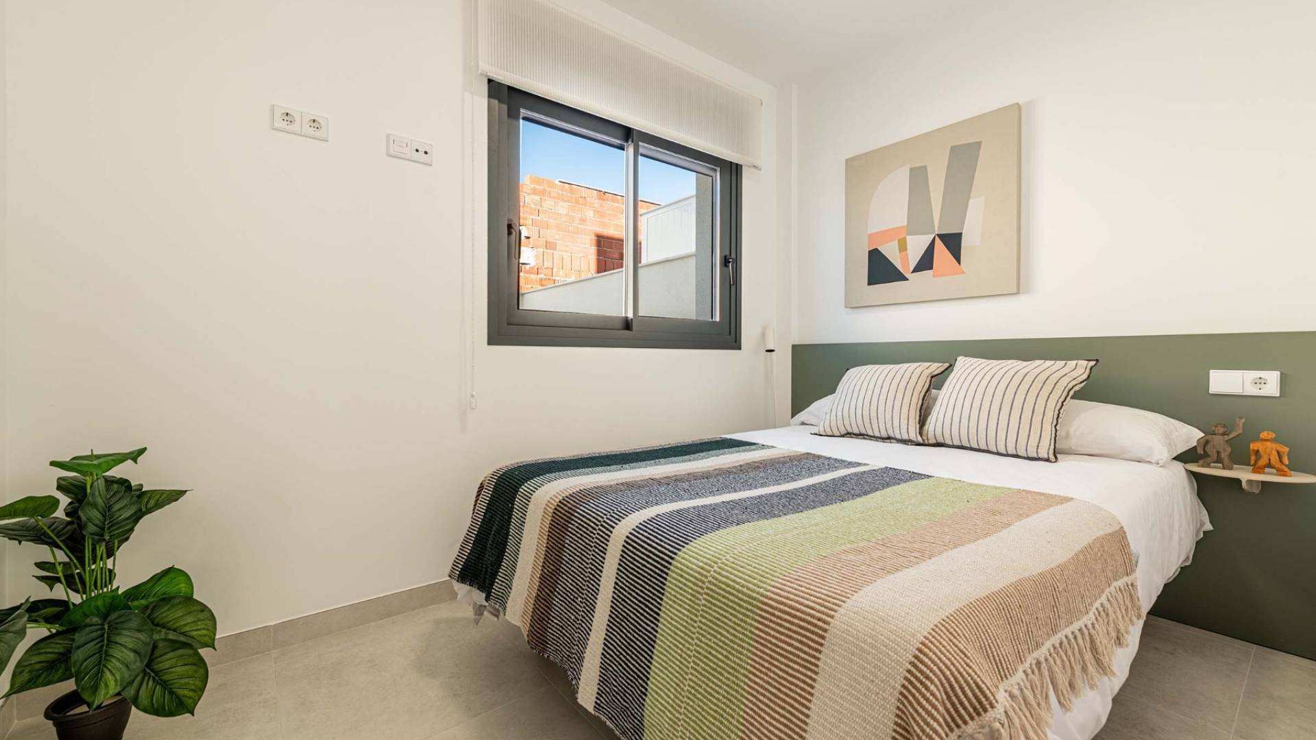 Jardin privé avec gazon artificiel et zone de parking, pré-installation pour moteur de porte de garage, visiophone, éclairage LED intérieur et extérieur, volets électriques dans les chambres, borne de recharge pour véhicule électrique, prises TV dans toutes les pièces, porte d’entrée sécurisée, cuisine équipée avec plan de travail Silestone et électroménagers, mur décoratif dans le salon, pré-installation de climatisation par gaines, système de récupération de chaleur, double vitrage haute sécurité avec filtre solaire et gaz argon, salle de bain complète avec douche effet pluie, armoires encastrées avec tiroirs et étagères supérieures, pré-installation pour panneaux photovoltaïques, cuisine d’été sur le solarium, piscine communautaire et jardins communs.