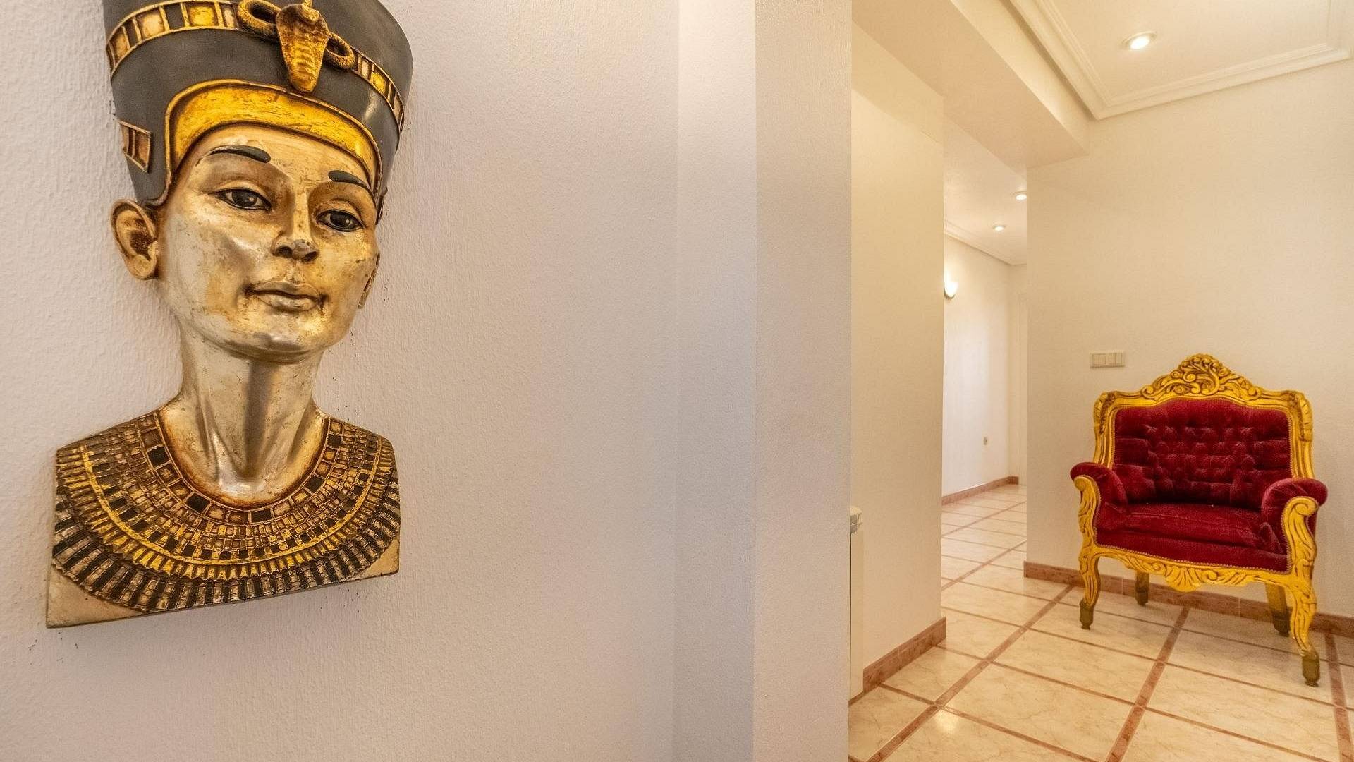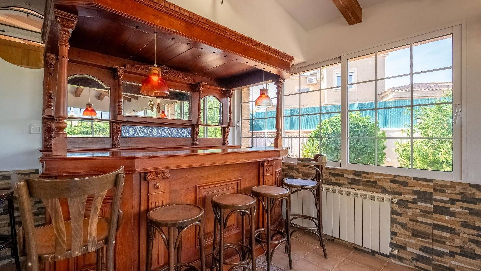 La maison, sur deux étages, est lumineuse et spacieuse, avec une bonne distribution et de nombreuses pièces, parfaites pour une grande famille. Elle comprend un bar dans le salon ainsi qu'une cave à vin. Une grande cuisine indépendante entièrement équipée. La maison compte 6 chambres. Elle comprend trois chambres meublées et un dressing. Les trois autres chambres sont dédiées aux réceptions, avec une salle de cinéma maison, une cave à vin et un bureau. Elle dispose de trois salles de bains, dont une avec baignoire balnéo. Enfin, une véranda vitrée complète ce bien.