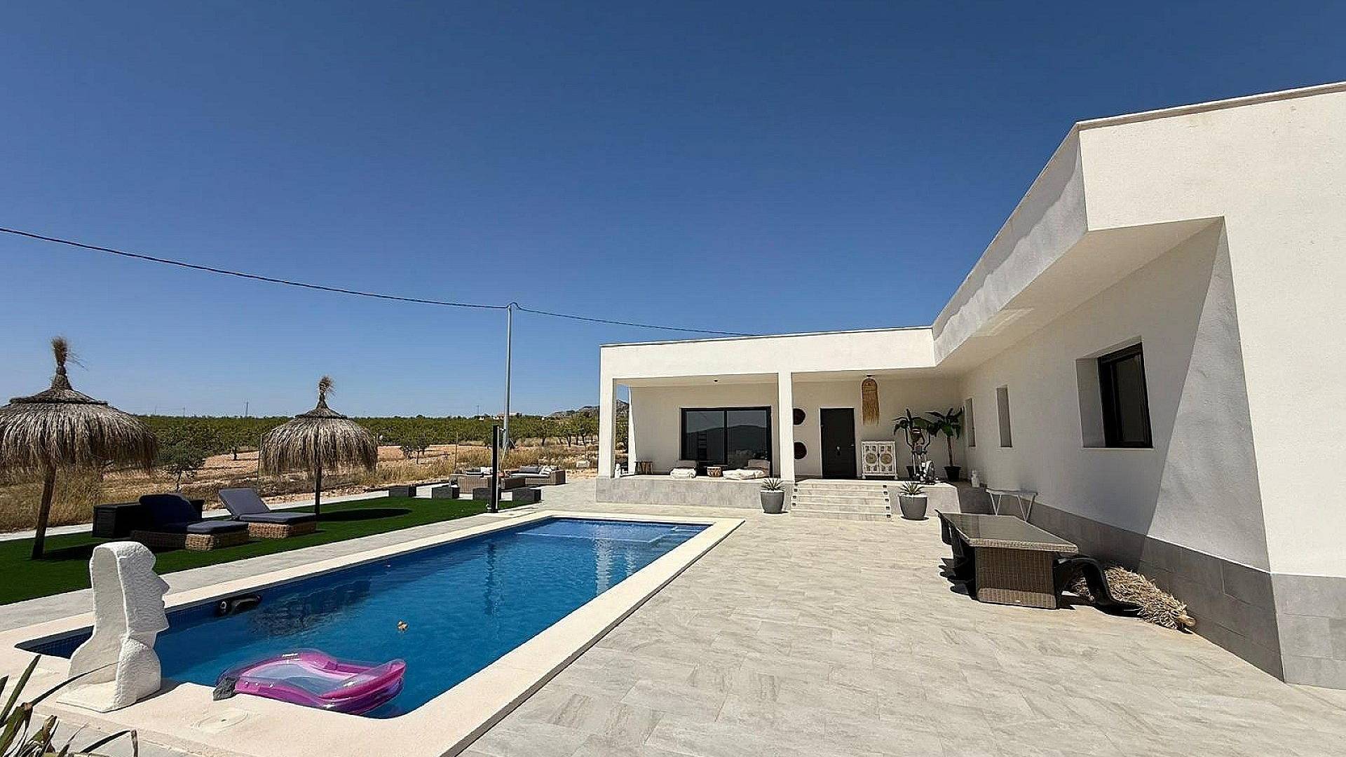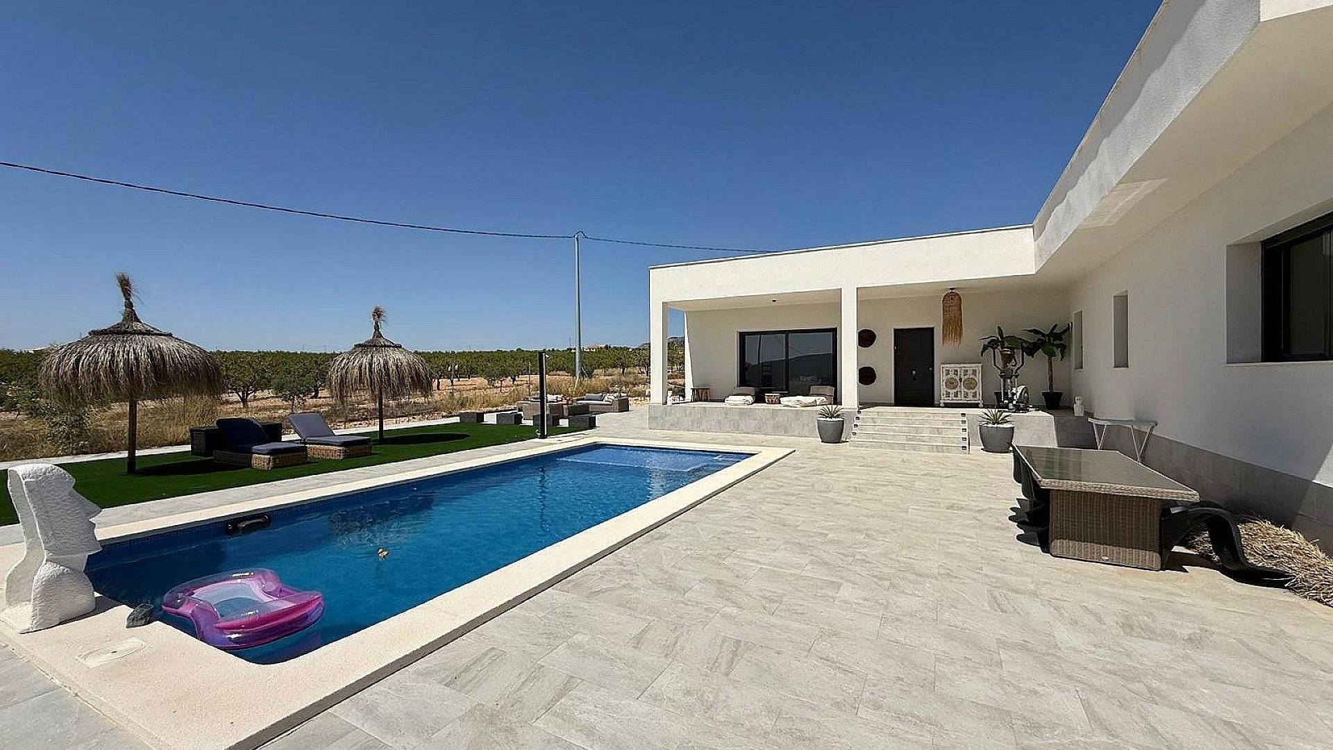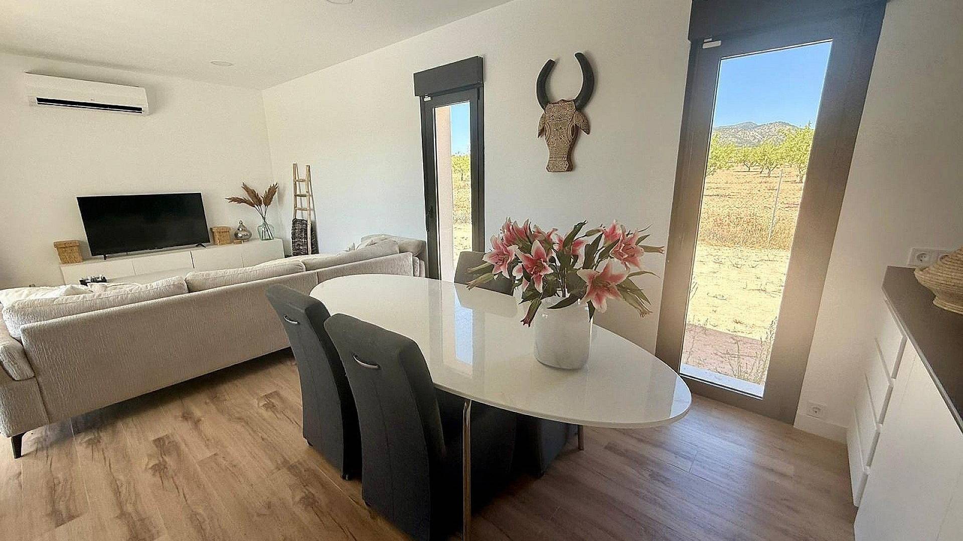 Nous sommes ravis de vous présenter cette charmante villa de 3 chambres et 2 salles de bains, située à quelques minutes de Pinoso.