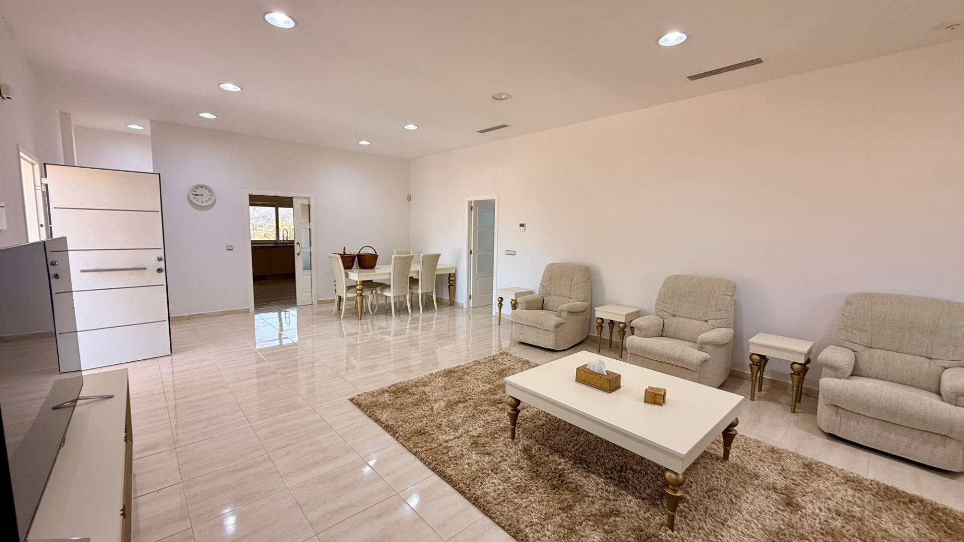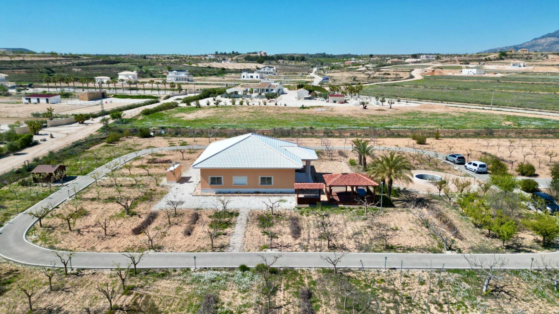 Et si votre prochaine maison offrait près de 15 000m² de terrain, un verger privé et une intimité totale ? Découvrez Casa Pablo, située dans le paisible village de Casas del Señor. Une propriété qui combine espace, confort et véritable art de vivre à la campagne. Est-ce le changement que vous recherchez ? La villa offre 209m² habitables, avec une distribution idéale. Elle comprend quatre grandes chambres, chacune avec salle de bains en suite, parfaites pour la famille ou les invités. Un WC séparé complète l’ensemble. La maison dispose de placards intégrés, d’un espace de rangement et d’une cuisine pleine de potentiel. Le porche couvert est idéal pour profiter de l’extérieur à l’ombre. La climatisation chaud/froid assure un confort toute l’année. À l’extérieur, une pergola en bois de 25m² offre un espace parfait pour les repas ou la détente. Pouvez-vous vous imaginer ici ? Le terrain de 14 874m² est entièrement planté d’arbres fruitiers et de palmiers, avec eau d’irrigation et eau potable. La propriété dispose également de l’électricité triphasée, d’un terrain entièrement clôturé, d’un portail électrique et d’un accès goudronné. Caractéristiques principales : 209m²4 chambres avec salles de bains en suiteWC séparéPlacards intégrésDébarrasPorche couvertPergola en bois 25m²Climatisation chaud/froidTerrain de 14 874m²Arbres fruitiers et palmiersEau d’irrigation et potableÉlectricité triphaséeTerrain clôturéPortail électriqueAccès goudronné Une propriété offrant espace, intimité et potentiel. Idéale comme résidence principale ou maison de campagne.