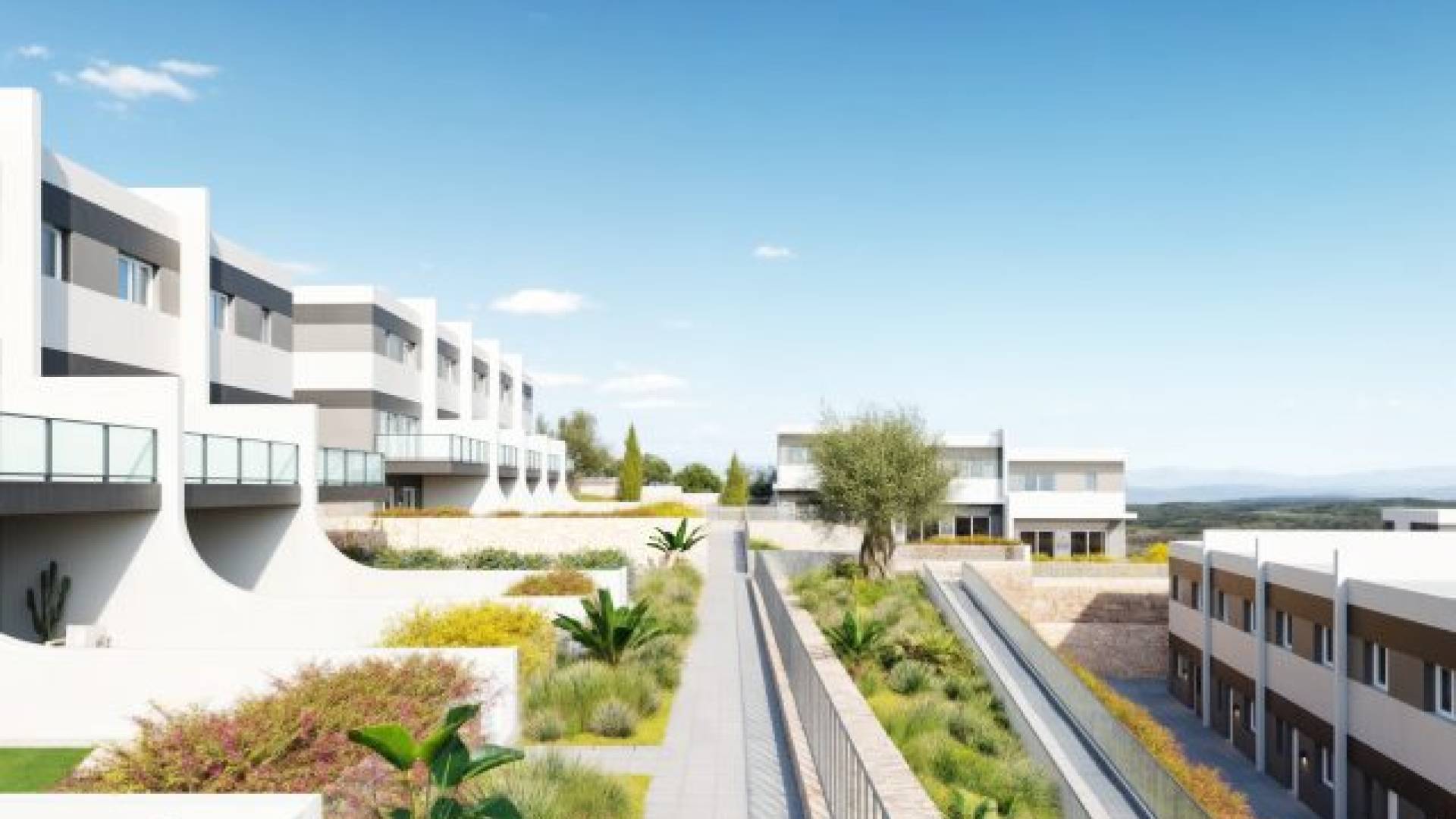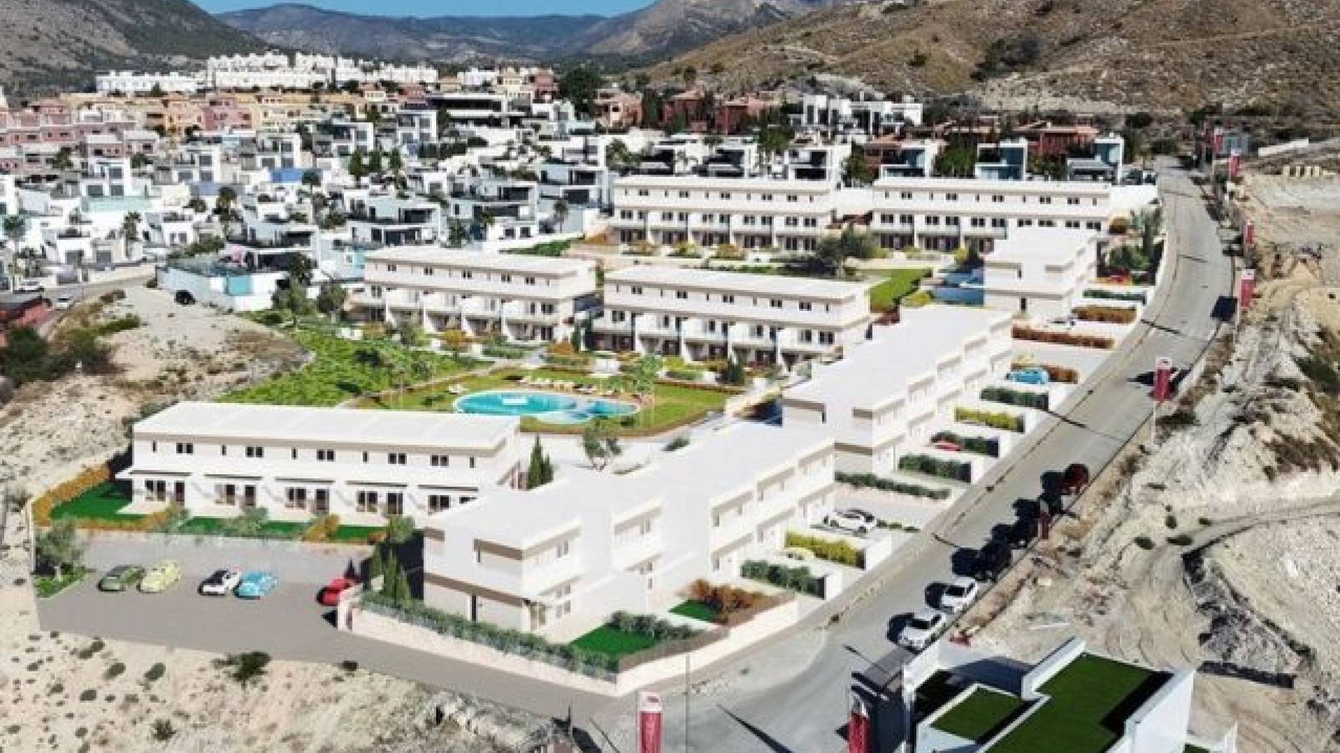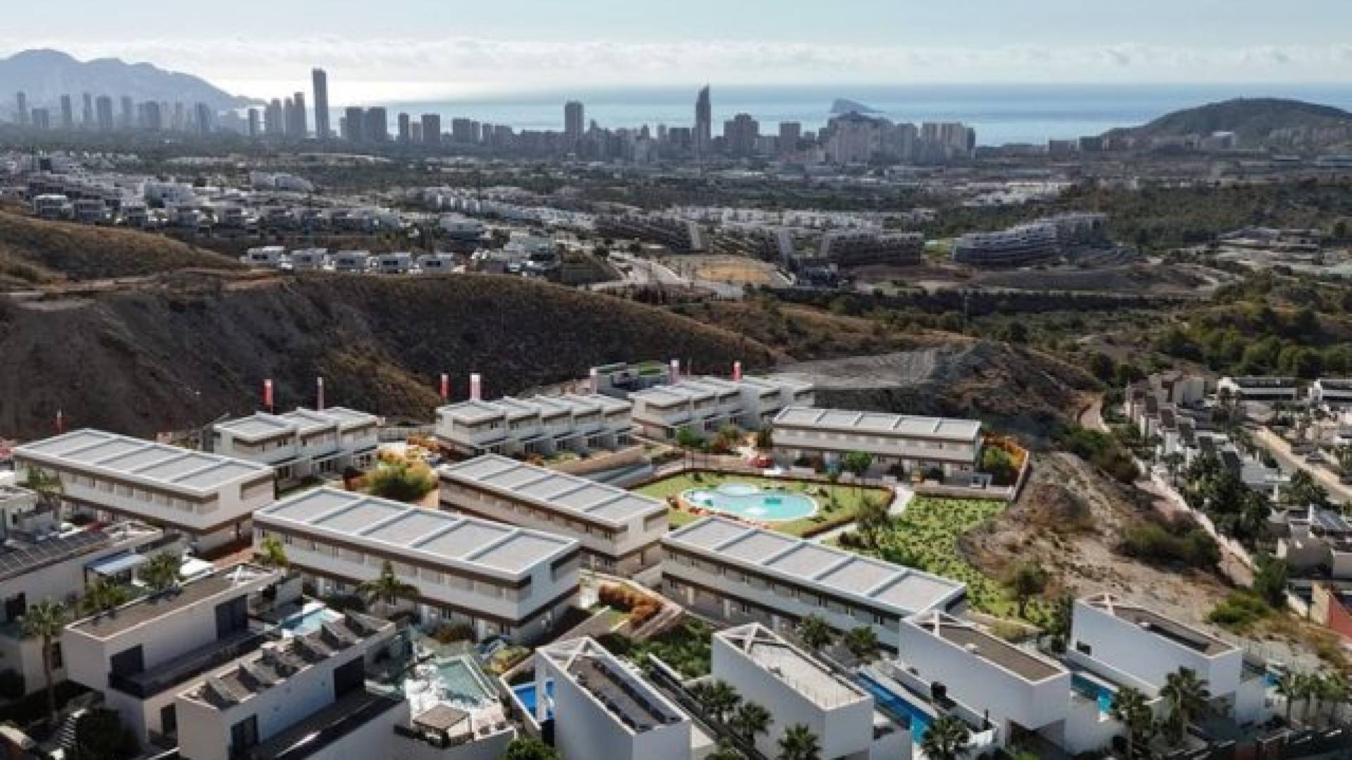Situé dans une zone paisible et bien desservie, à proximité de Benidorm, des plages et du parcours de golf Puig Campana, Nature est le dernier développement résidentiel de la Costa Blanca. El Balcón de Finestrat se trouve à seulement quelques kilomètres de tous les services nécessaires : centre commercial La Marina, restaurants, supermarchés, écoles, pharmacies, banques, etc.Nouvelles maisons mitoyennes de 3 chambres & 3 salles de bain. Un quartier résidentiel calme et bien desservi, offrant des vues spectaculaires sur la skyline de Benidorm, à proximité de la ville, des plages et dun terrain de golf.Les maisons sont soigneusement agencées et offrent de belles vues sur les espaces communs, la piscine, les jardins privés, lenvironnement naturel environnant ainsi que la skyline de Benidorm. Plusieurs propriétés bénéficient également de vues sur la mer. Les matériaux et finitions ont été sélectionnés afin doffrir aux logements un haut niveau délégance, de confort et dexclusivité.Parmi les points forts figurent le sol stratifié, des menuiseries extérieures élégantes, de grandes fenêtres assurant un maximum de lumière naturelle, une cuisine entièrement équipée, des salles de bains modernes avec robinetterie et équipements sanitaires haut de gamme, ainsi quun système de climatisation aérothermique dans tout lappartement avec équipements inclus.Construites avec des matériaux dexcellente qualité, ces nouvelles habitations forment un complexe résidentiel attrayant, avec parking extérieur privé, espaces verts et aire de jeux pour enfants. Les maisons partagent une piscine commune. De plus, pour les maisons jumelées, une piscine privée est disponible en option.La Costa Blanca bénéficie dun climat méditerranéen doux toute lannée, avec une température moyenne de 19 ºC, ce qui permet de profiter de vos activités de plein air préférées à tout moment de lannée.La Costa Blanca est la destination idéale pour toutes sortes de sports et dactivités en plein air 365 jours par an : voile, pêche, plongée ou surf, sans oublier la randonnée ou le cyclisme dans le parc naturel de la Serra Gelada Et si vous êtes amateur de golf, vous pourrez profiter dune partie sur lun des 21 parcours de golf de la province.Terminées pour : Octobre 2027Prix à partir de 425.000