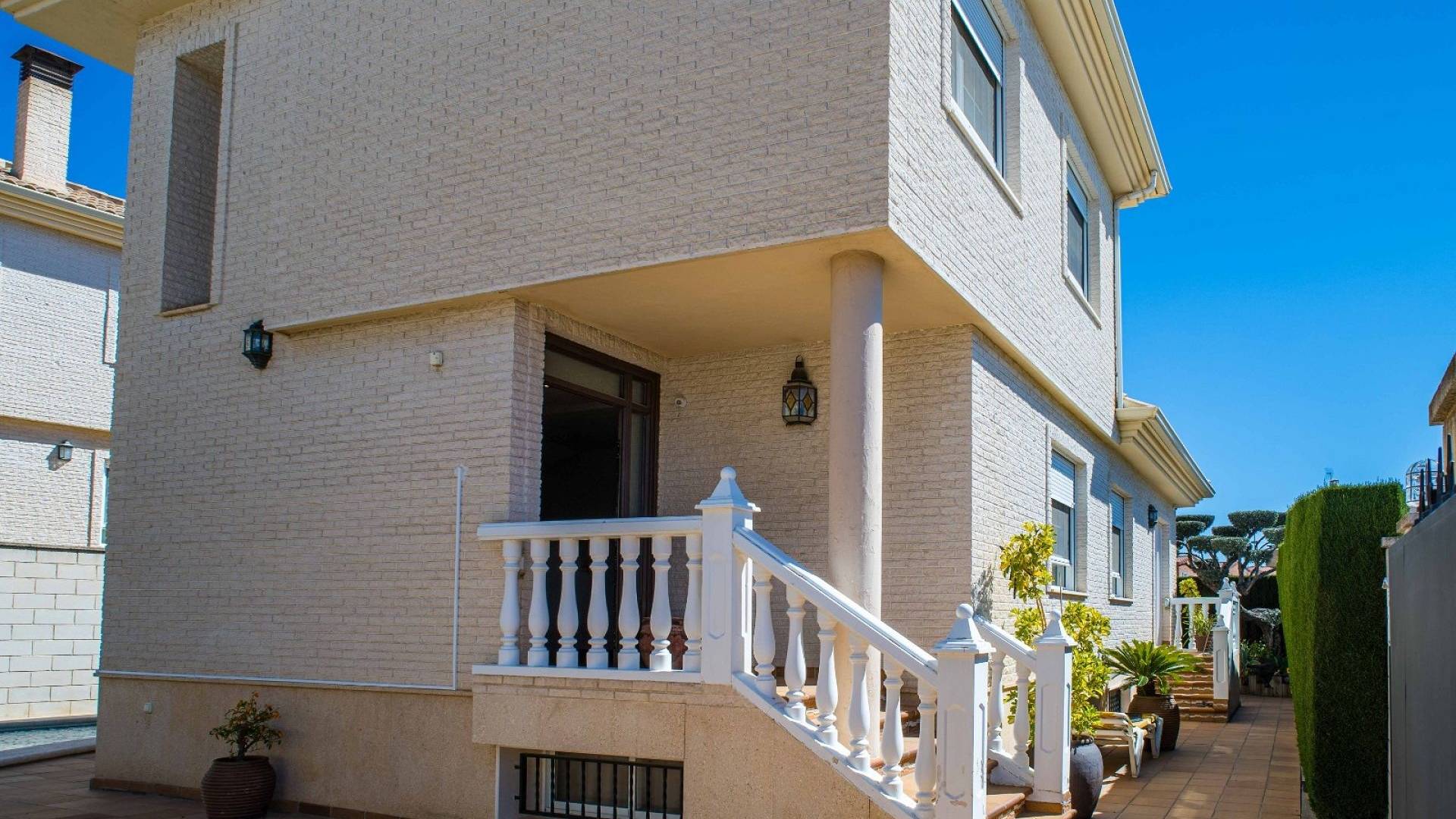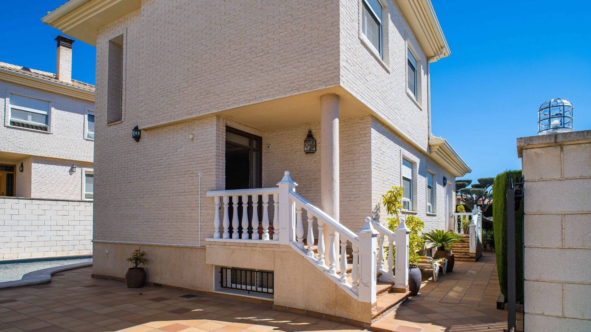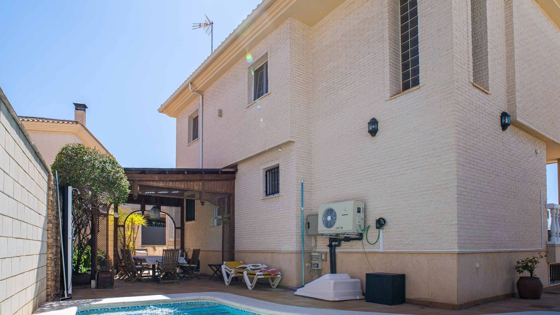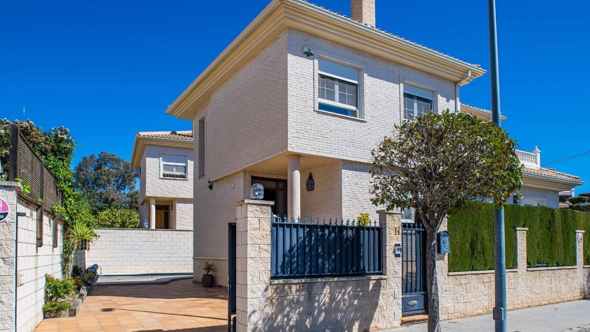 Cette villa est équipée d'un chauffage central à zones réglables, de la climatisation individuelle dans chaque pièce, de volets roulants automatiques au rez-de-chaussée, d'un interphone vidéo intelligent et d'un système d'alarme et de sécurité complet.