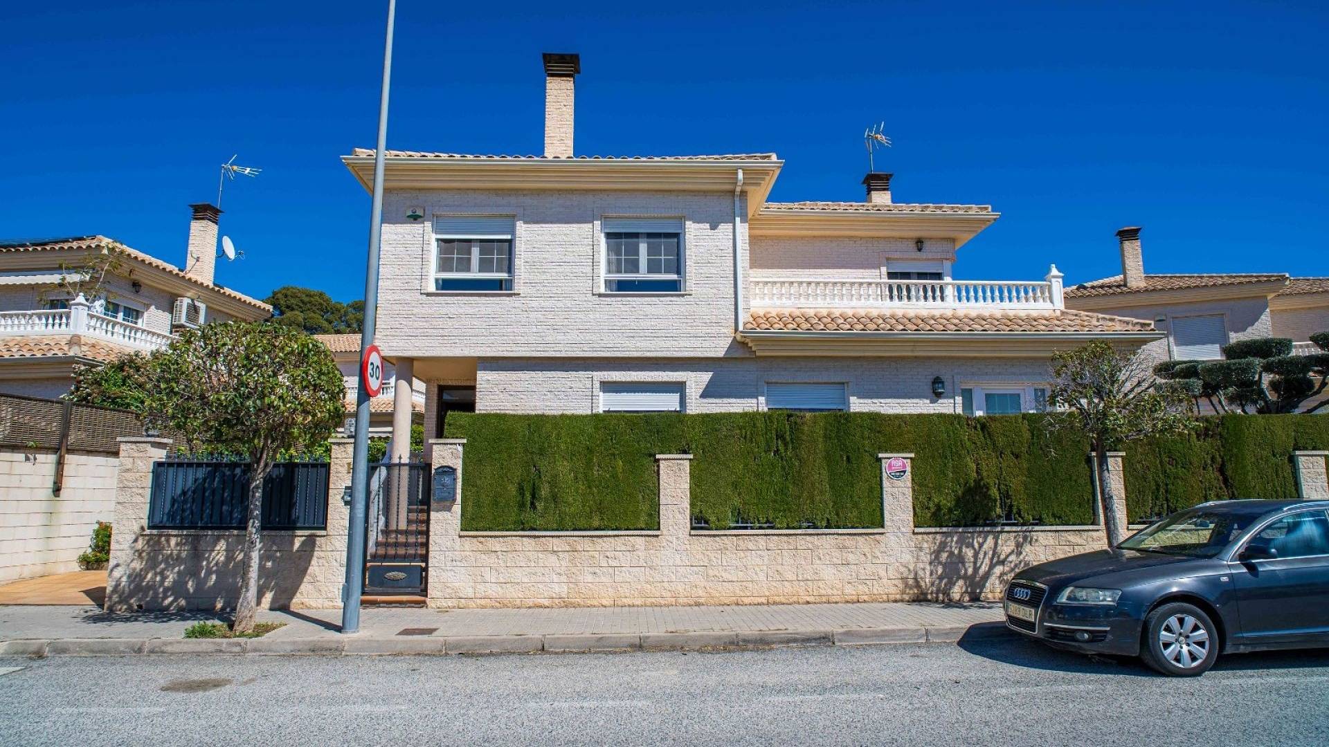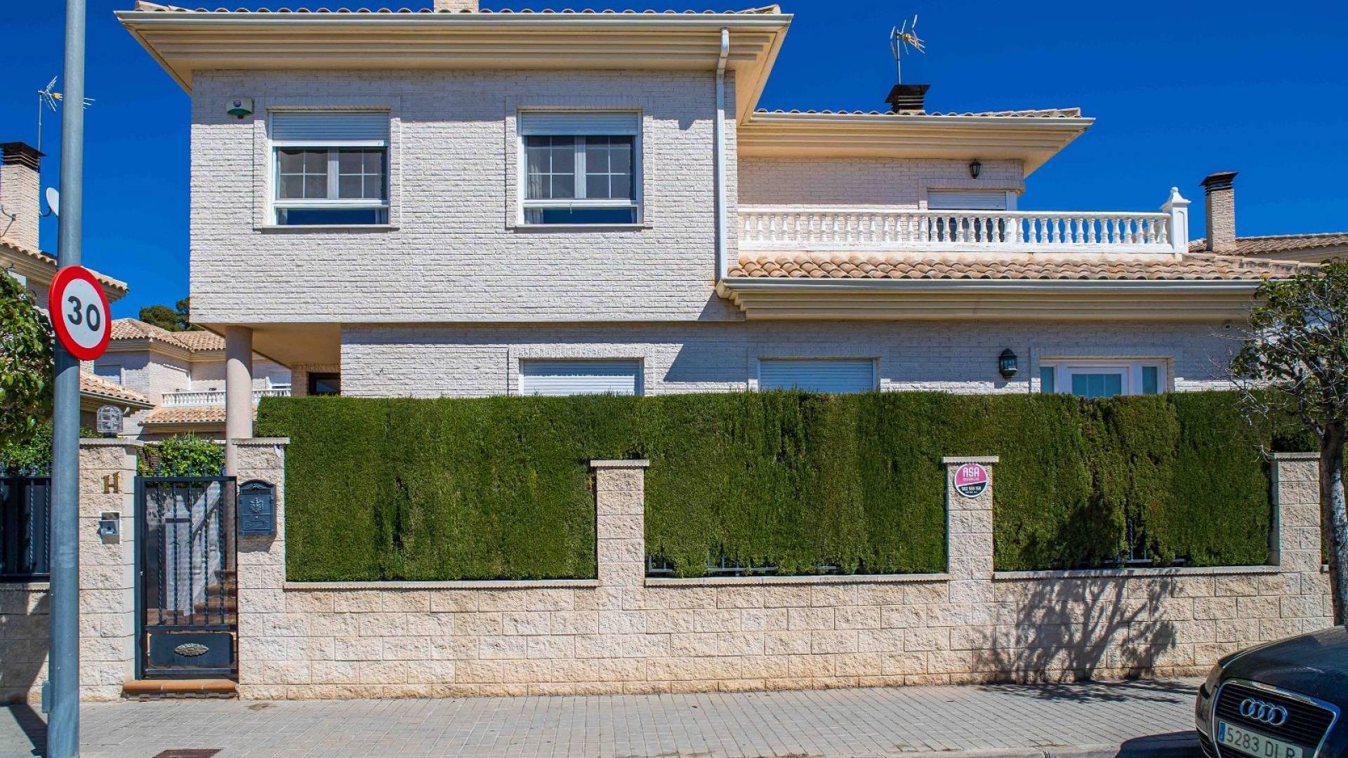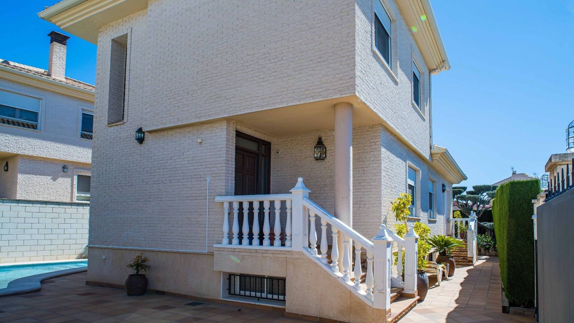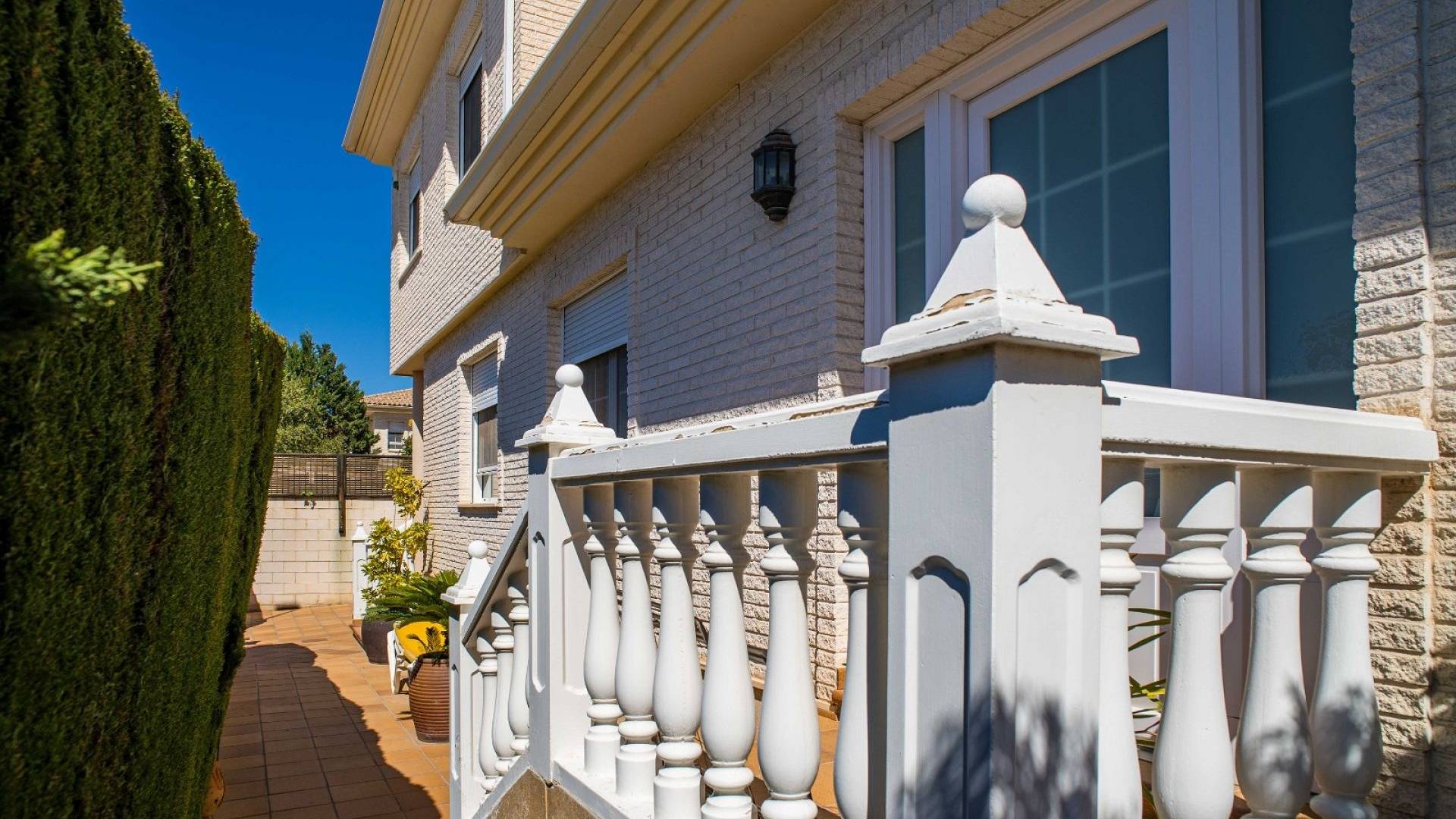 Cette villa est équipée d'un chauffage central à zones réglables, de la climatisation individuelle dans chaque pièce, de volets roulants automatiques au rez-de-chaussée, d'un interphone vidéo intelligent et d'un système d'alarme et de sécurité complet.