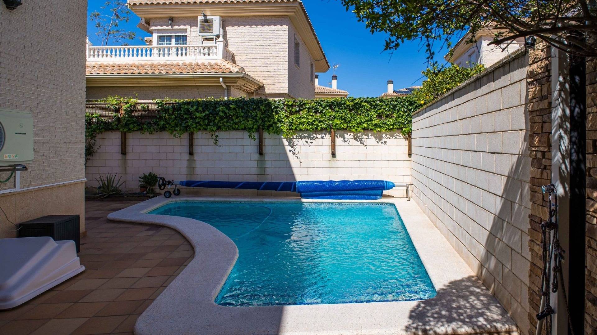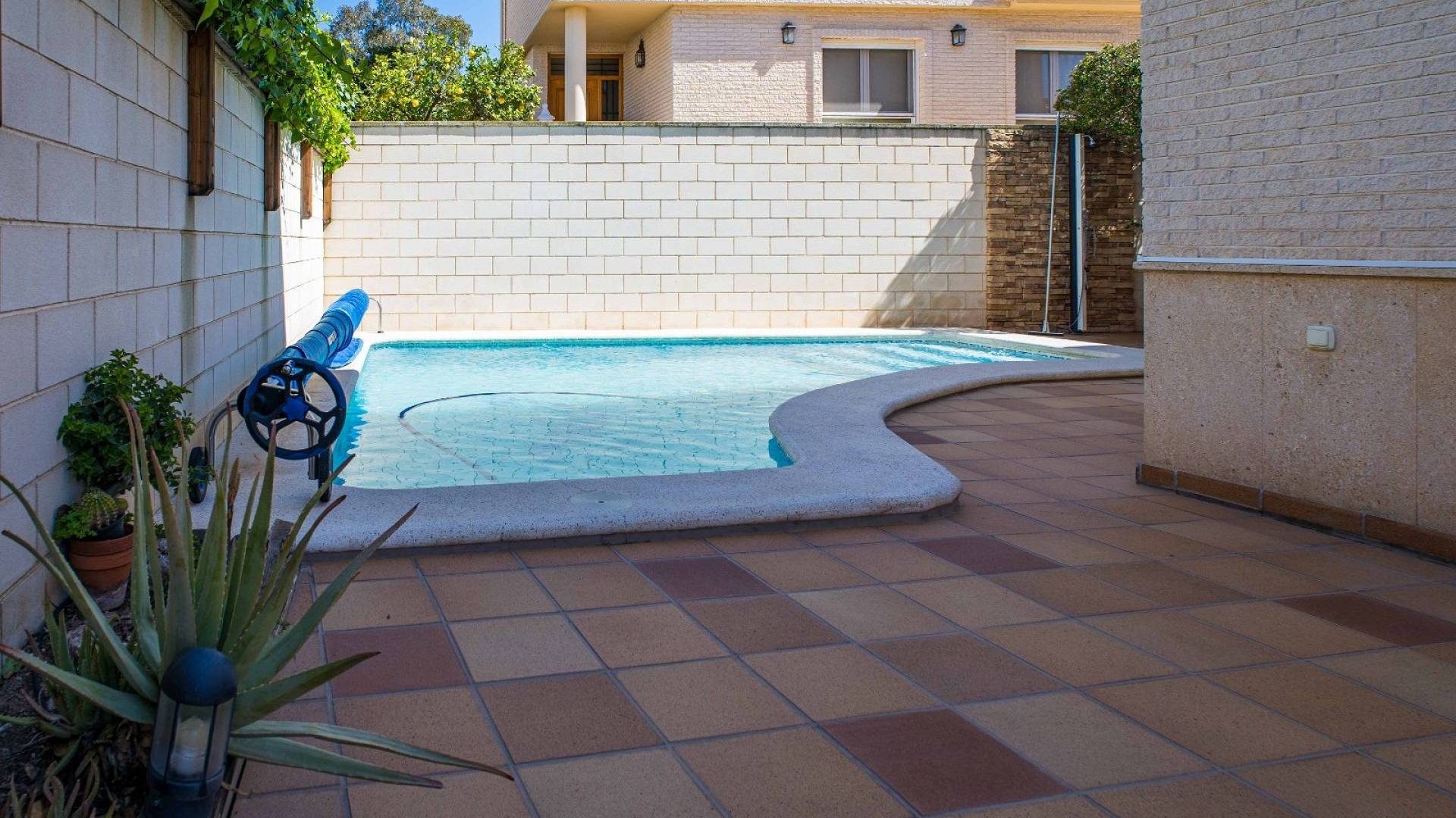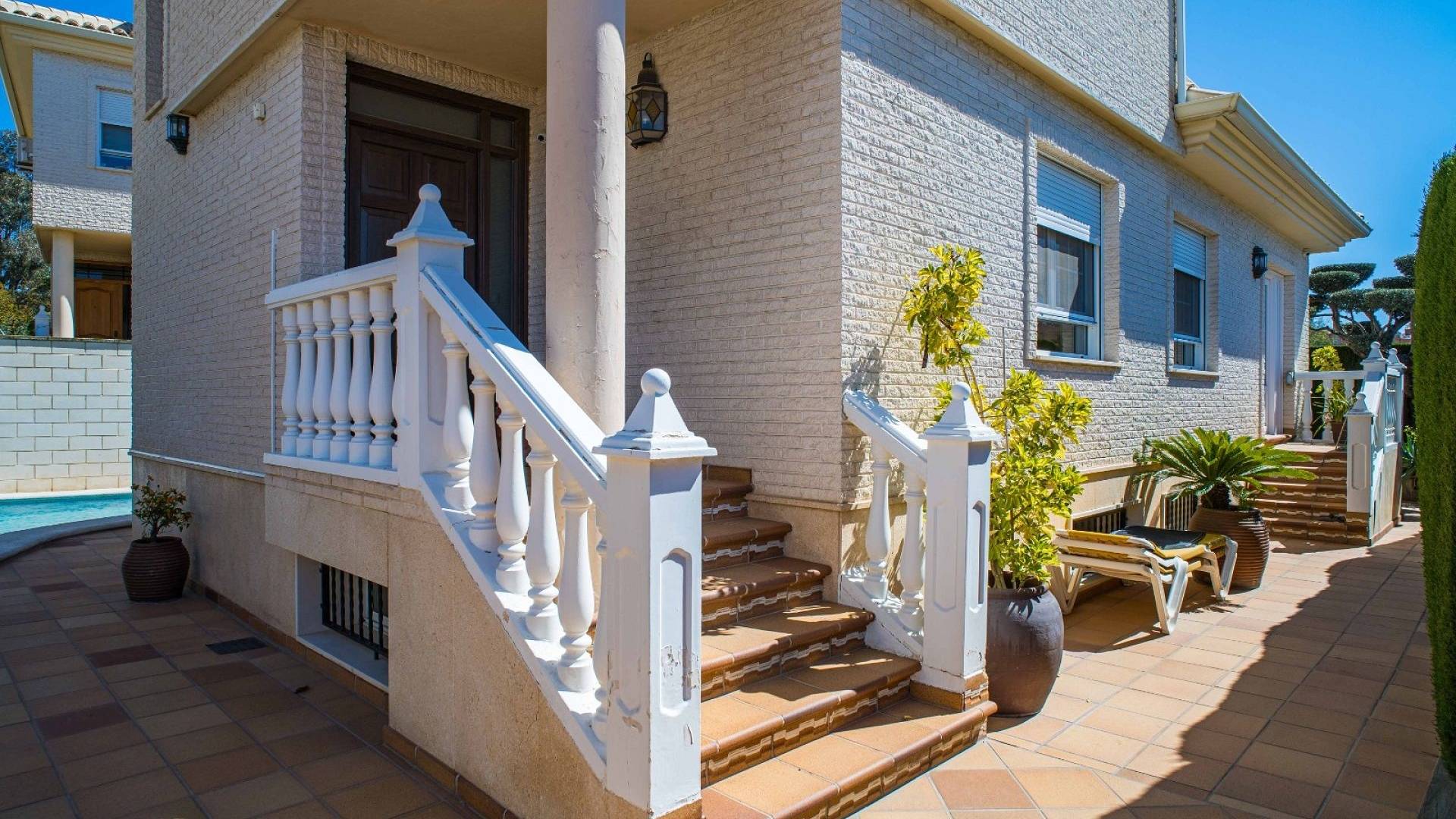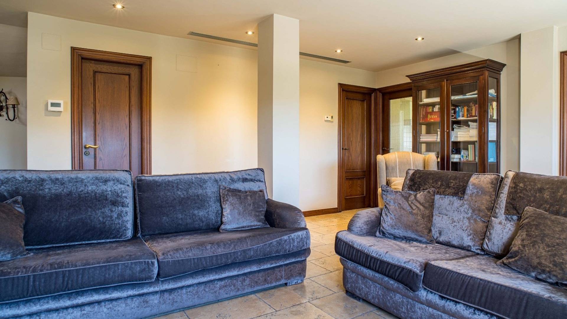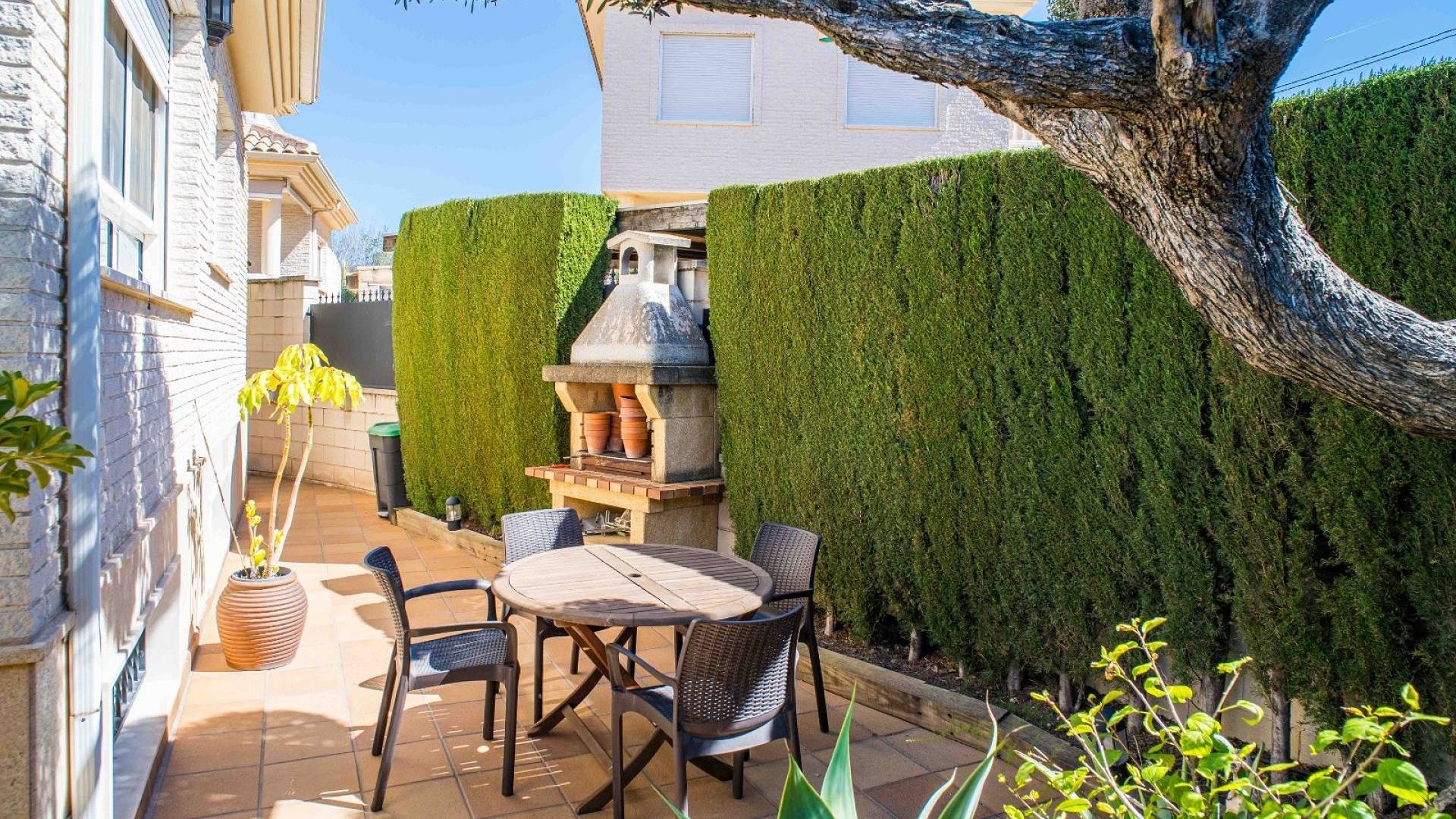 Cette villa est équipée d'un chauffage central à zones réglables, de la climatisation individuelle dans chaque pièce, de volets roulants automatiques au rez-de-chaussée, d'un interphone vidéo intelligent et d'un système d'alarme et de sécurité complet.
