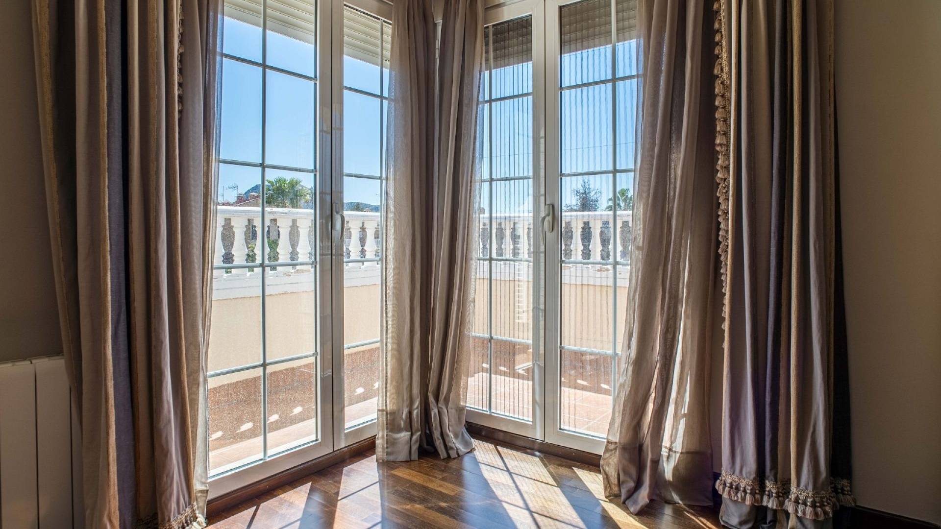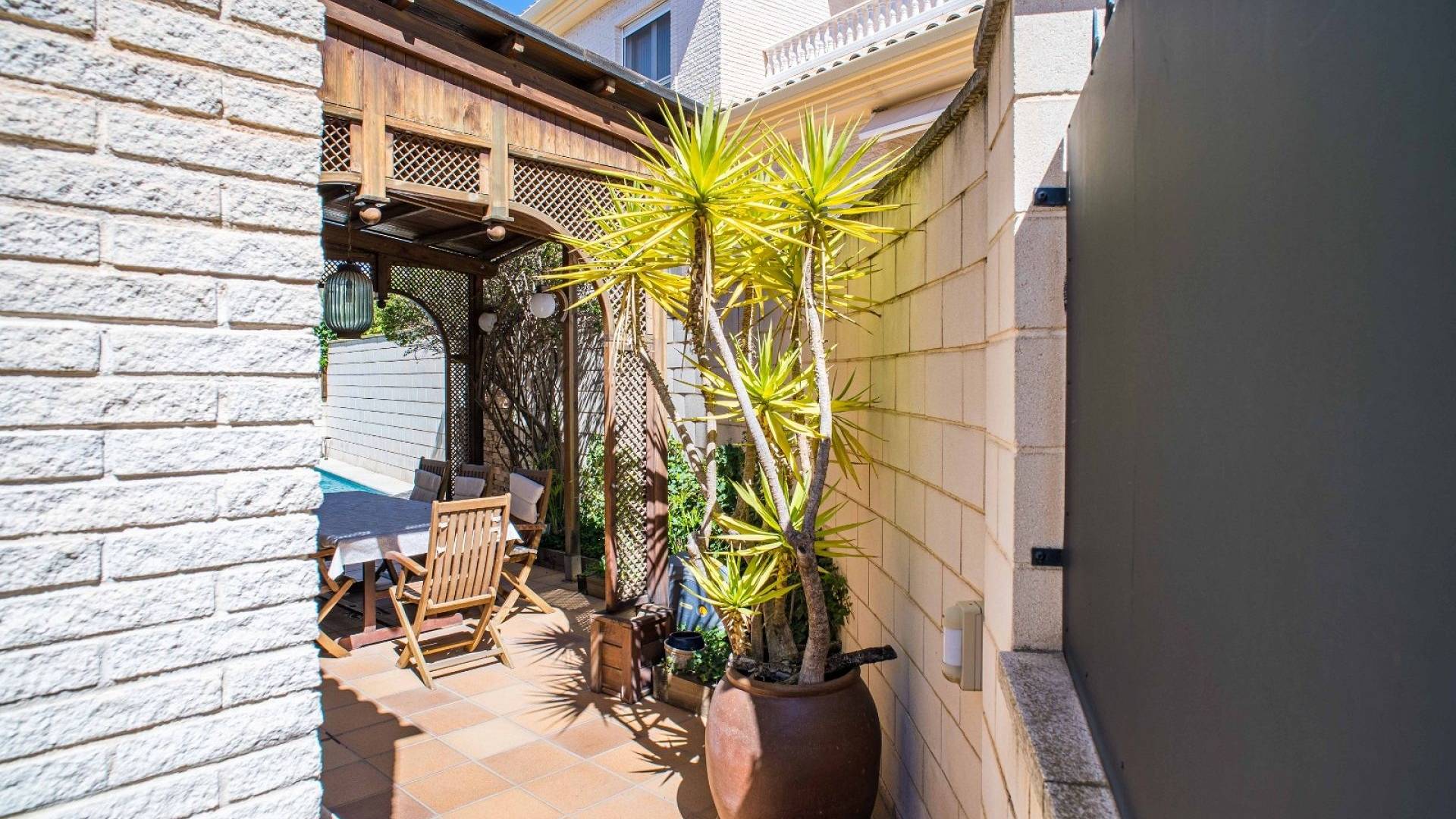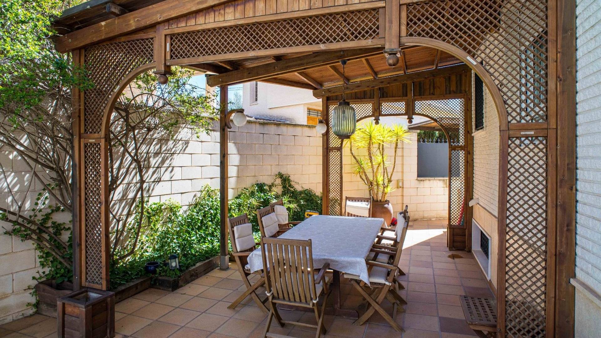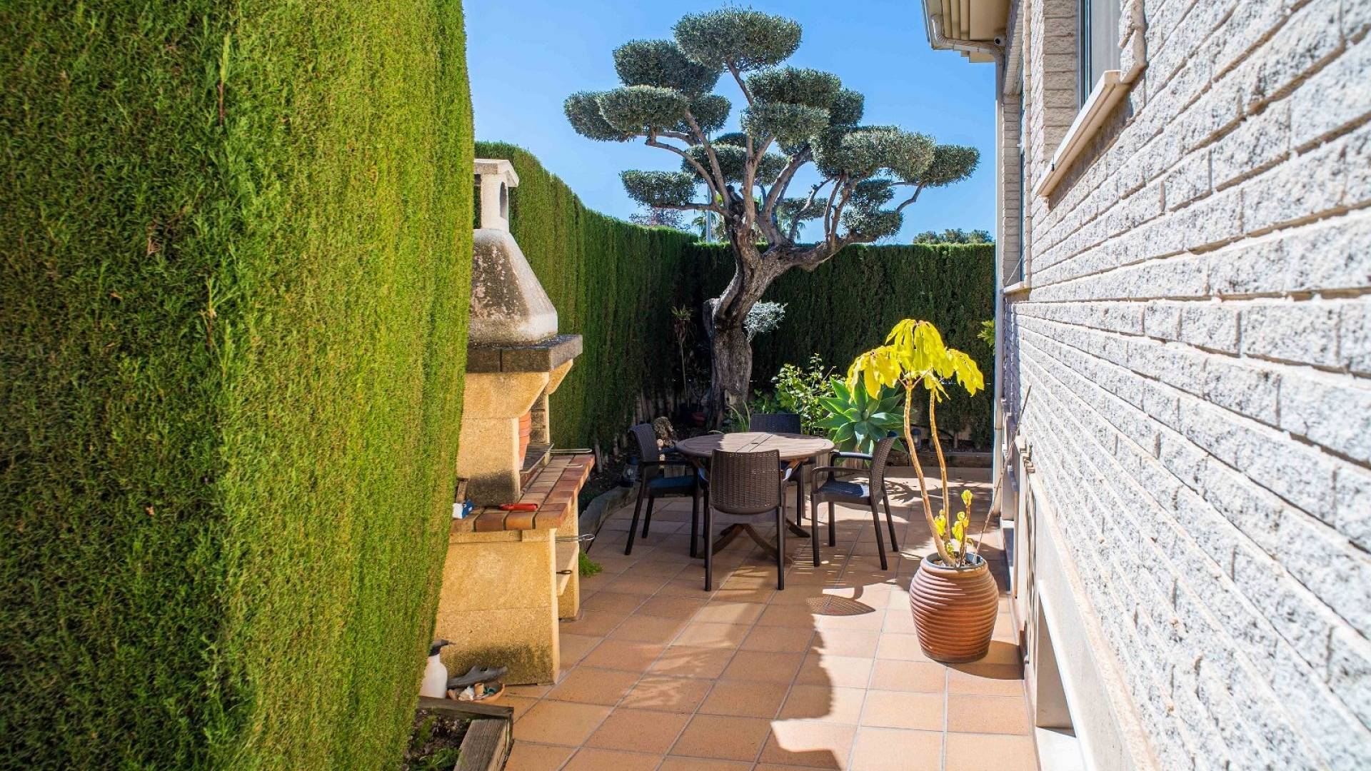 Cette villa est équipée d'un chauffage central à zones réglables, de la climatisation individuelle dans chaque pièce, de volets roulants automatiques au rez-de-chaussée, d'un interphone vidéo intelligent et d'un système d'alarme et de sécurité complet.