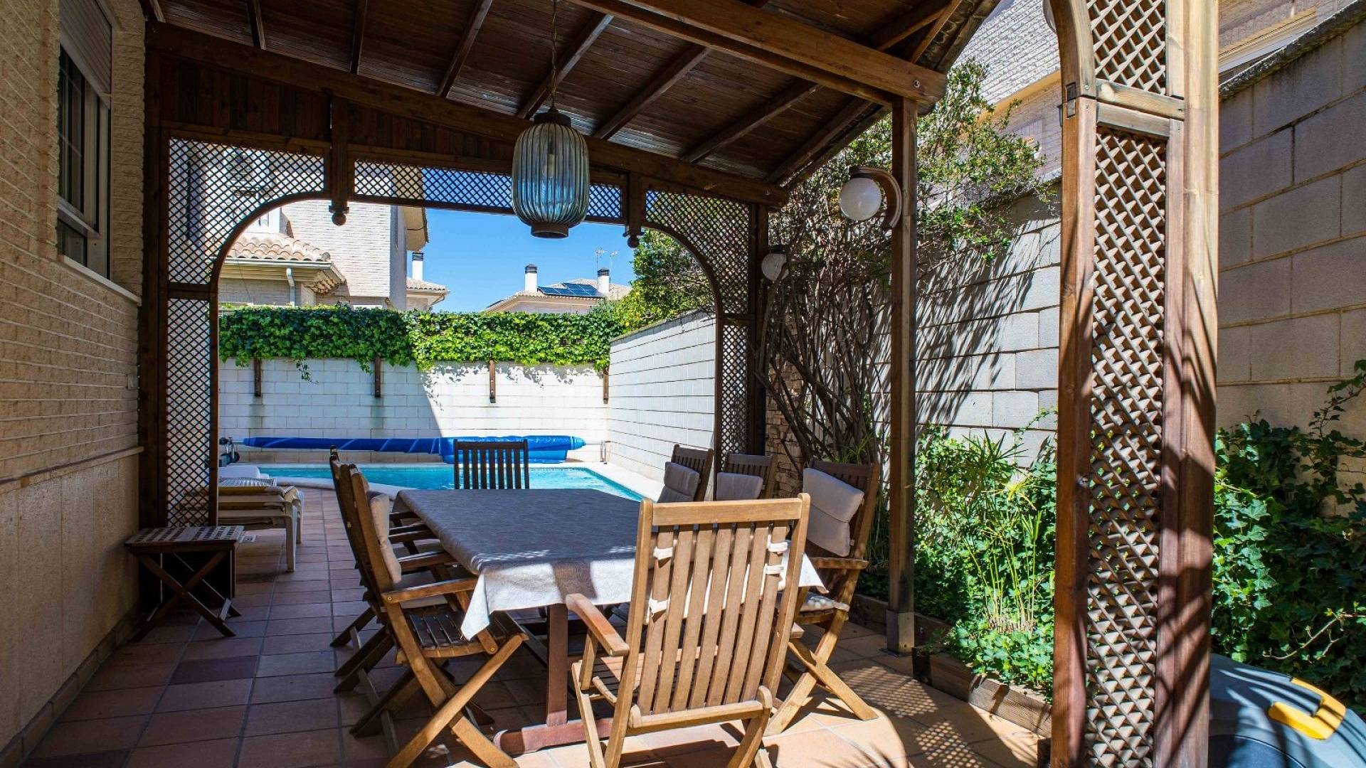 À l'extérieur, vous profiterez d'une piscine privée chauffée, utilisable toute l'année. La pergola et l'espace barbecue complètent l'ensemble et créent une oasis de détente privée.