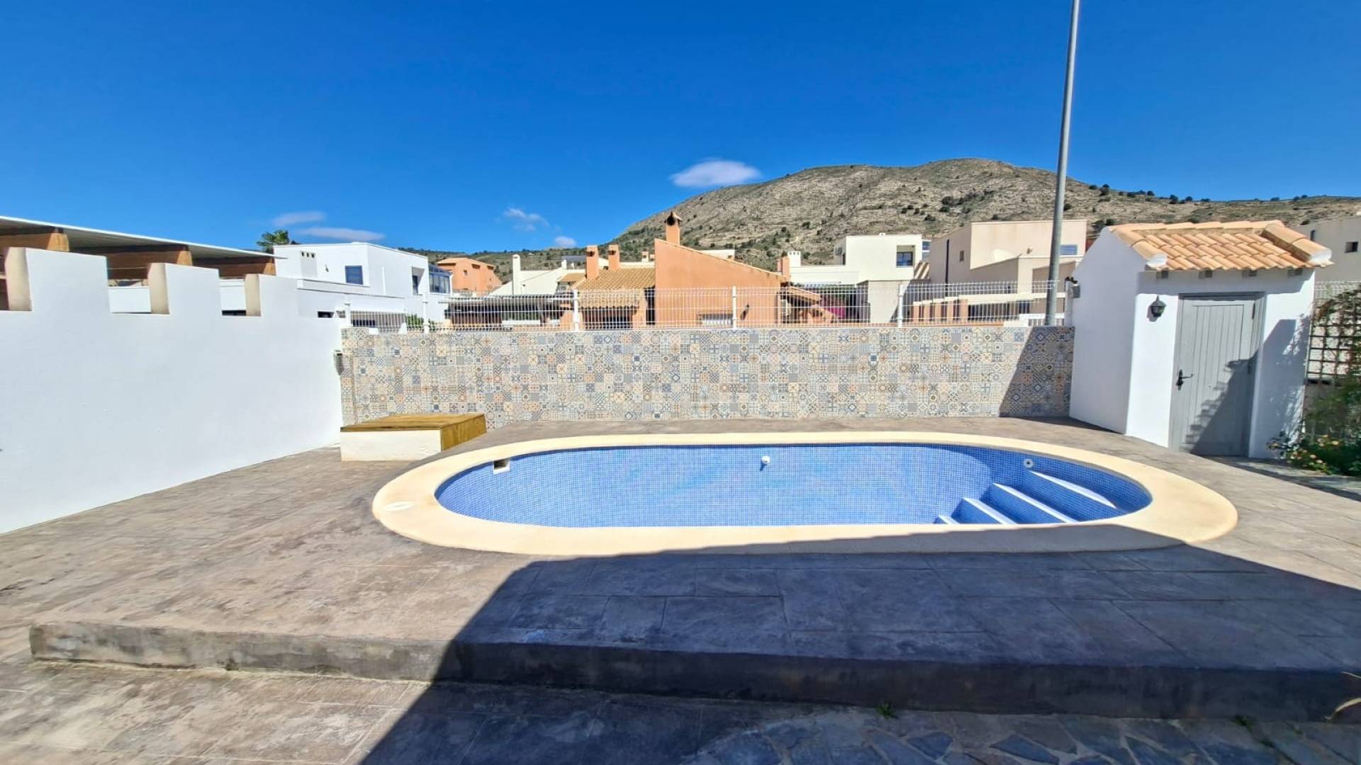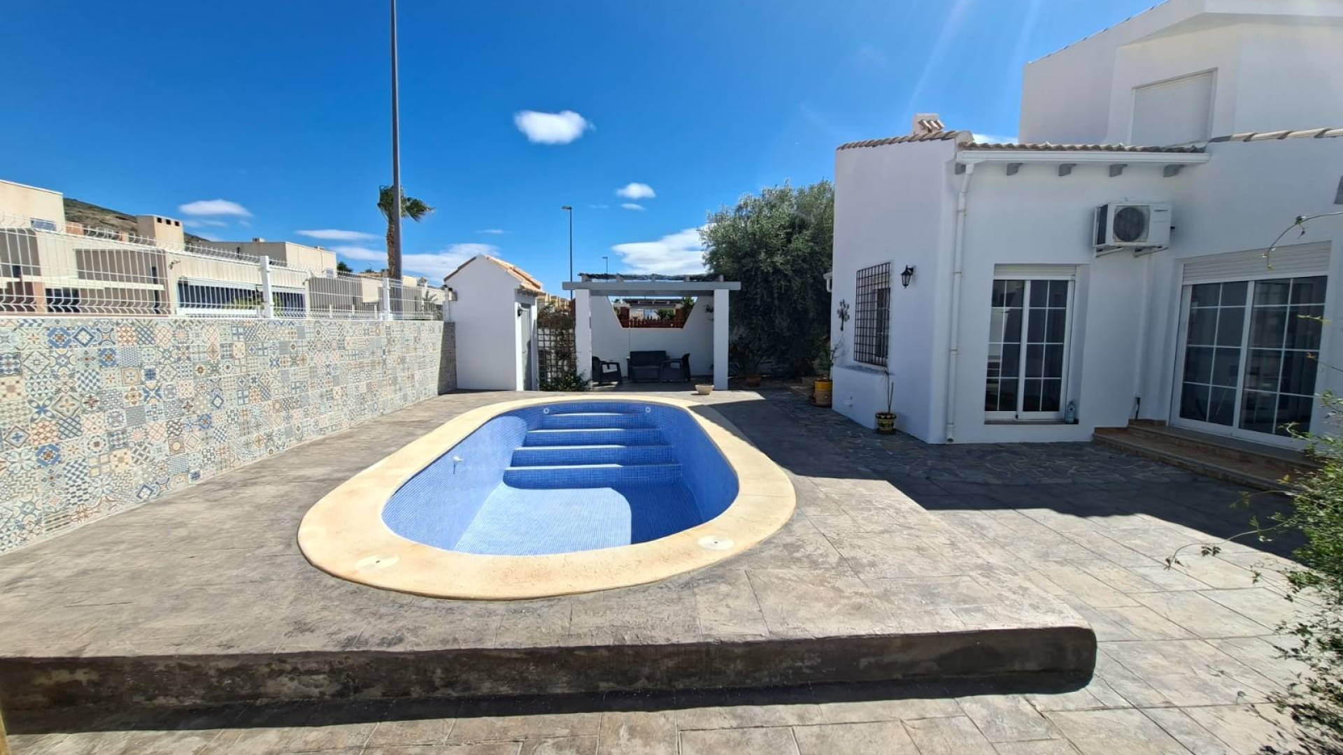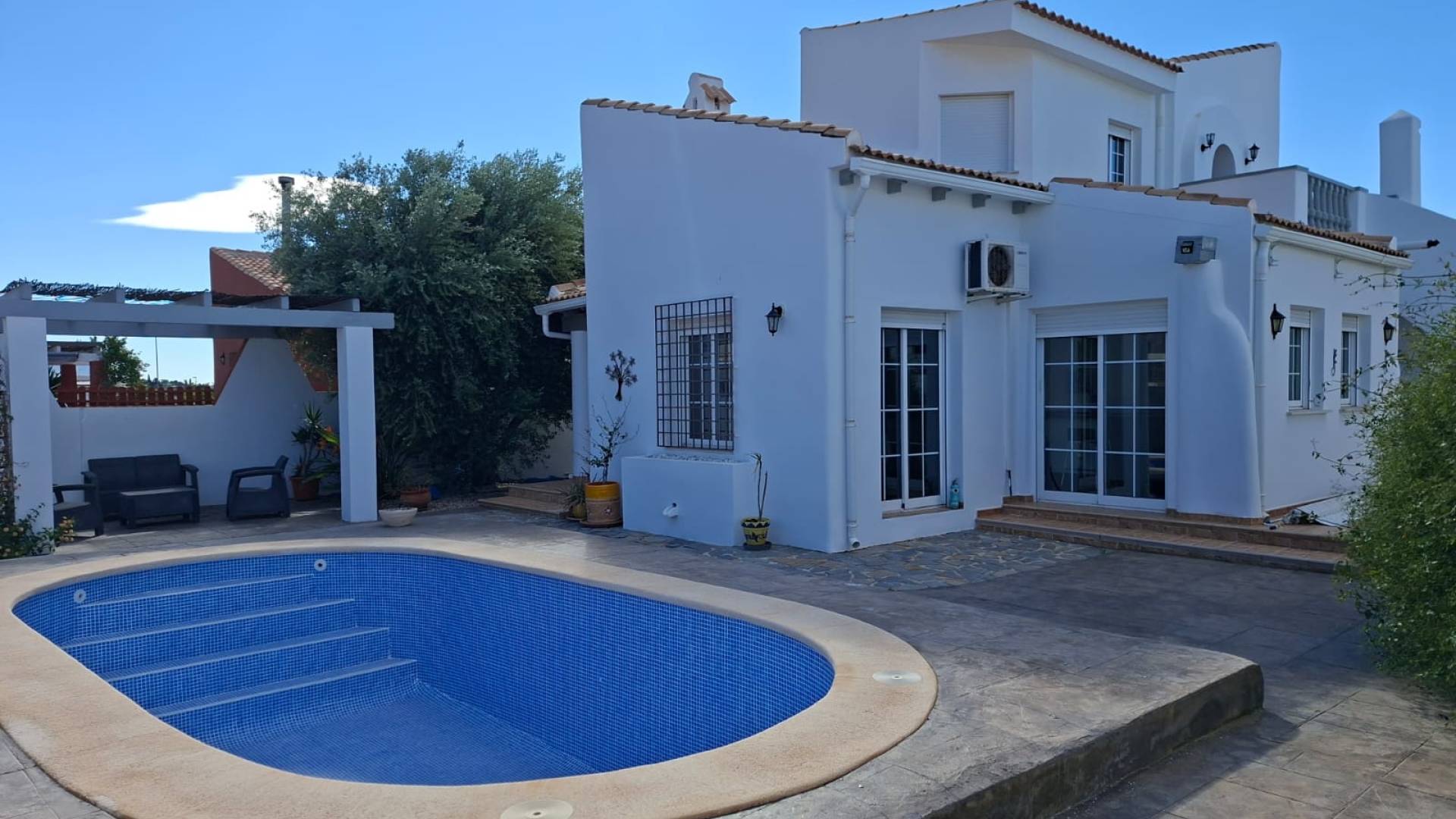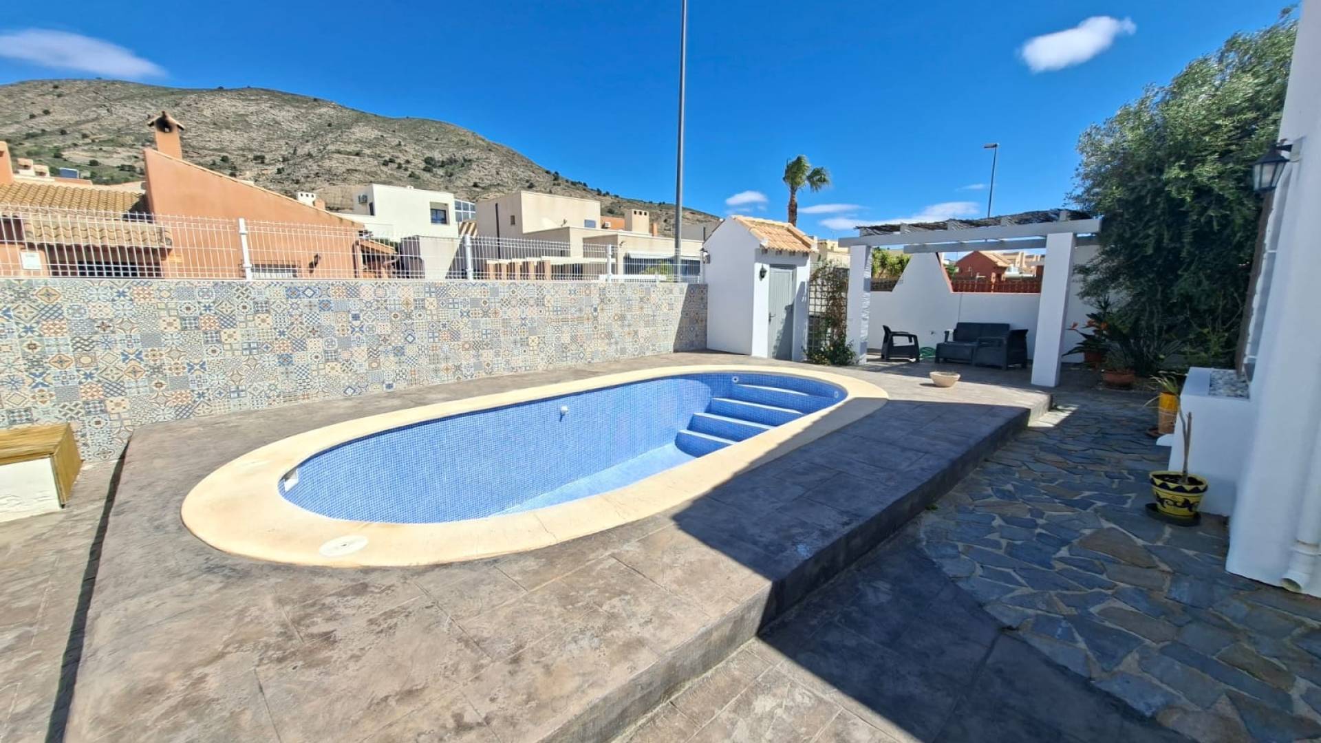 Cette propriété se situe dans la quartier résidentiel très tranquille de las kalendas à distance de marche des thermes et à 2 kms de la ville de Fortuna avec toutes les commodités. La maison principale se compose d'un living/salle à manger, de 3 chambres et de 2 salles de bain dont une en suite et d'une magnifique cuisine équipée. Plusieurs baies vitrés donnent directement sur l'espace extérieur avec des terrasses ainsi que la piscine. Un escalier extérieur mène à un apartment séparé avec une chambre, une salle de bain et une pièce supplémentaire (salon tv ou chambre par exemple ) Elle béneficie de tout le confort moderne : internet avec fibre optique, électricité, eau, chauffage central au gaz.
