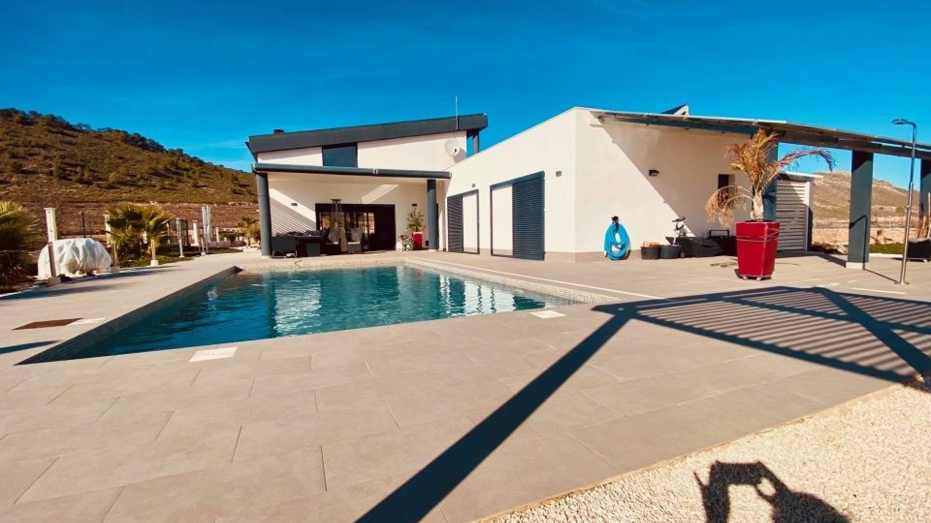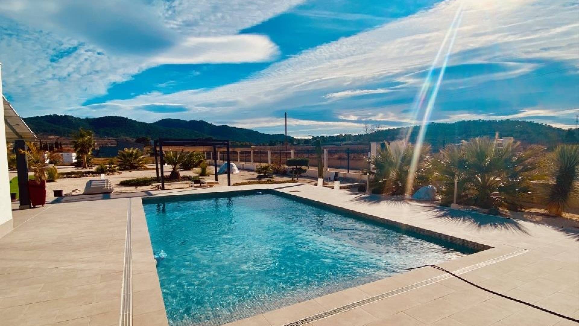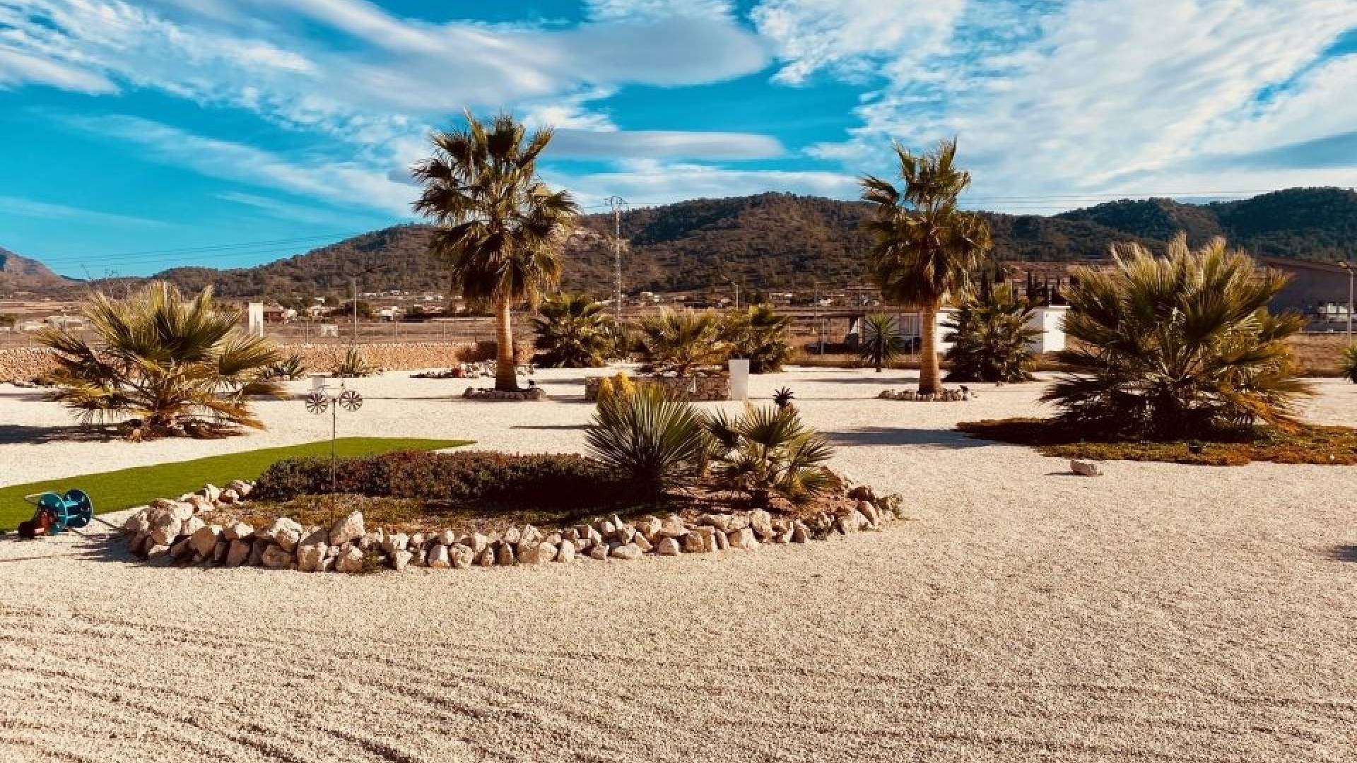 Met veel plezier presenteren we je deze prachtige villa gebouwd in 2020 op slechts een paar minuten van het kleine dorpje Canada de la Lena en 15 minuten van het mooie stadje Pinoso. Het staat op een volledig omheind perceel van 5.143m² dat met veel zorg en smaak is aangelegd. De prijs van de tuinaanleg met zijn houten chalet van 5x5m moet in overweging genomen worden: palmbomen, Bonsai gesnoeide olijfbomen, laurierbomen en nog veel meer…..